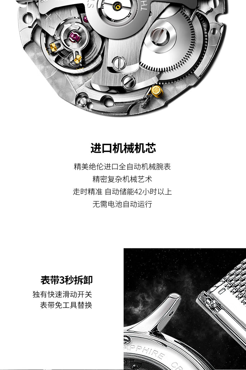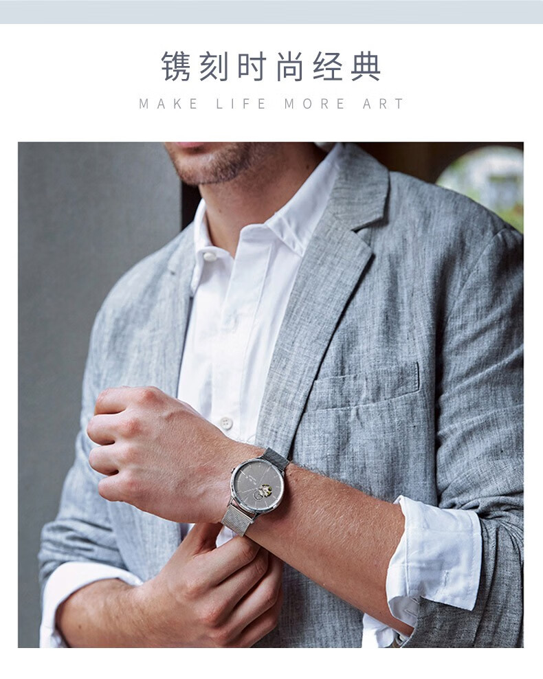 欧宝罗(OBLVLO)法国OBL全自动镂空机械表男十大品牌镂空手表运动复古男士 白壳白面黑带