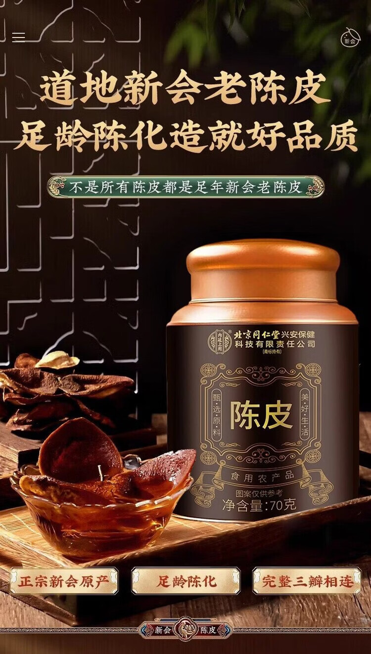 同仁堂(TRT)陈皮正宗新会老陈皮干可搭配消化理气痰多泡水泡茶煲汤养生食材 【正宗新会老陈皮】 60g*3罐 新老包装,随机发出【皆为正品】