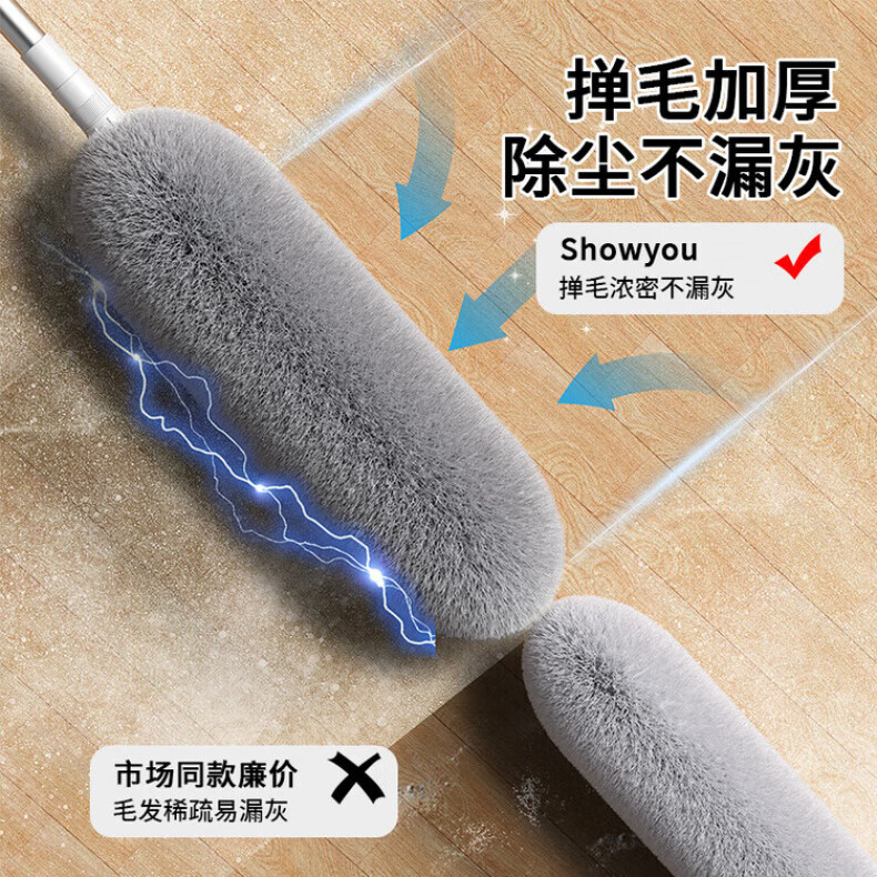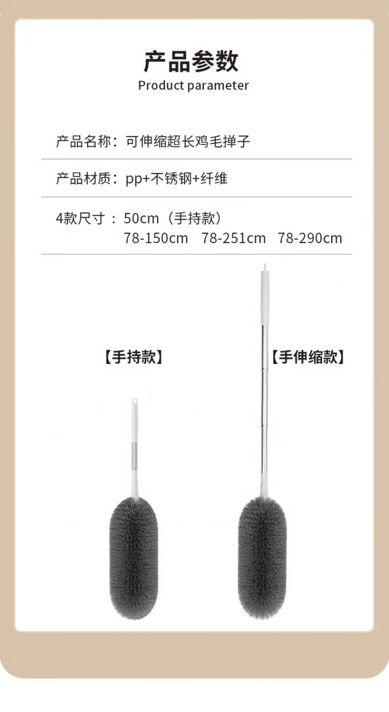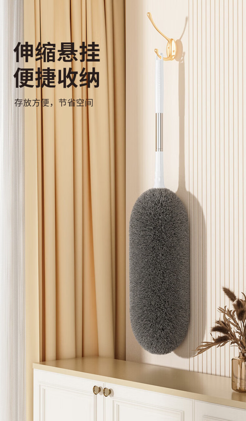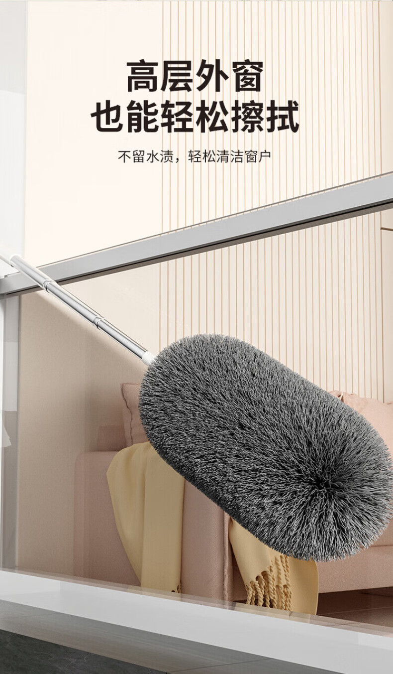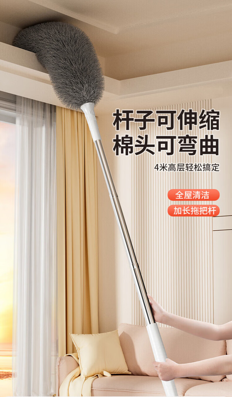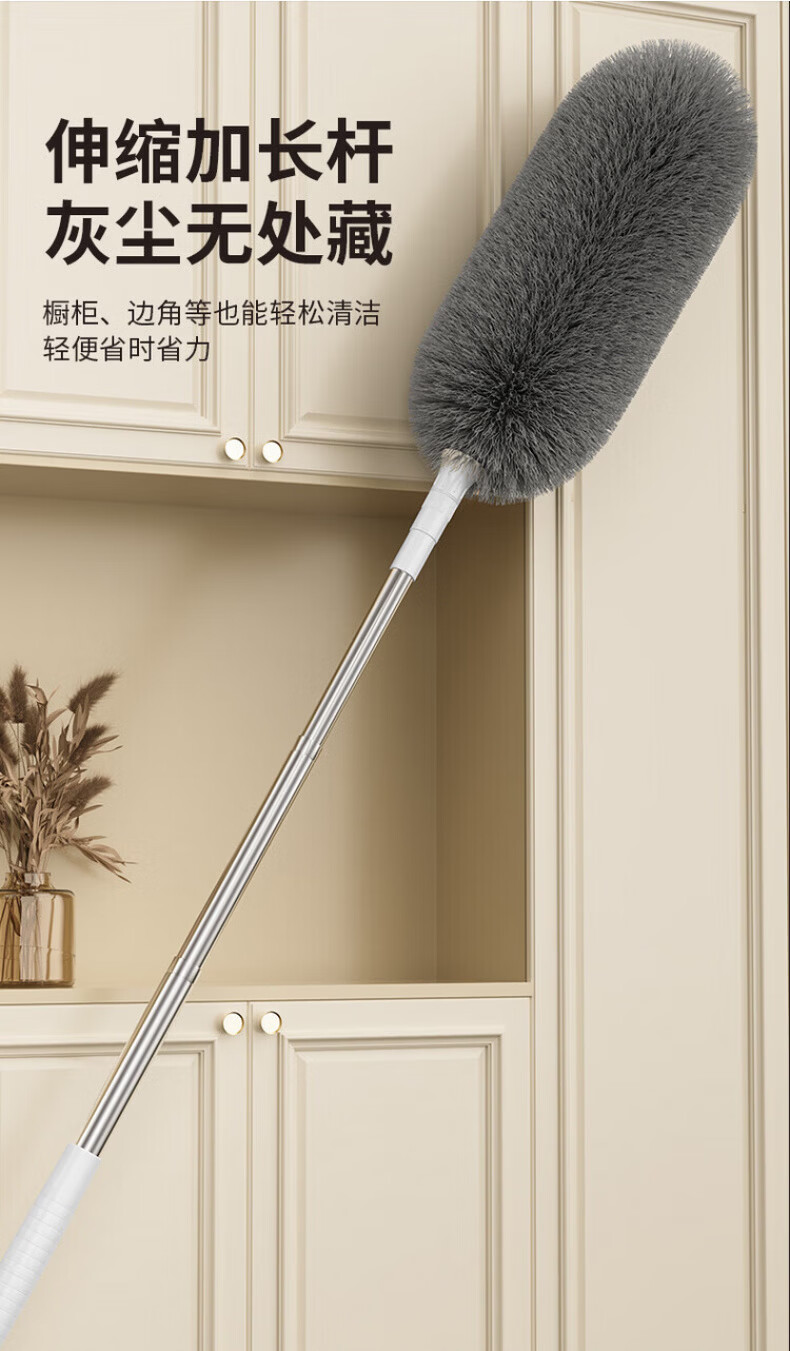 洽苒德国鸡毛掸子除尘扫灰家用可伸缩不掉毛除尘掸扫蜘蛛网打扫天花板 高硬度防滑杆 【2.9米可伸缩】+锁尘加厚掸 1个