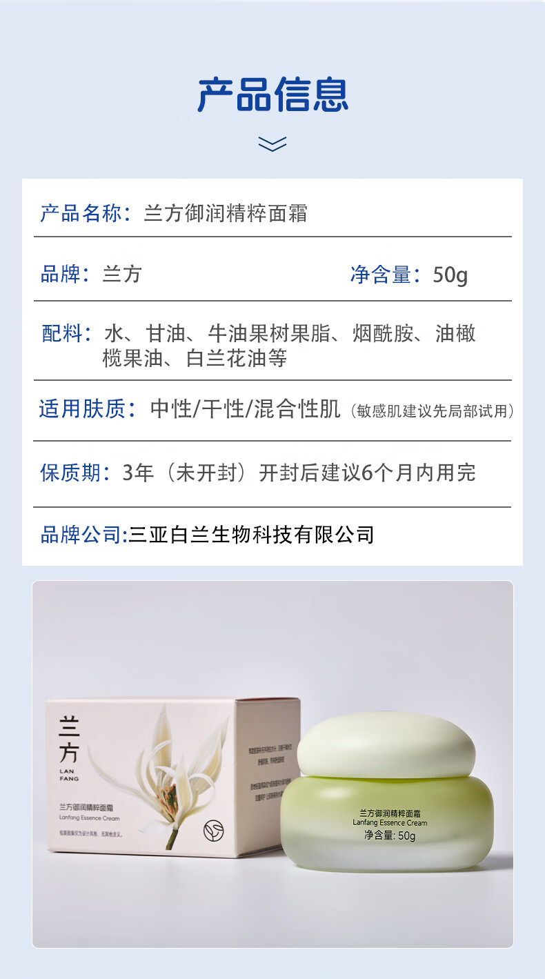 兰方御润精粹面霜保湿补水紧致修复高保湿护肤品天然植萃维E烟酰胺