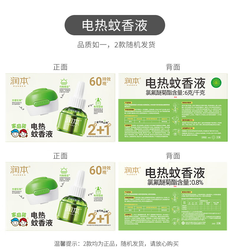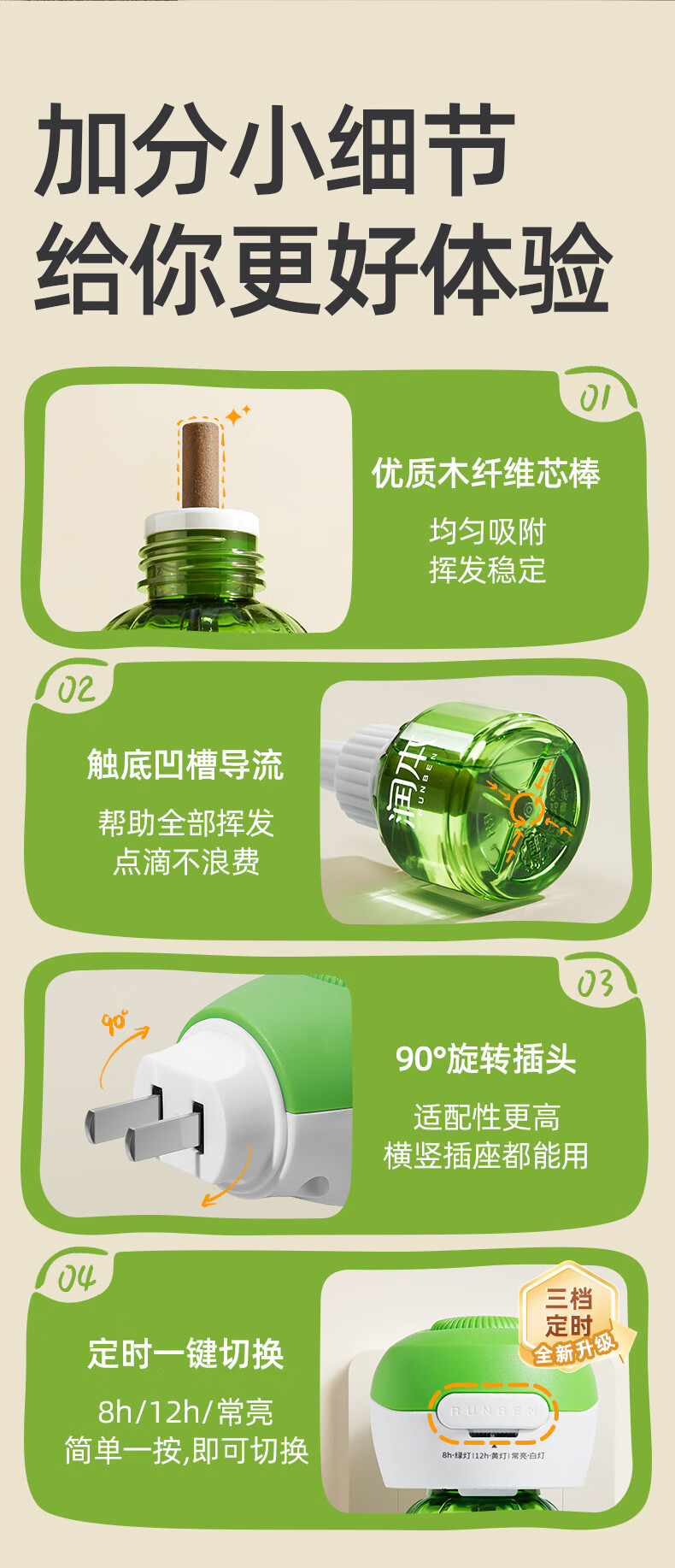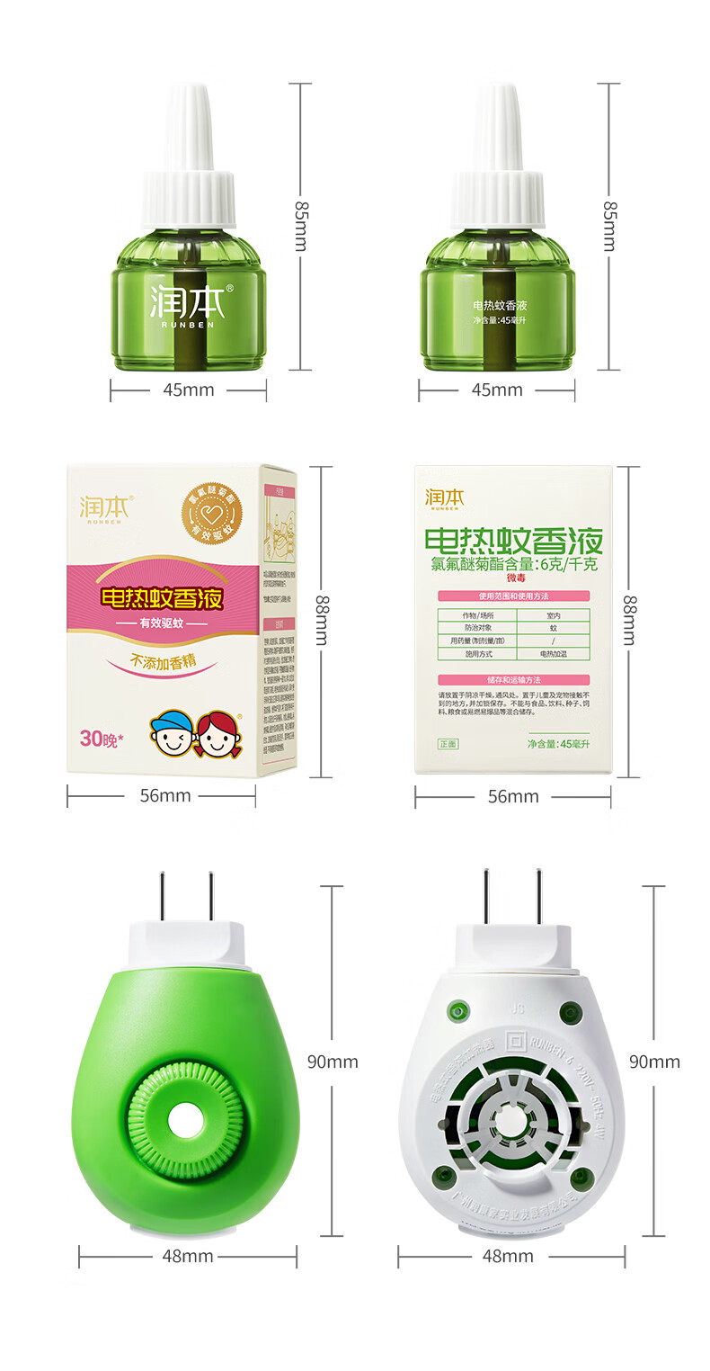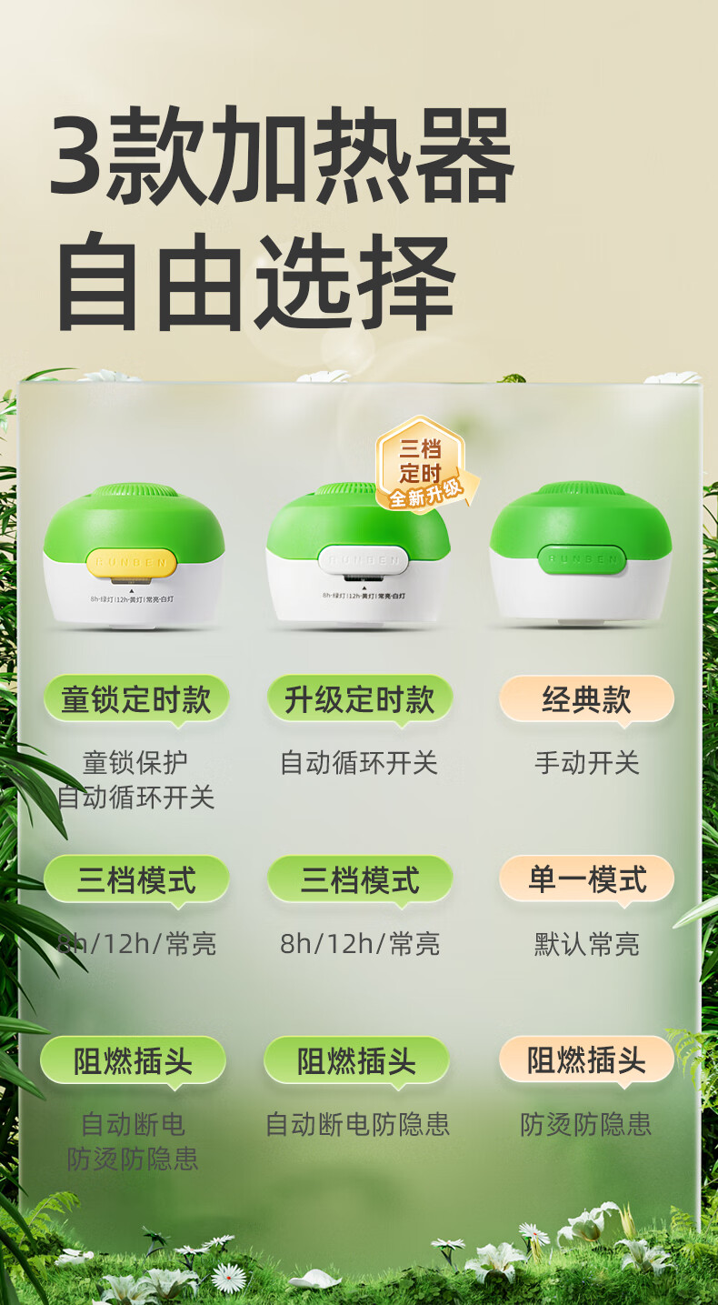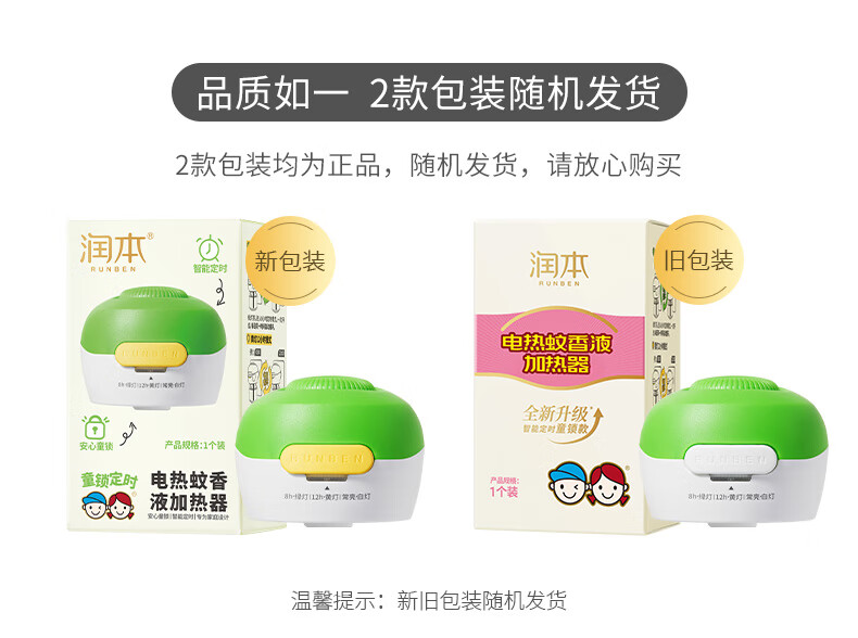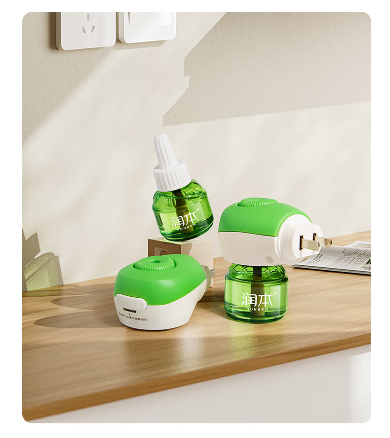 润本定时电蚊香液驱蚊液无香型加热器驱蚊水补充装经典绿瓶 【经典非定时】无味4液+1器