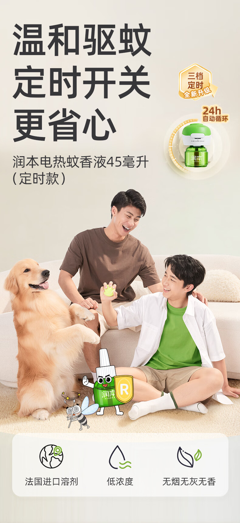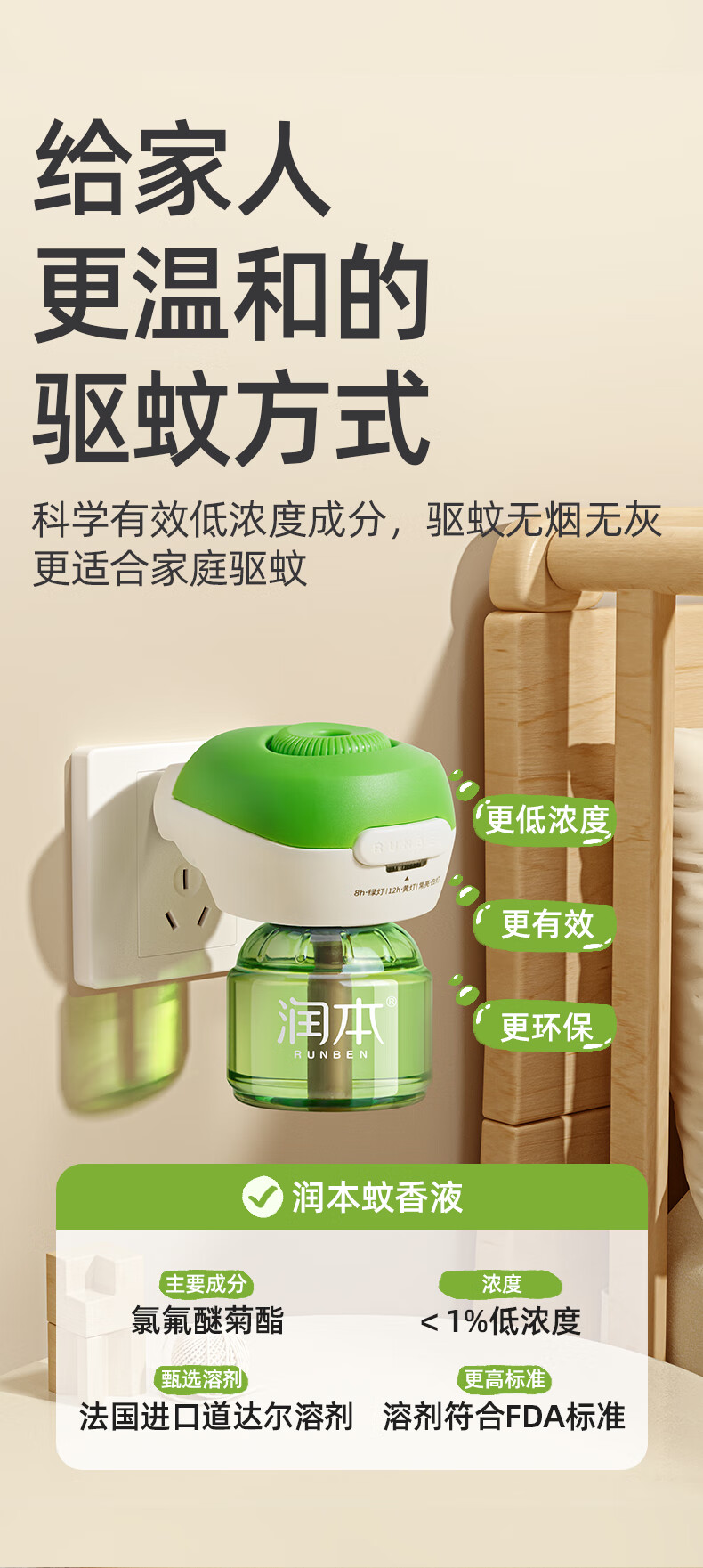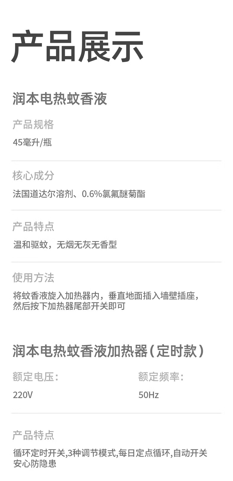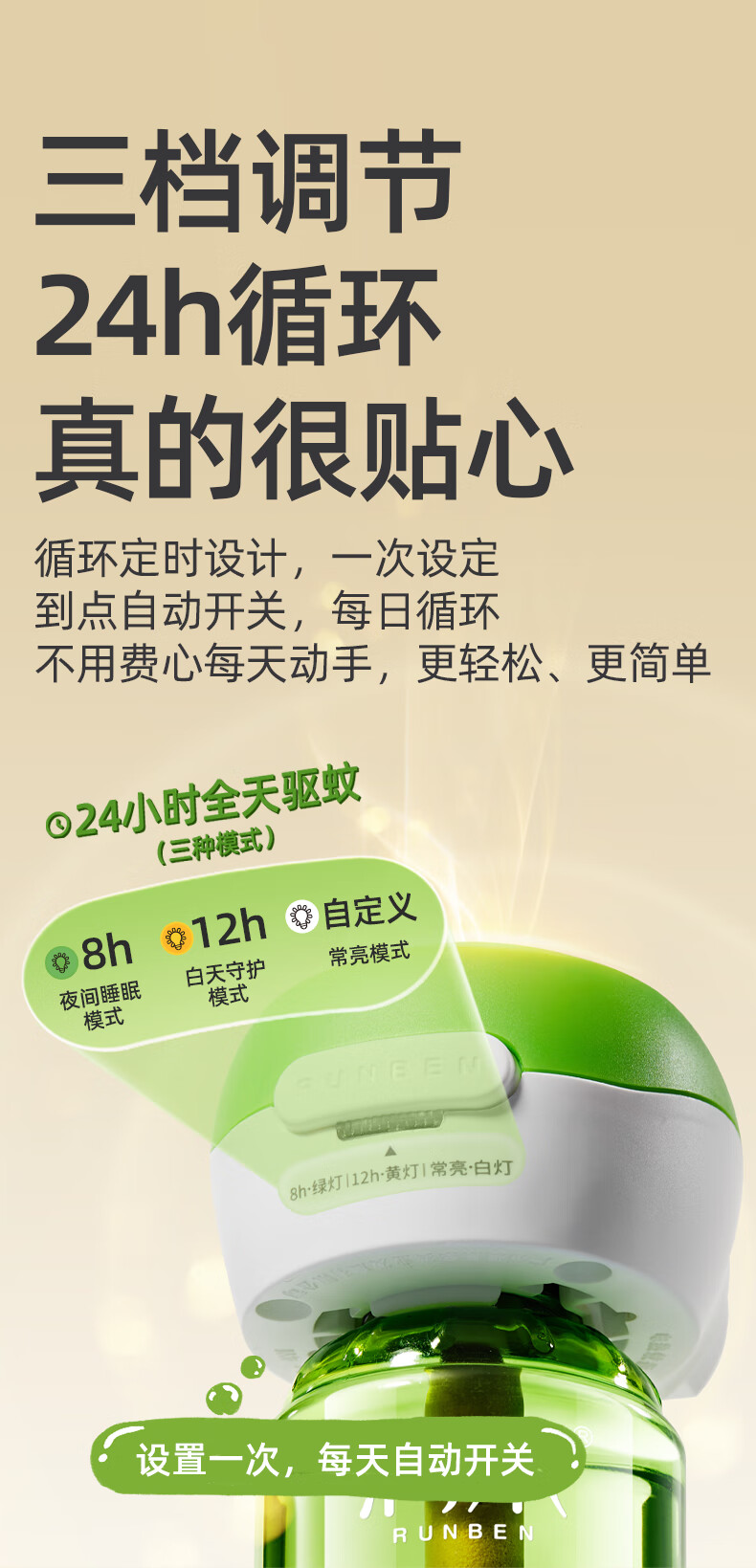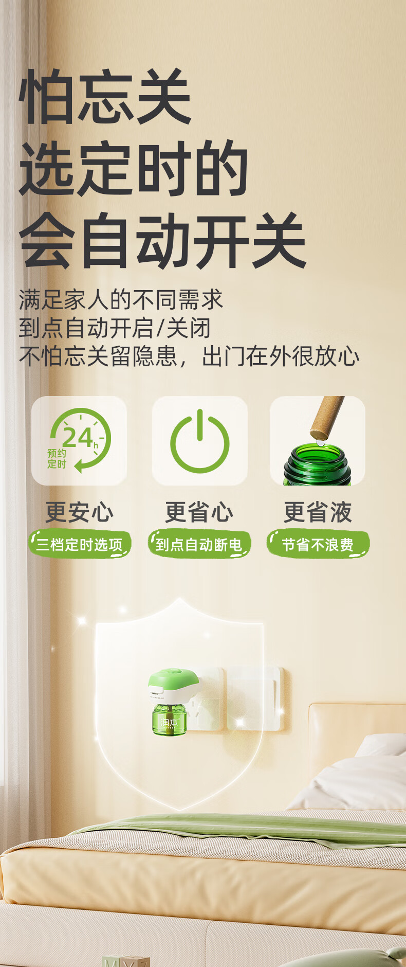 润本定时电蚊香液驱蚊液无香型加热器驱蚊水补充装经典绿瓶 【经典非定时】无味4液+1器