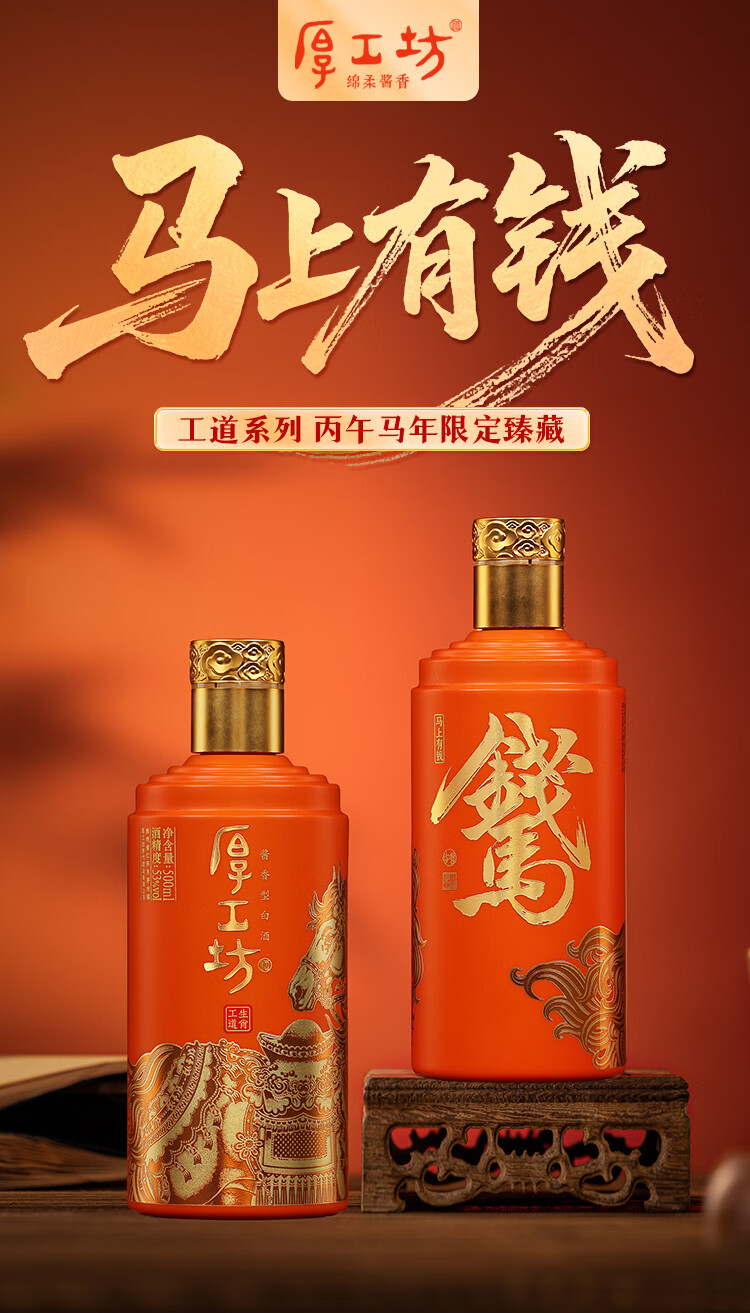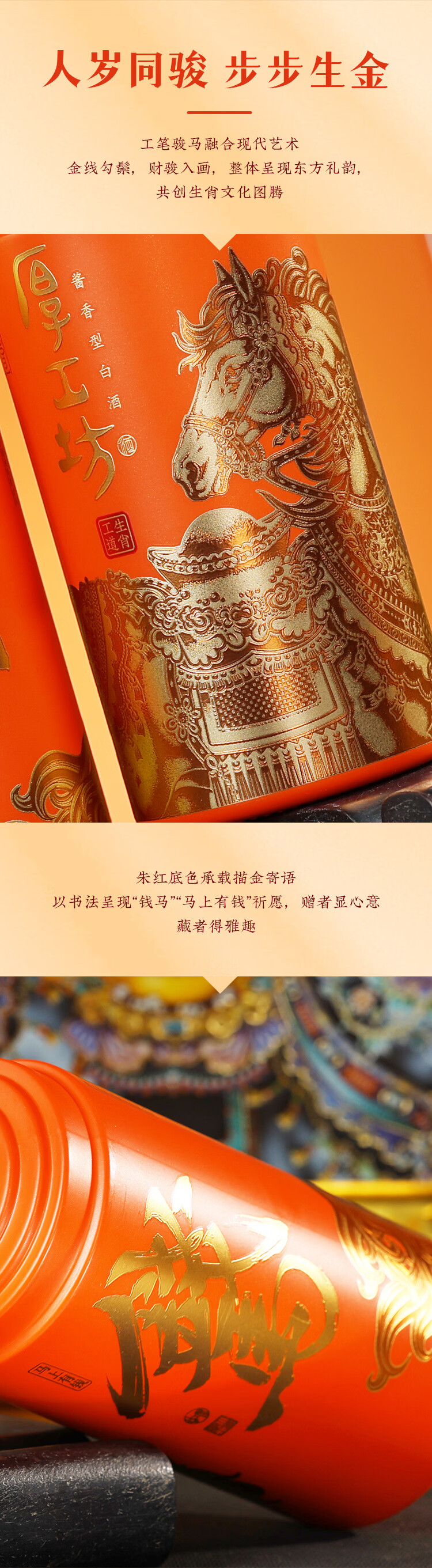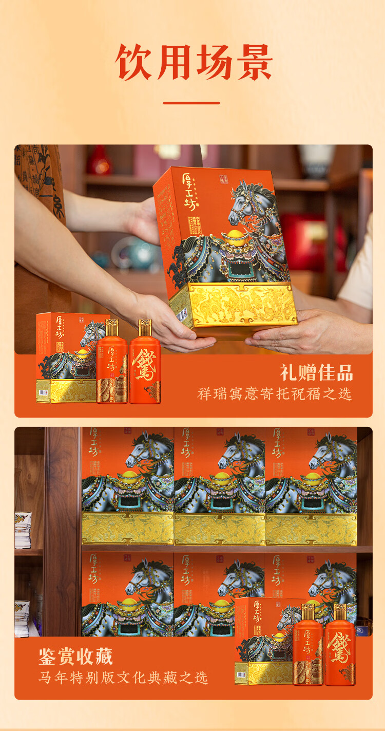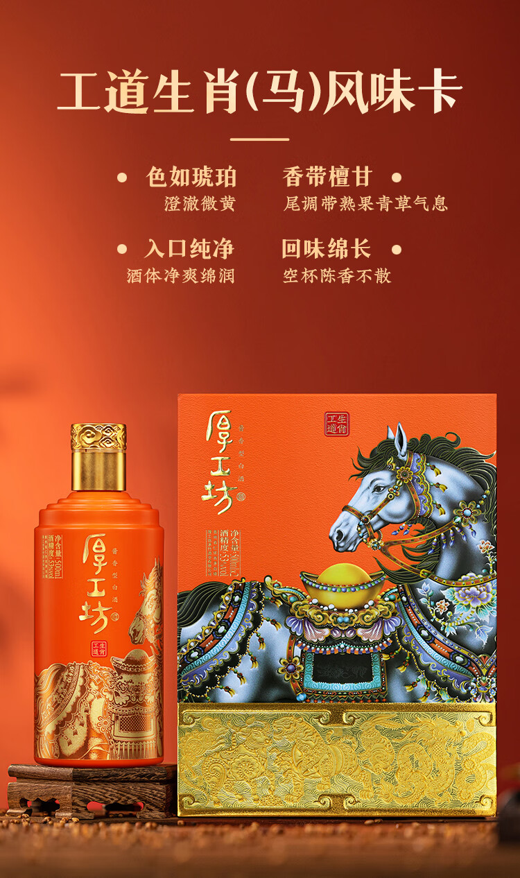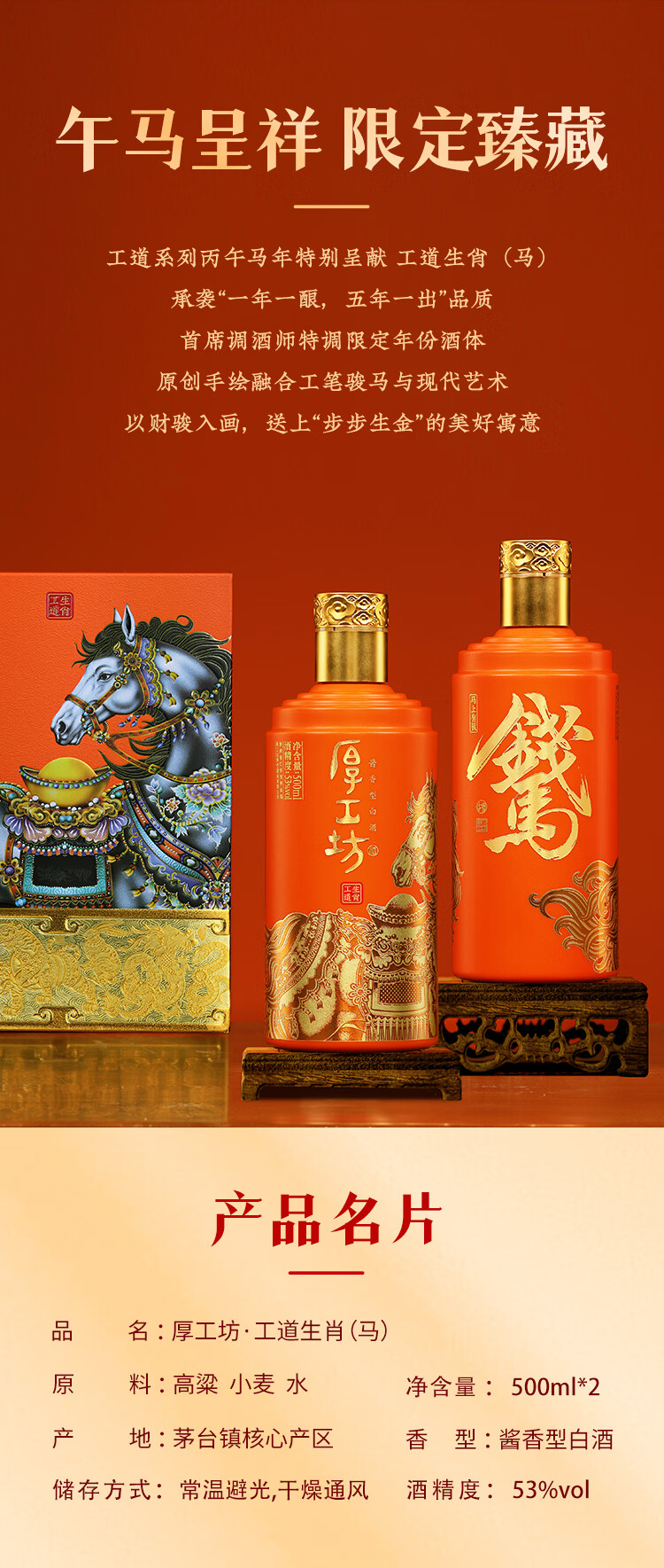 厚工坊【马年生肖】工道生肖礼盒 53度酱香型白酒 大曲坤沙纯粮酿造 53度 500mL 2瓶 (工道生肖马年)
