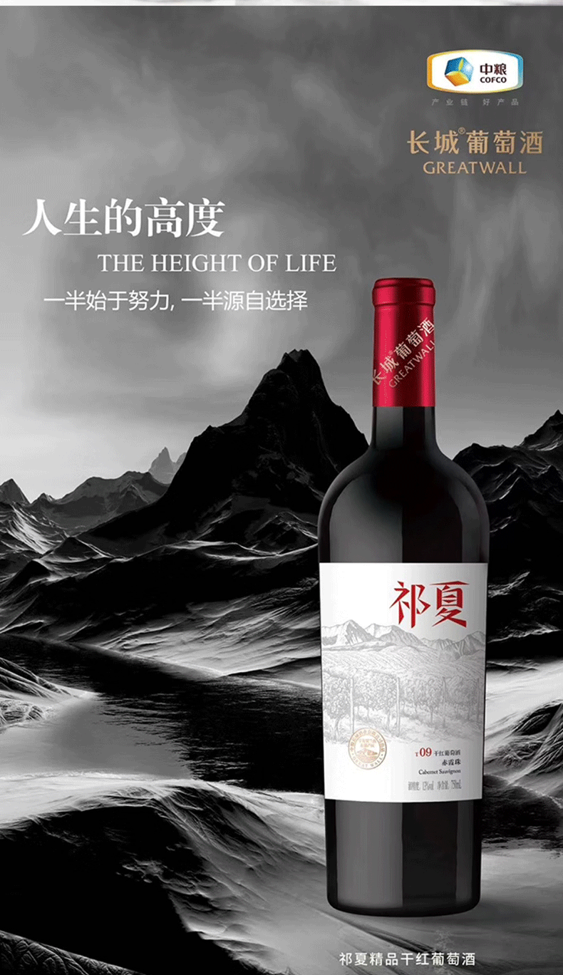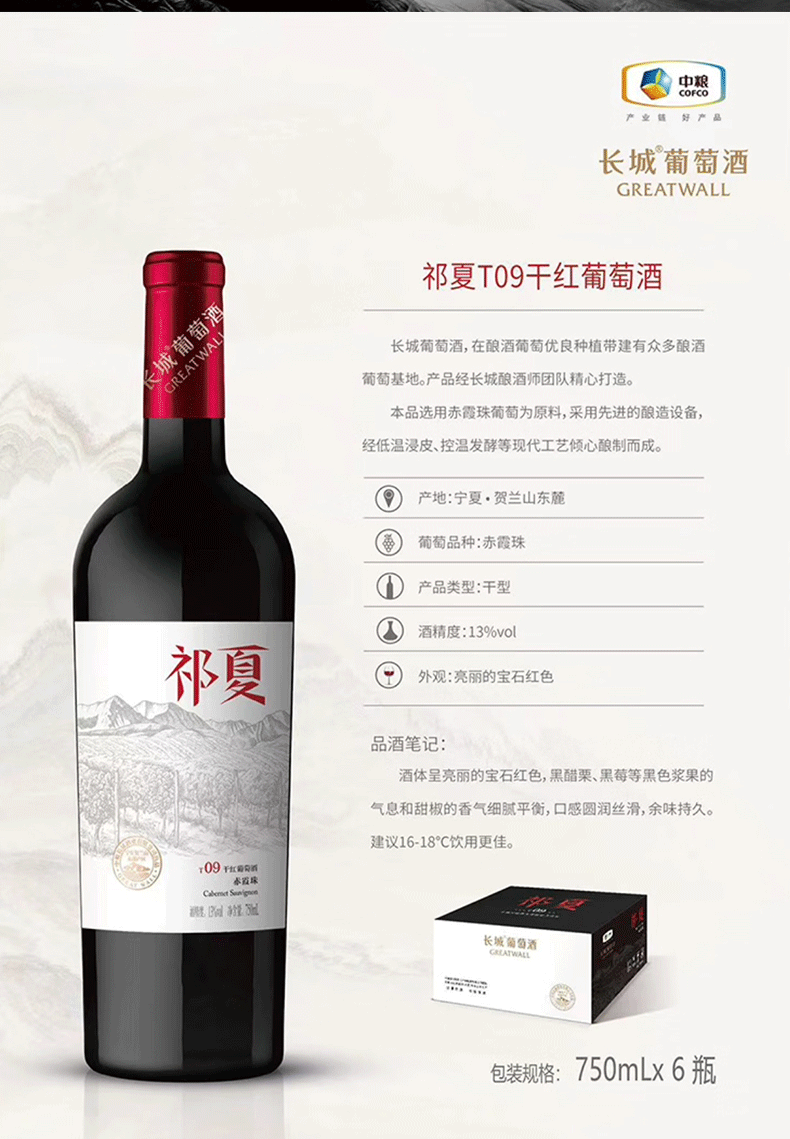 祁夏T09干红葡萄酒 750ml 商务宴请自饮微醺约会节日送礼 13度750ml*6