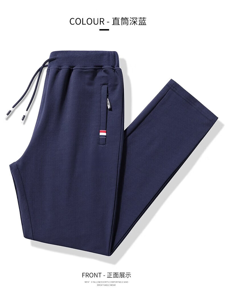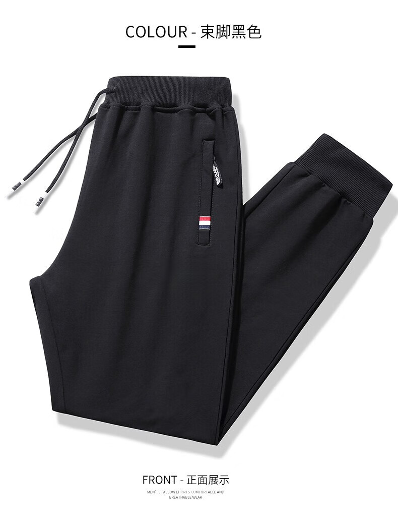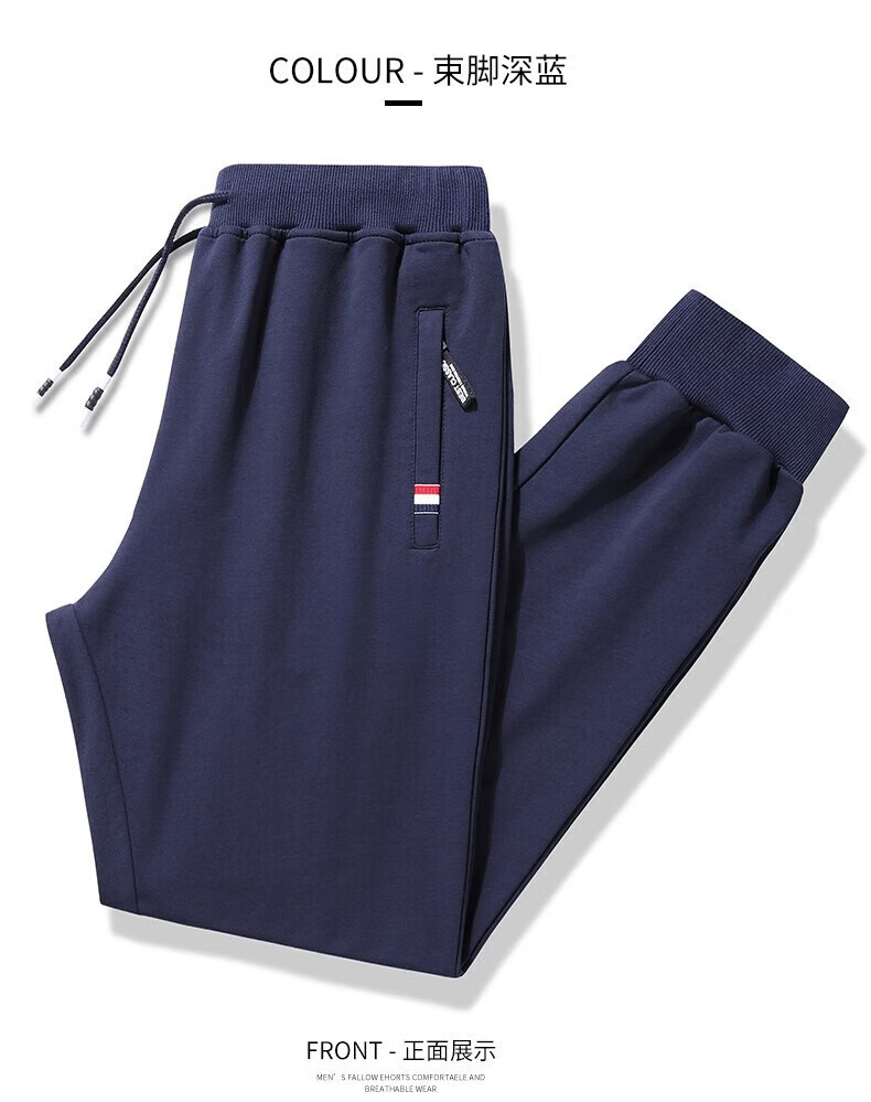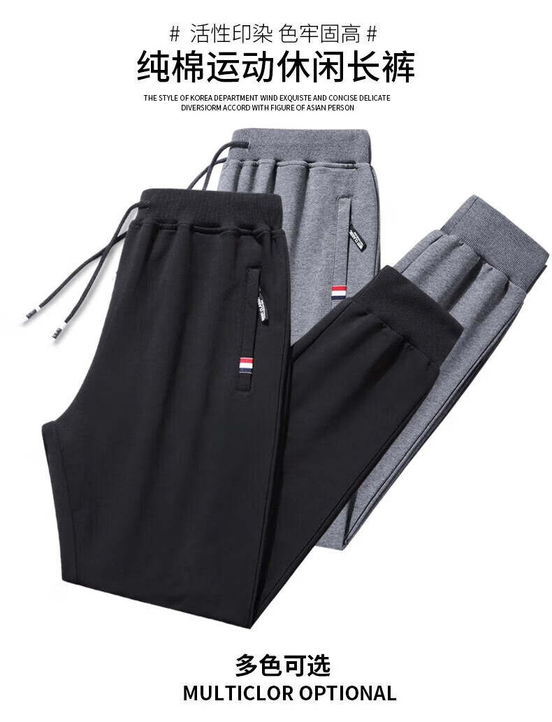风尚锦绣 春秋休闲裤男纯棉运动跑步裤晨练宽松休闲束脚裤加大码长裤 黑色+深蓝(束脚-春秋款) XL -建议115斤-130斤