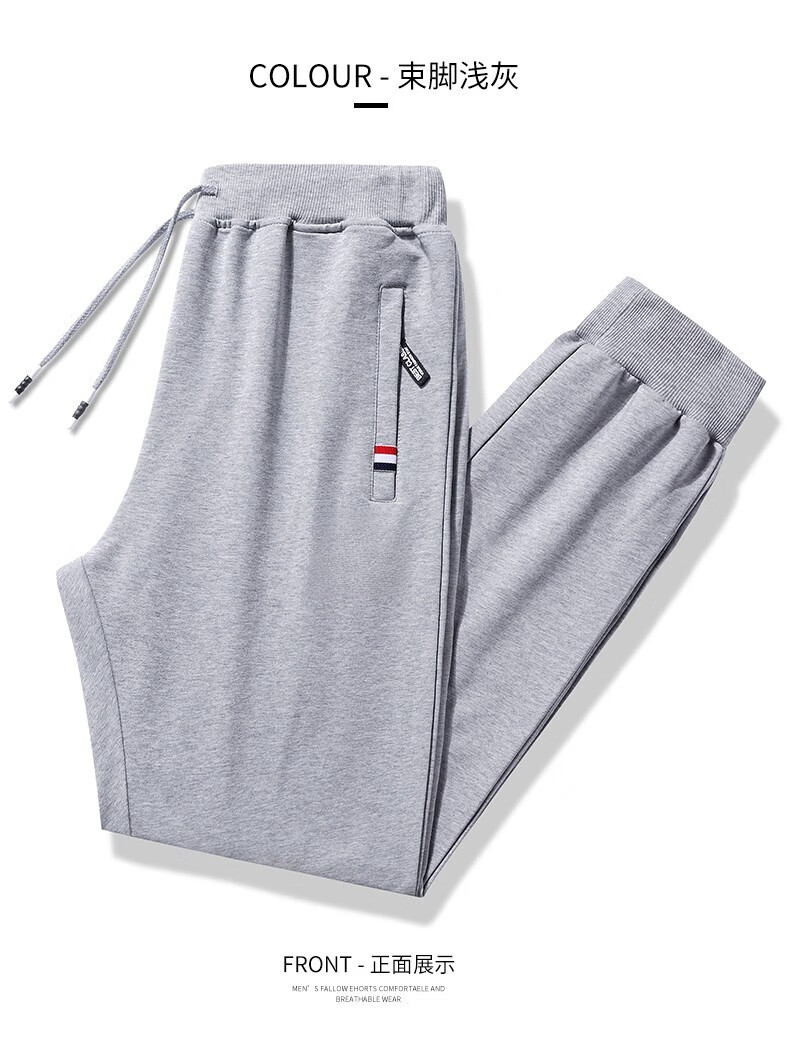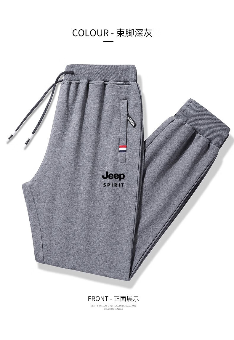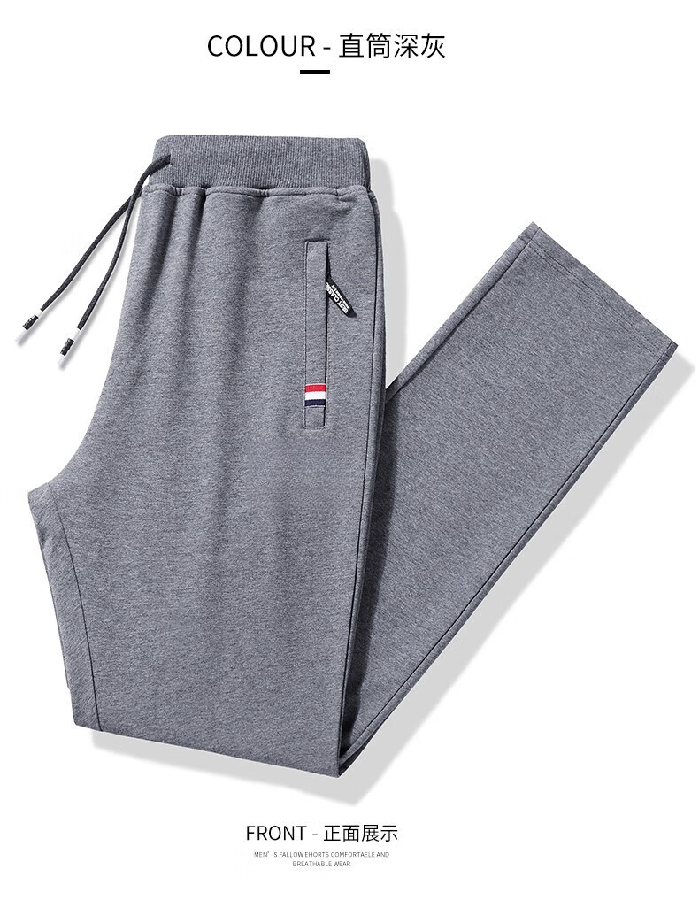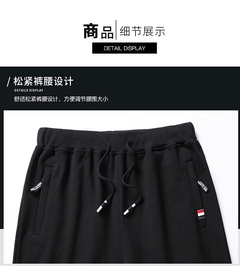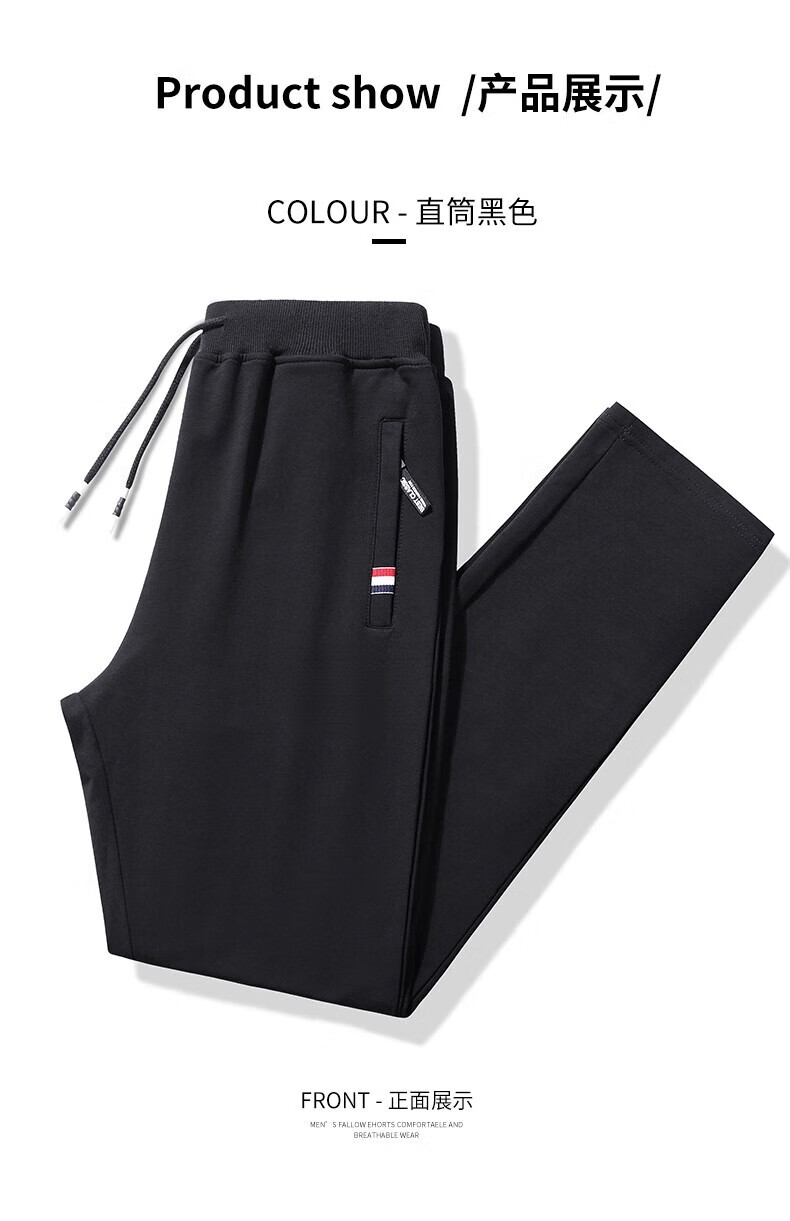风尚锦绣 春秋休闲裤男纯棉运动跑步裤晨练宽松休闲束脚裤加大码长裤 黑色+深蓝(束脚-春秋款) XL -建议115斤-130斤
