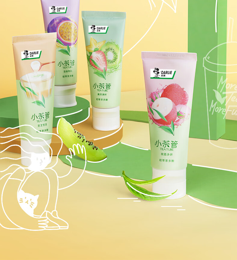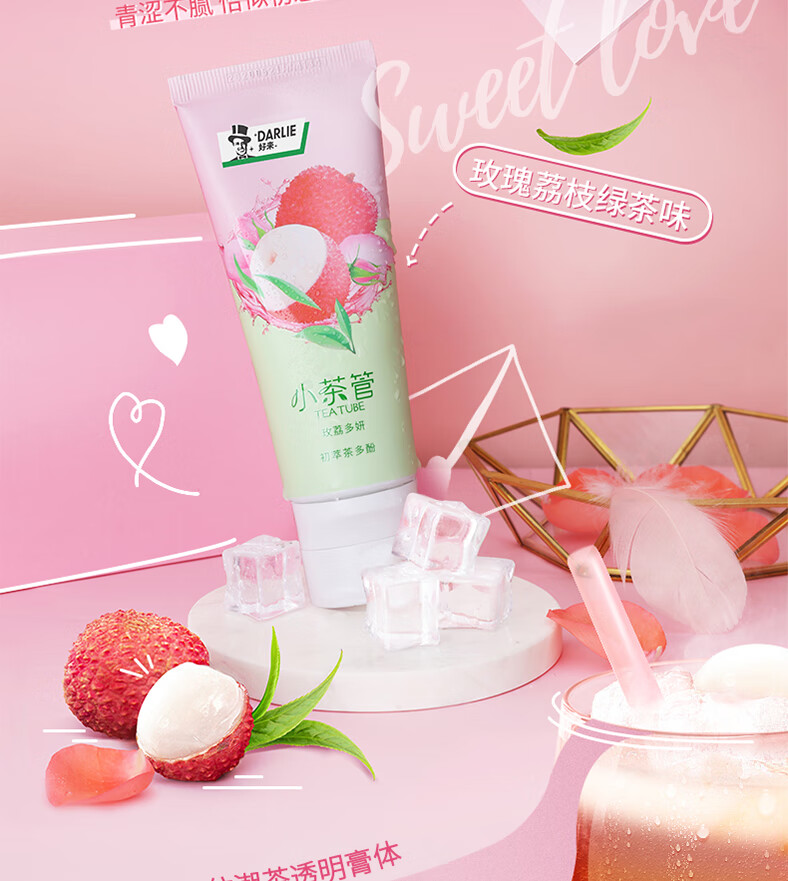 好来(DARLIE)原黑人牙膏小茶管荔枝薄荷清新口气口腔口臭水果味含氟成人 玫荔多妍80g
