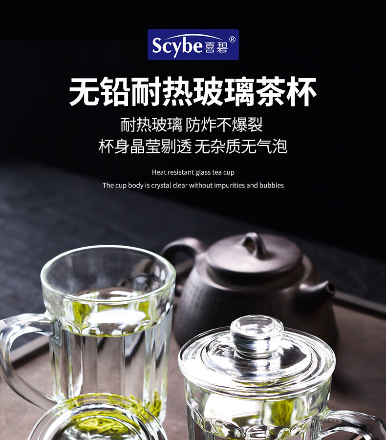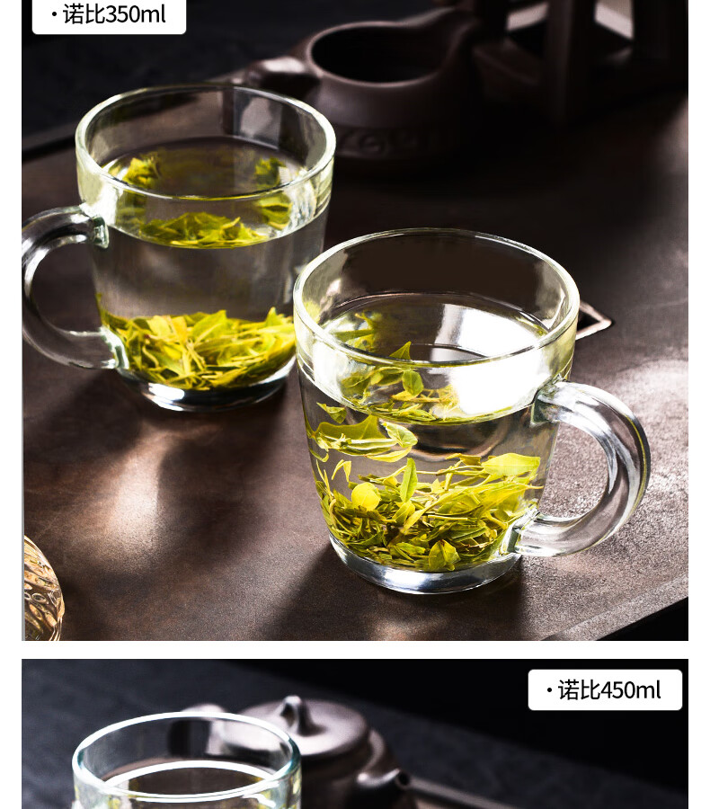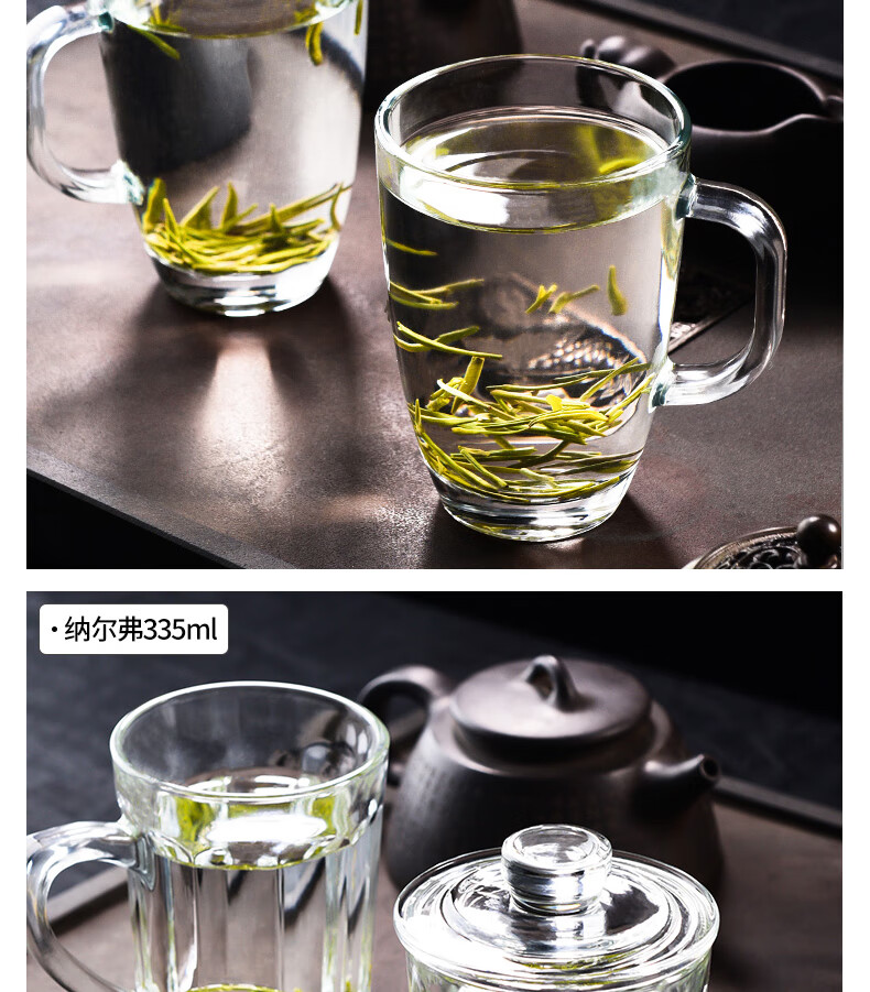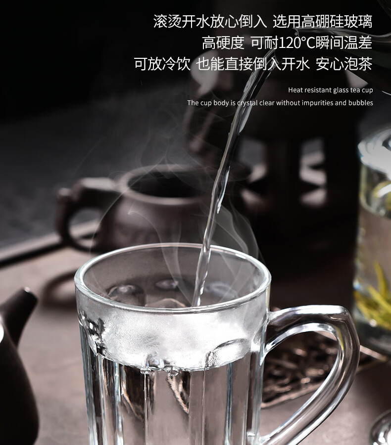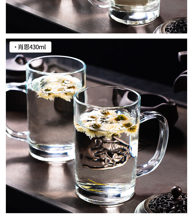 喜碧喜碧可耐超高瞬时温差带盖把杯茶杯可进蒸箱牛奶杯透明玻璃杯 肖恩热饮杯430ML/2只