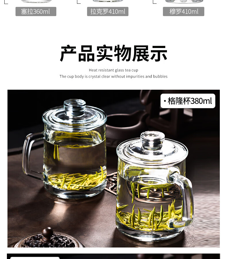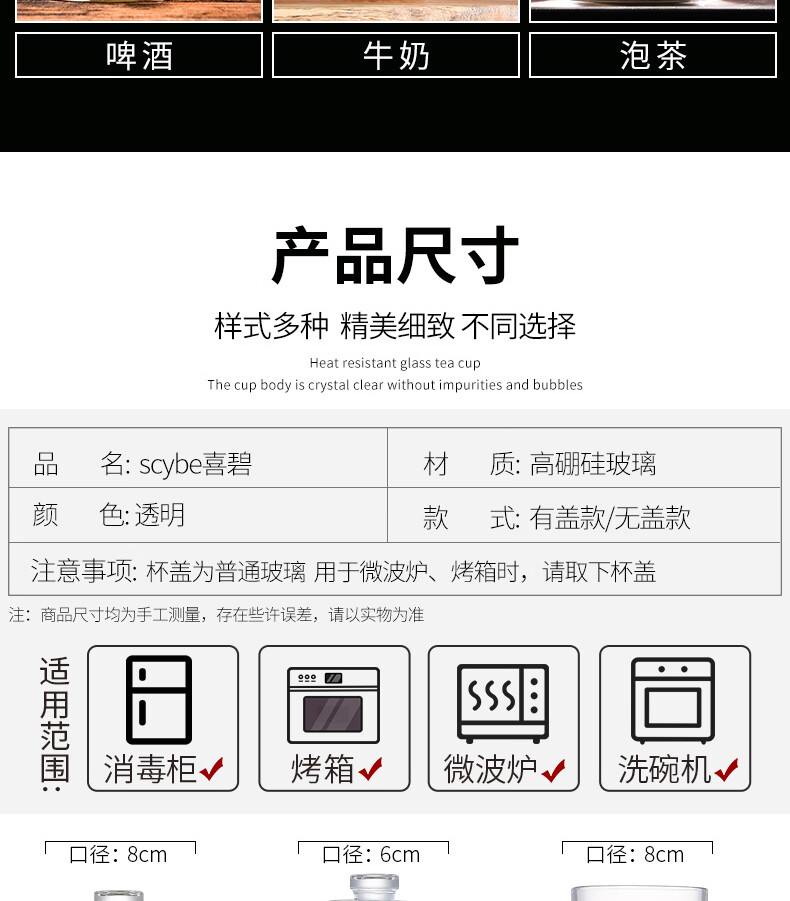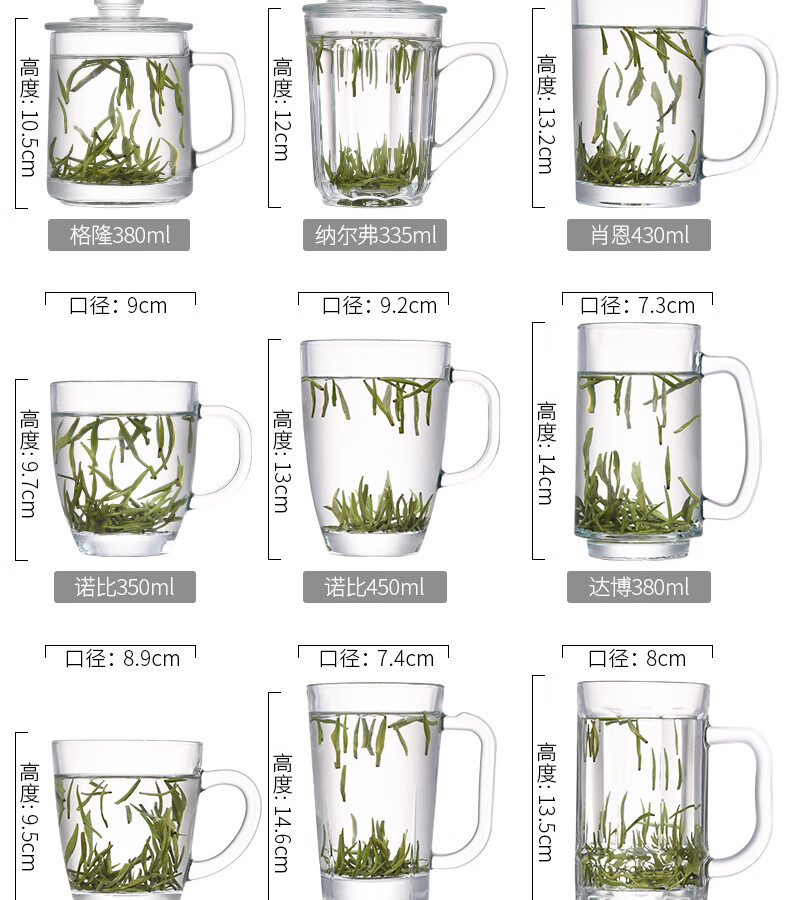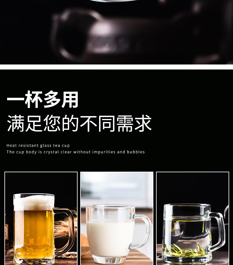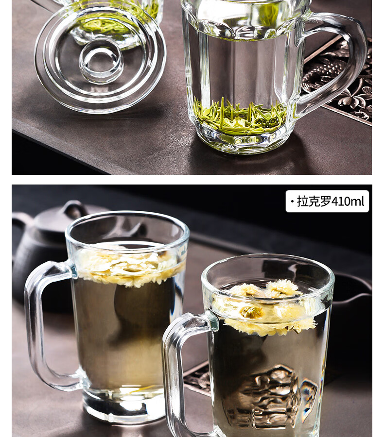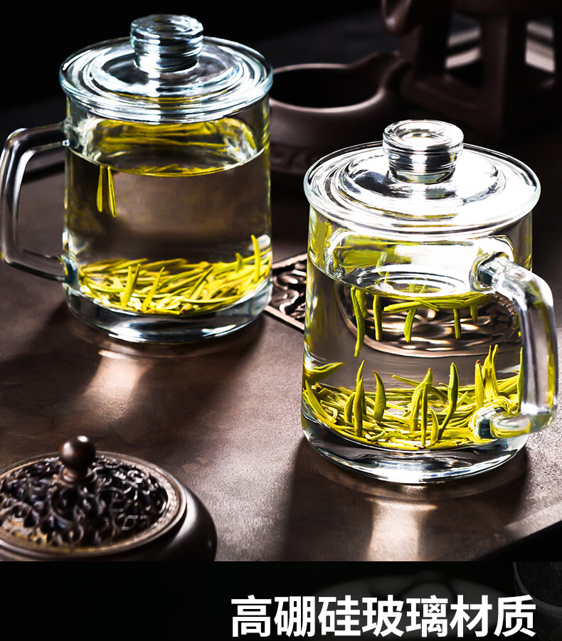 喜碧喜碧可耐超高瞬时温差带盖把杯茶杯可进蒸箱牛奶杯透明玻璃杯 肖恩热饮杯430ML/2只