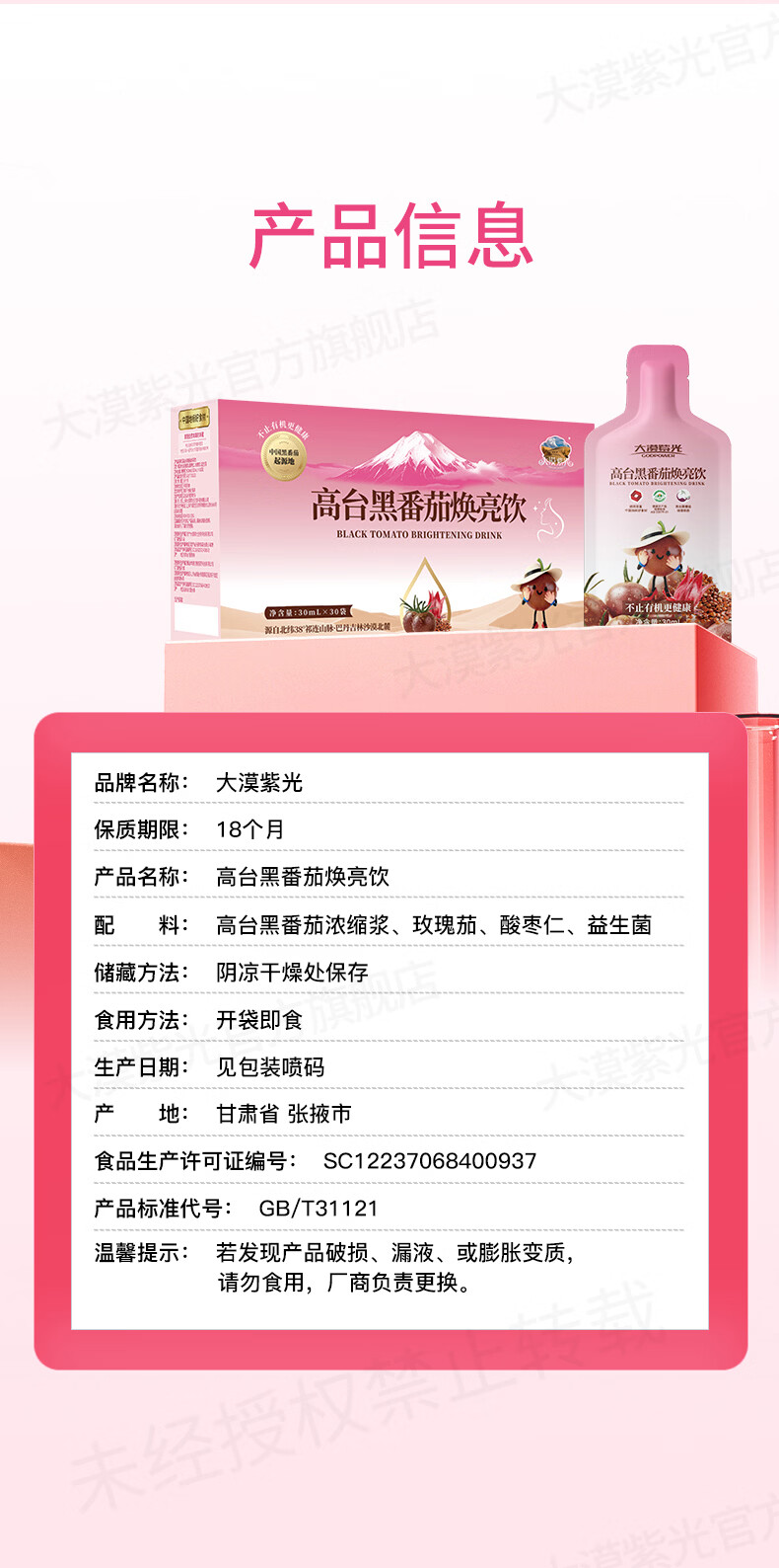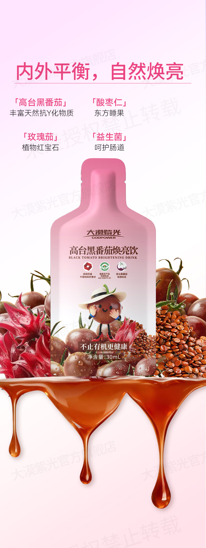 大漠紫光【新品】黑番茄焕亮饮女士饮酸枣仁玫瑰茄益生菌素颜原浆 【新客尝鲜 为女士专研】焕亮饮5袋-共150ml