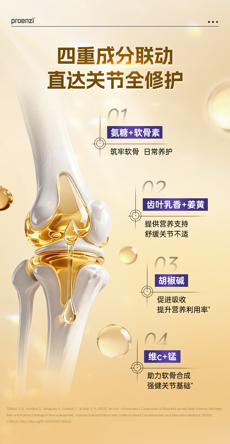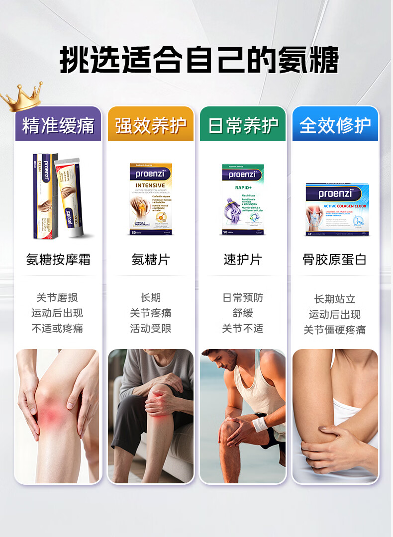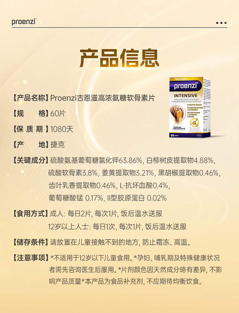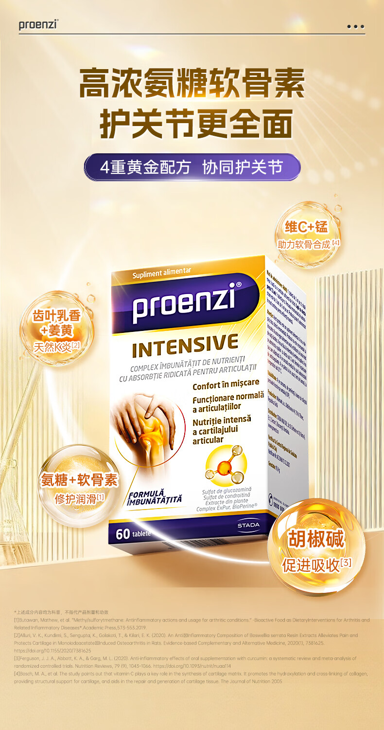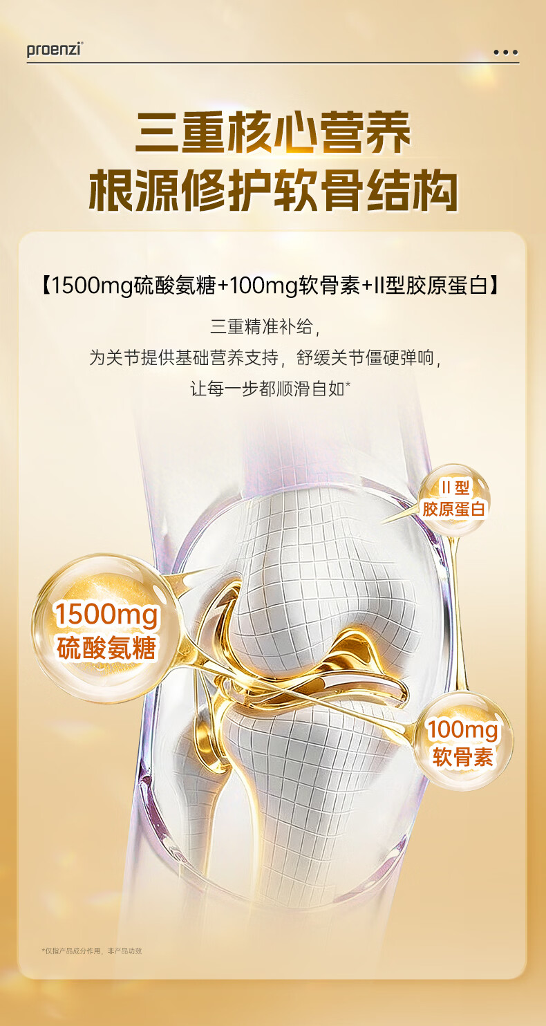Proenzi古恩滋(史达德)高浓氨糖软骨素硫酸葡萄糖1500mg 关节养护钙片 【缓痛+润滑】高浓氨糖60片+关节速护 90片*1瓶