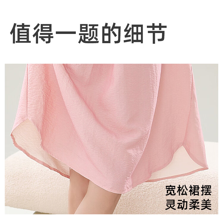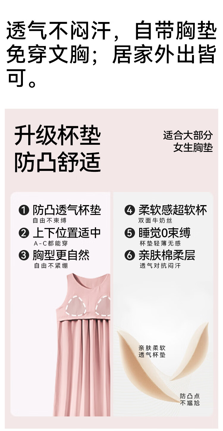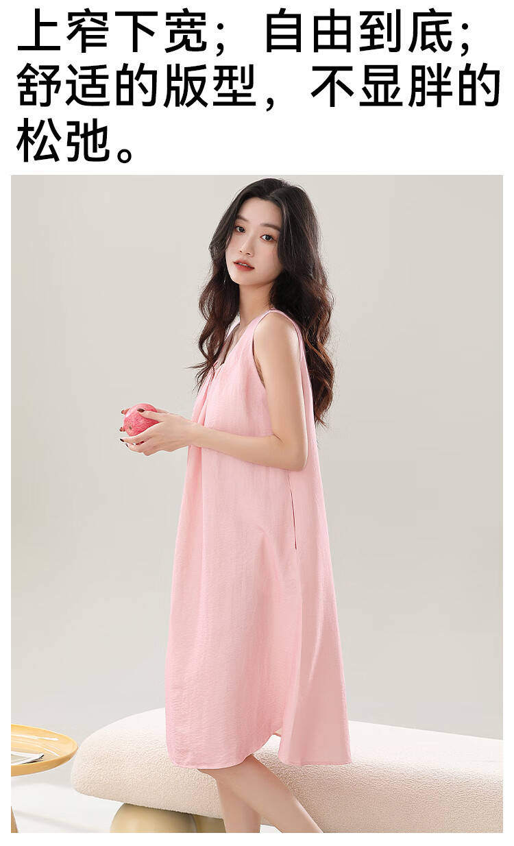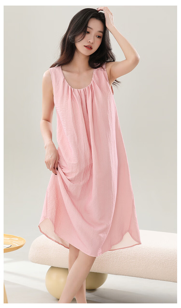 猫人春夏季无袖睡裙女免穿文胸自带胸垫休闲简约宽松可外穿家居服女 奶油粉 M