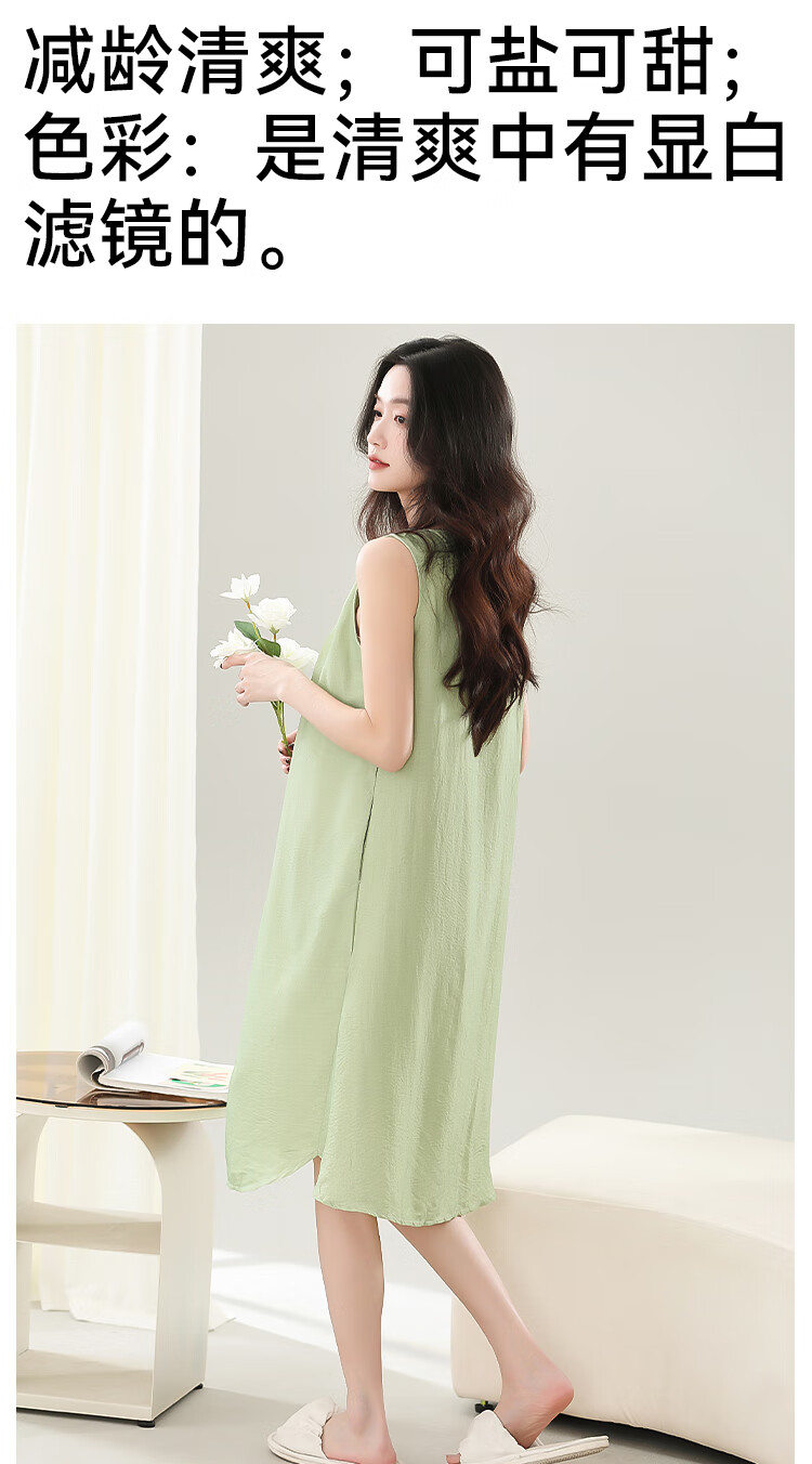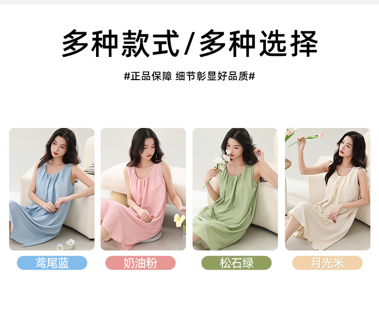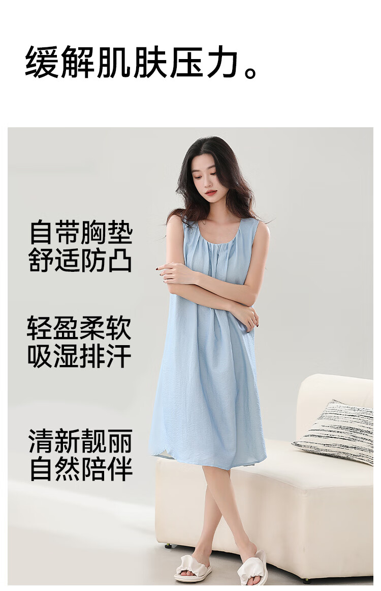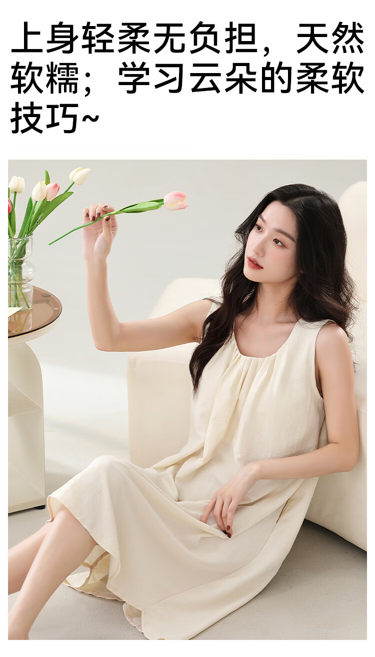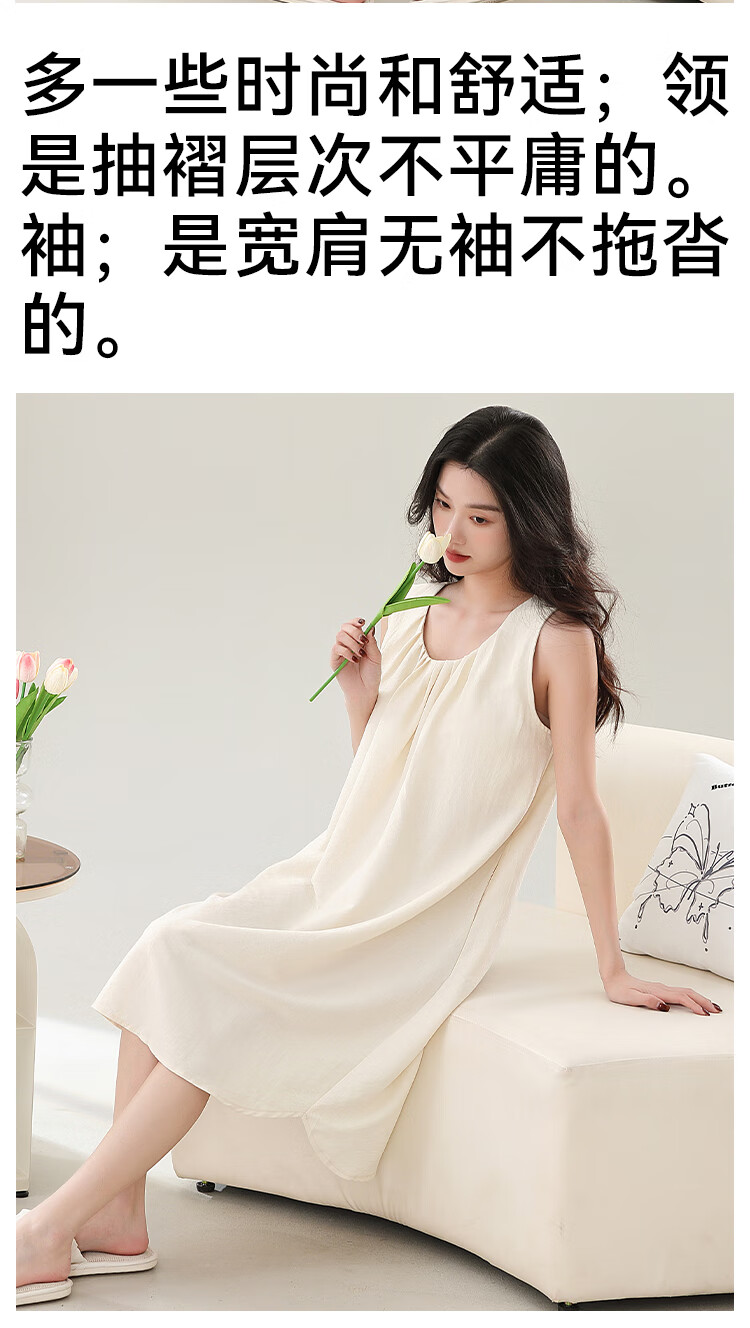 猫人春夏季无袖睡裙女免穿文胸自带胸垫休闲简约宽松可外穿家居服女 奶油粉 M