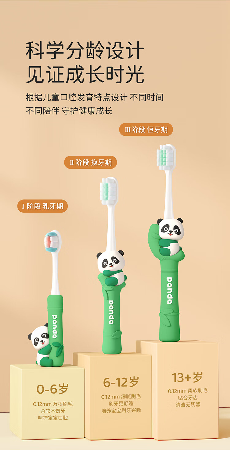 英格翰儿童牙刷柔软细密刷毛1-3岁-6岁-12岁13+婴幼儿宝宝乳牙刷青少年 【3-6岁组合】3件套