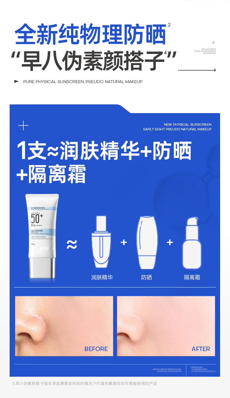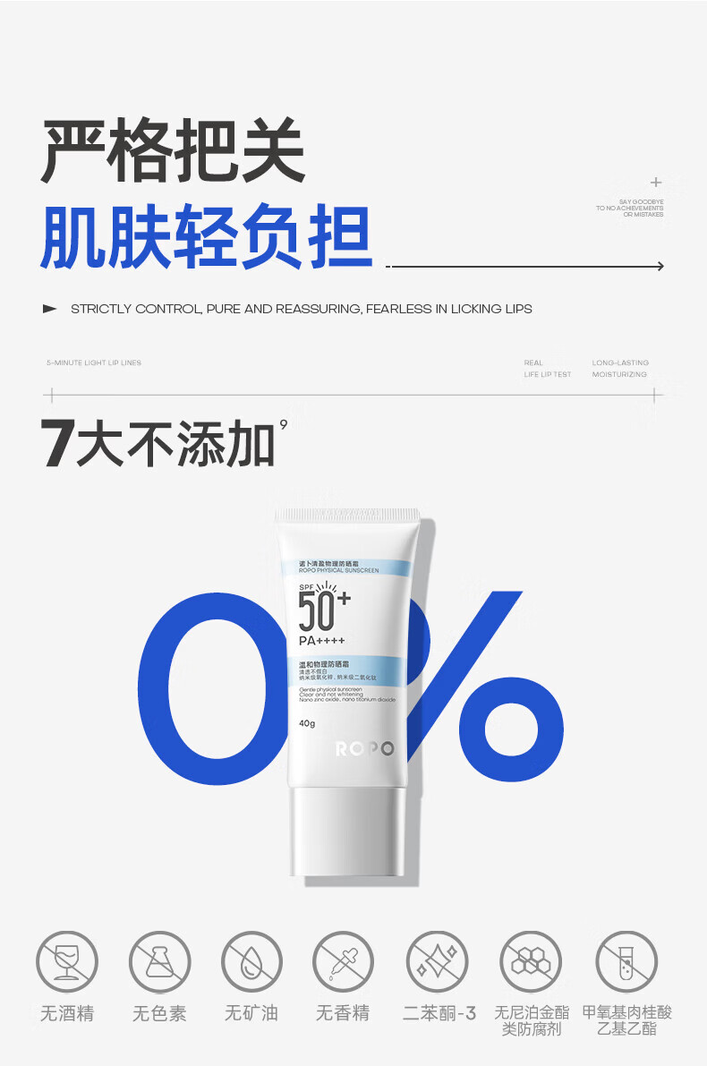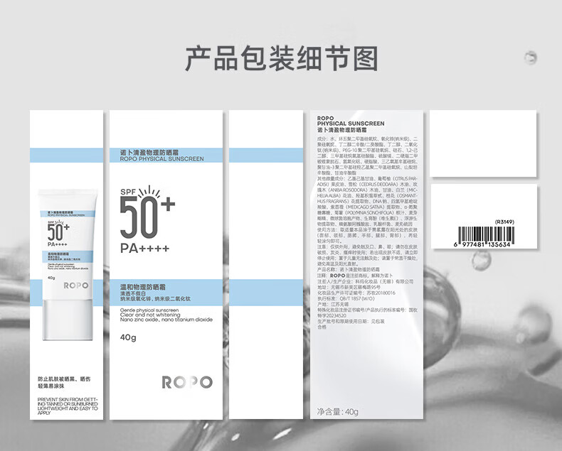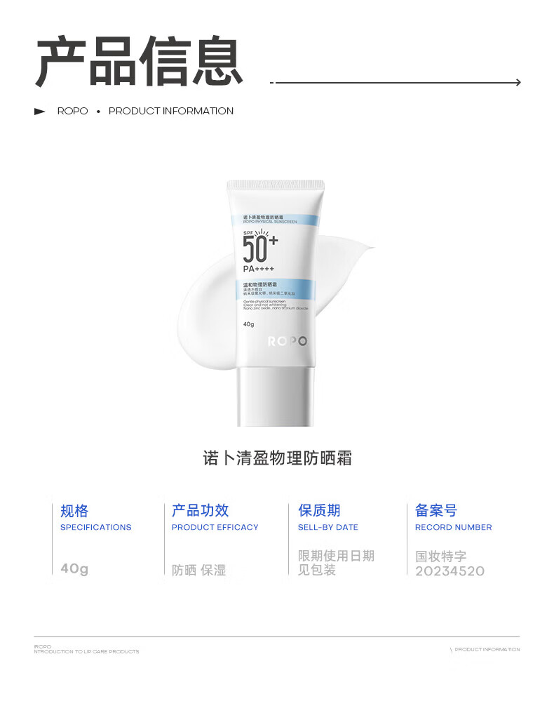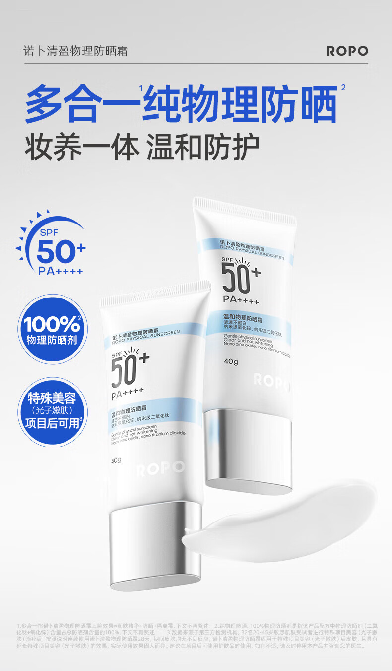 ROPO诺卜纯物理防晒霜面部防晒乳水润感隔离紫外线SPF50+男女学生通用 【超值囤货】防晒霜40g*2