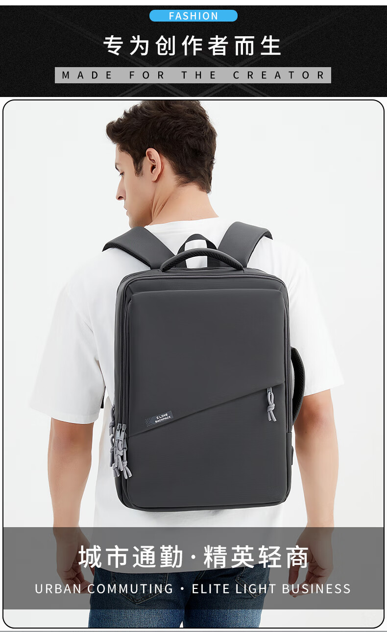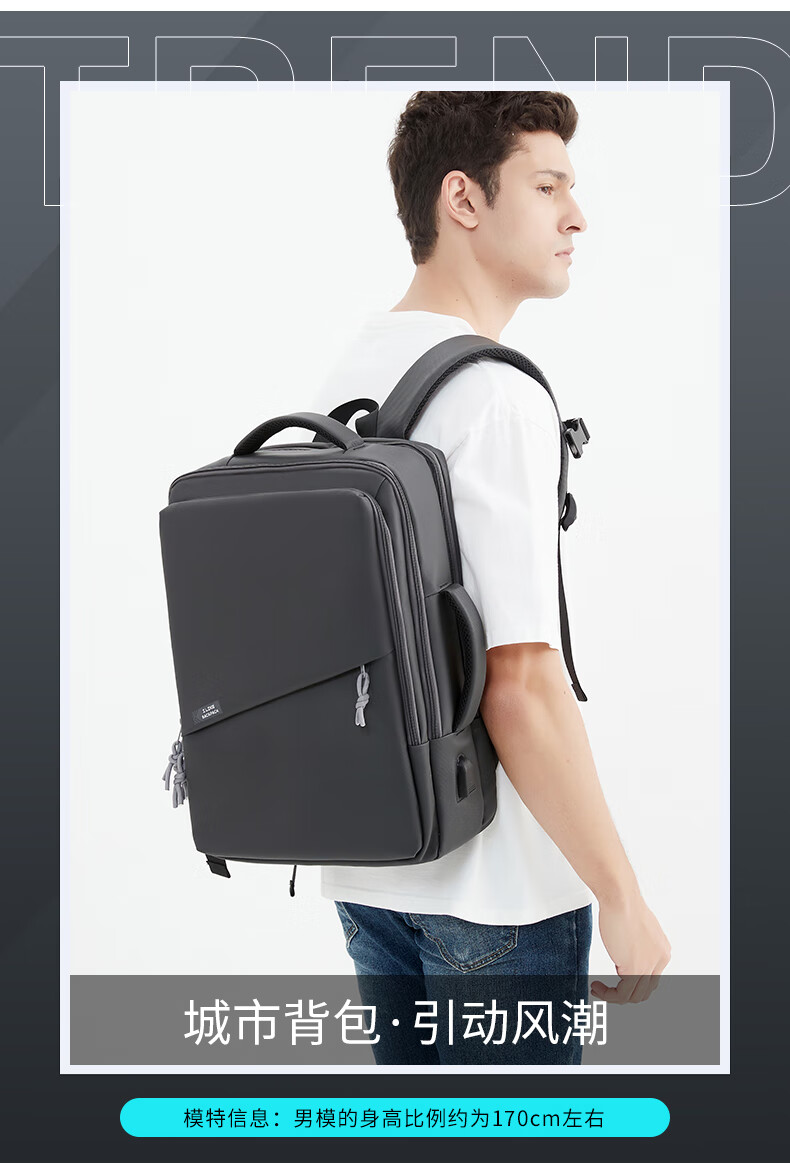 马克华菲(MARK FAIRWHALE)【春尚新】26商务双肩包男潮流ins书包休闲通勤电脑背包上班出差 铅咖【盒装/顺丰快递】