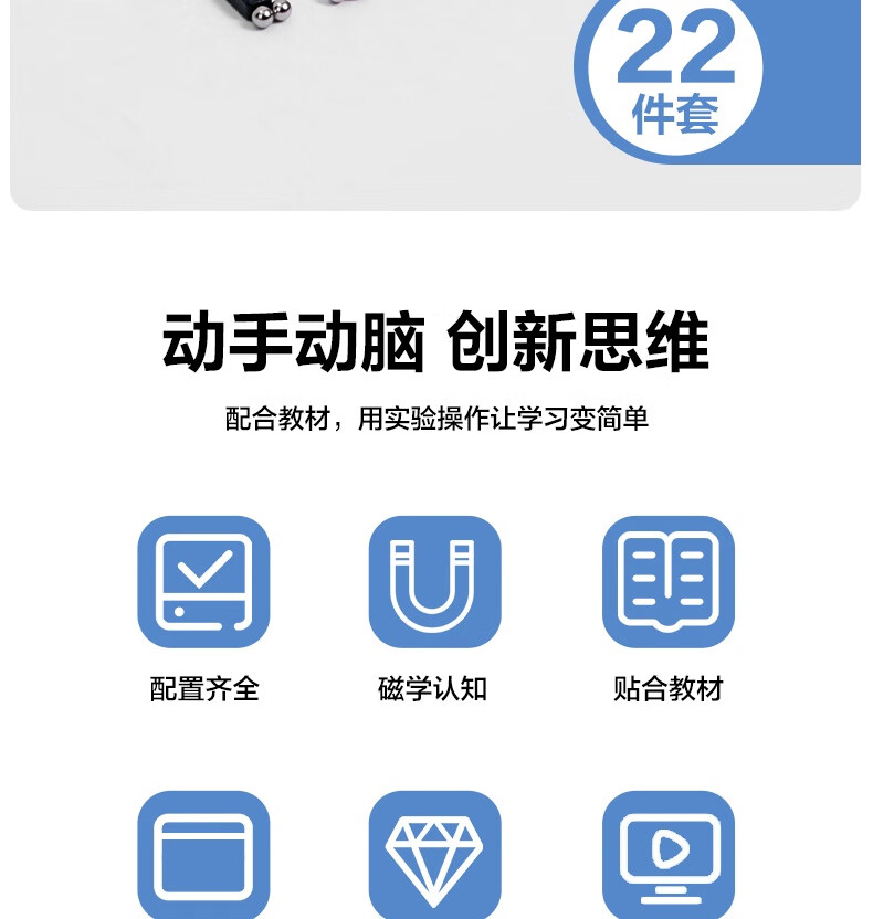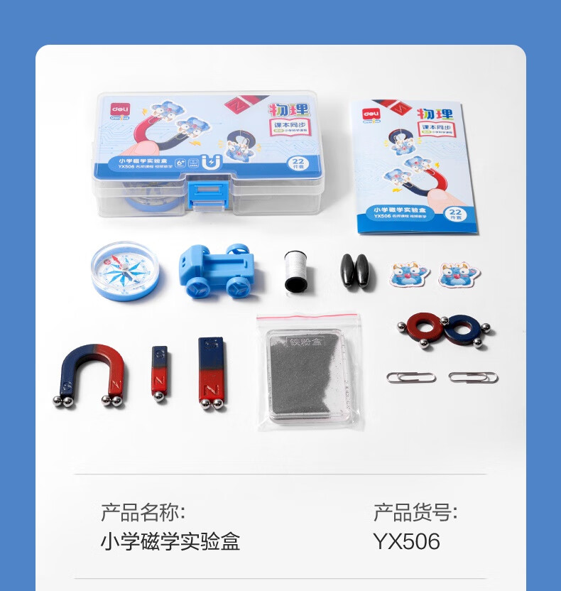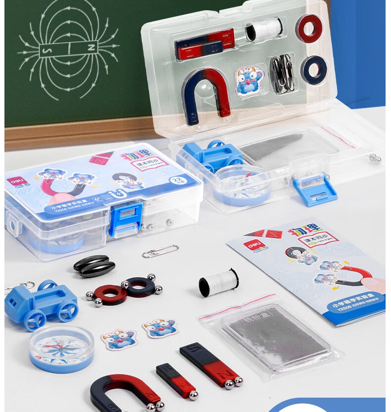 得力(deli)磁铁教具实验套装小学教材同步文具指南针u型条形马蹄形吸铁石悬浮儿童物理科学实验全套器材22件