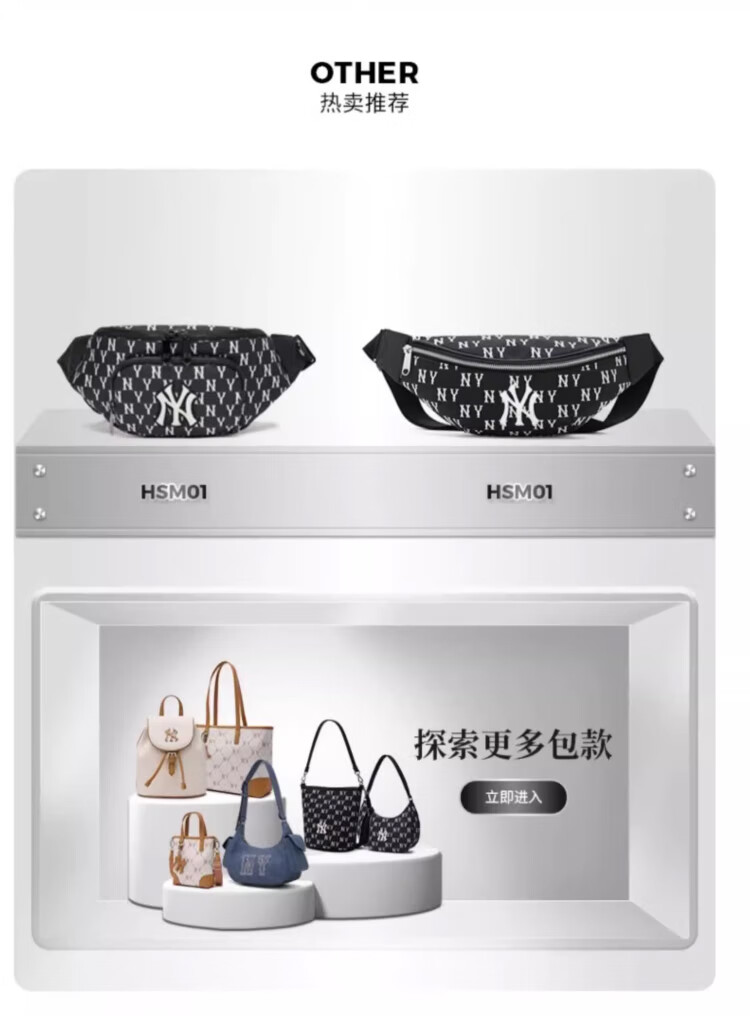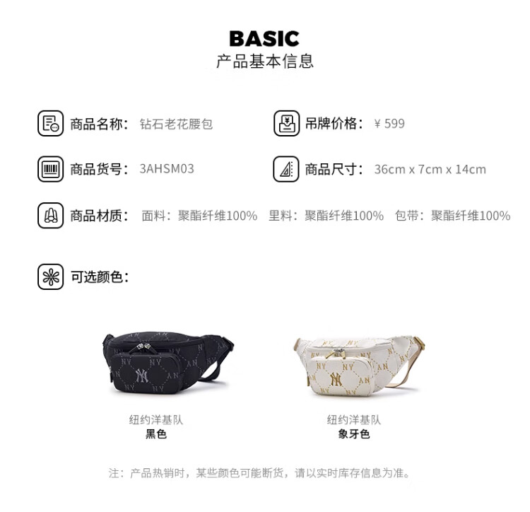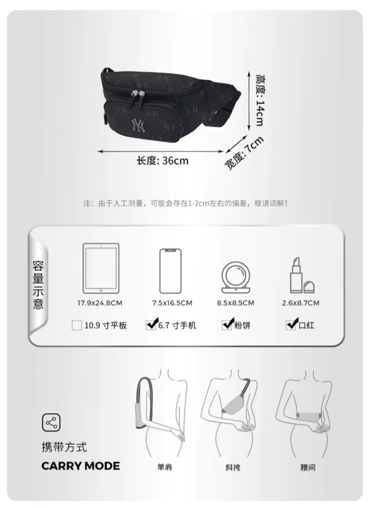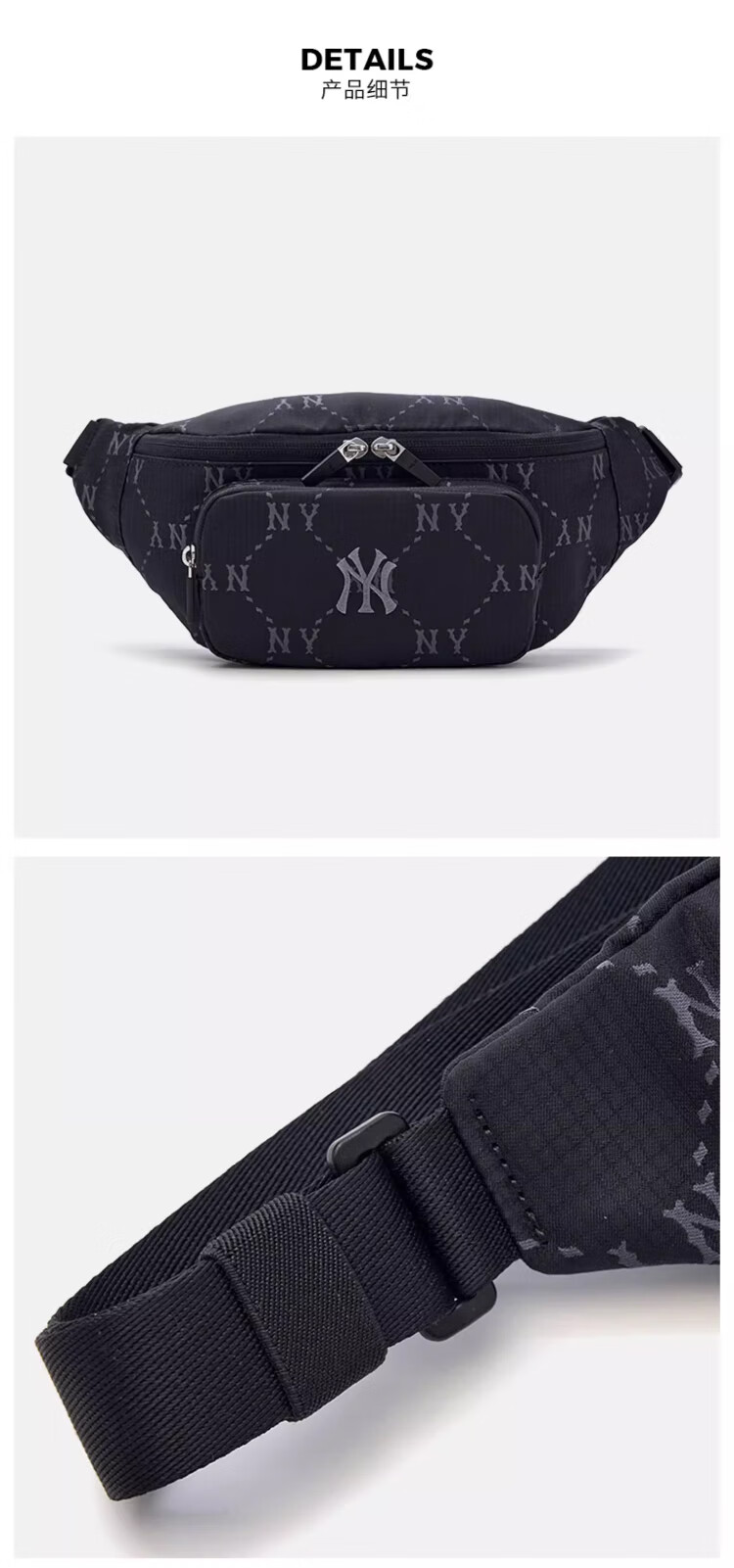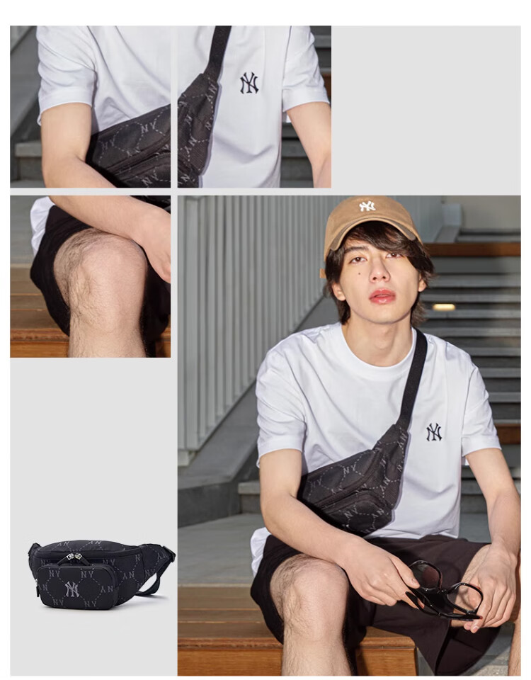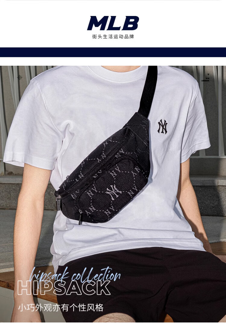 MLB男女钻石休闲老花腰包挎包生日礼物3AHSM035N-50BKS