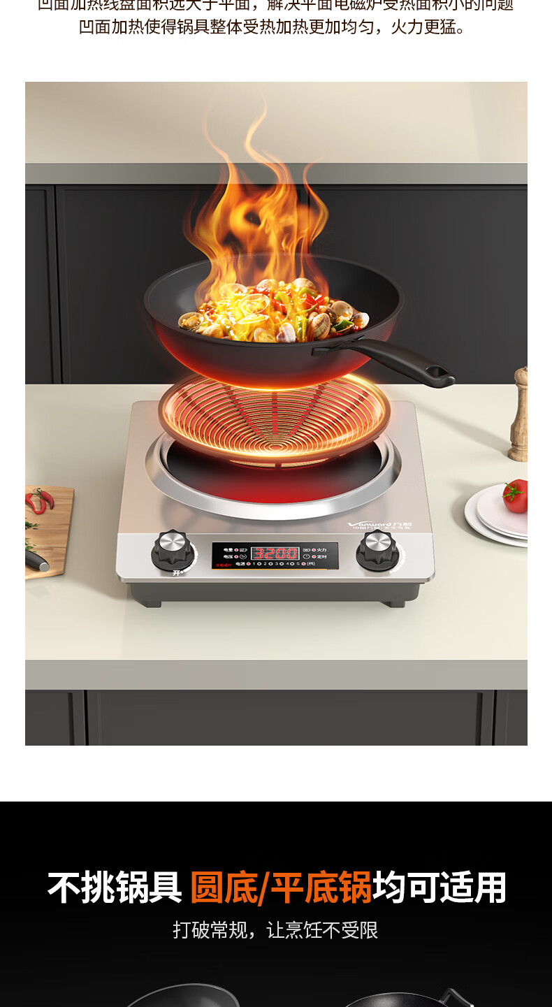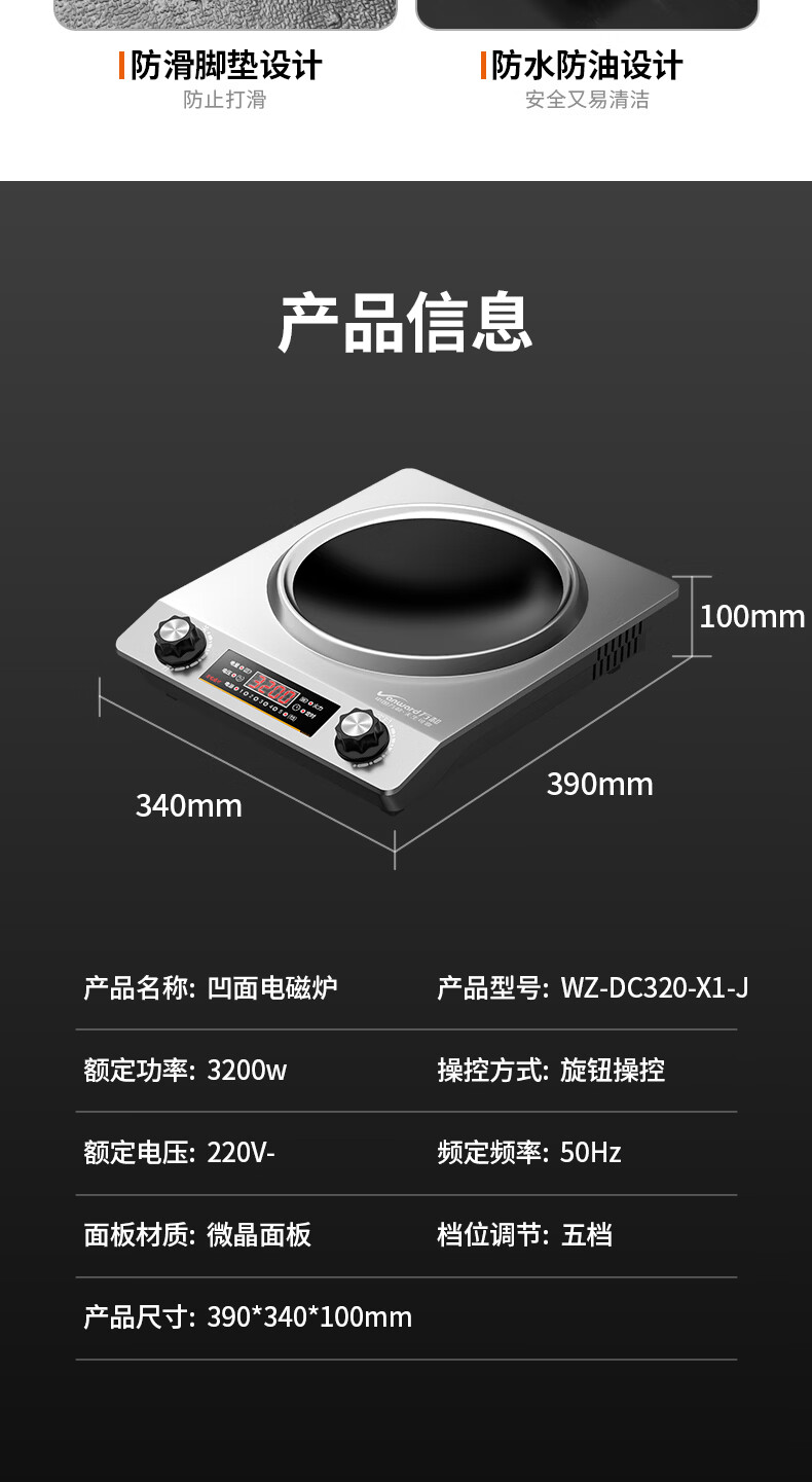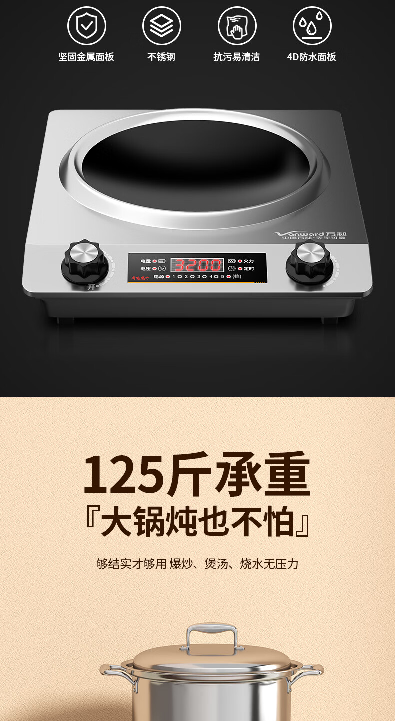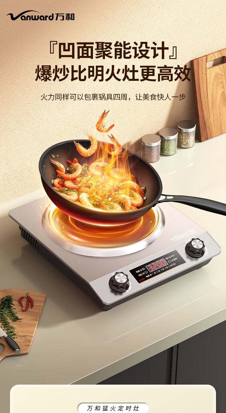 万和(Vanward)万和凹面电磁炉家用大功率电磁灶电炒炉电炉灶商用火锅灶炒菜猛火爆炒定时京东自营 WZ-DC320-X1-J