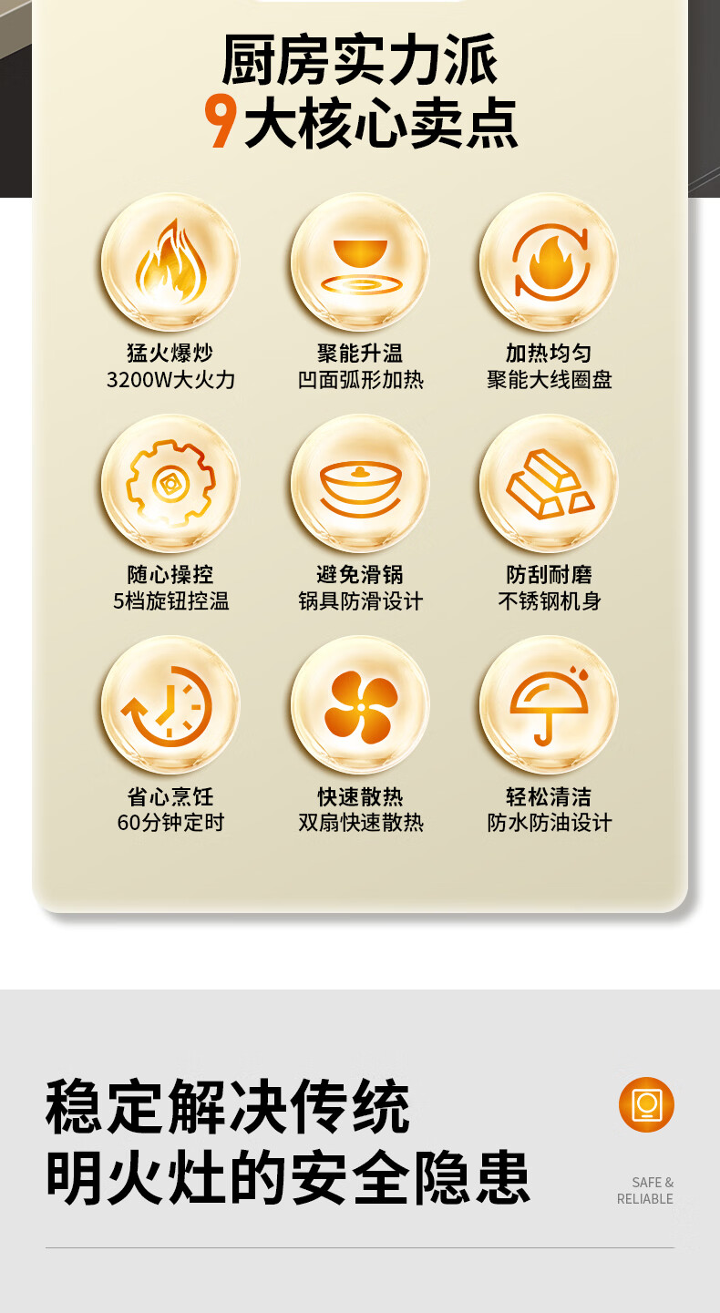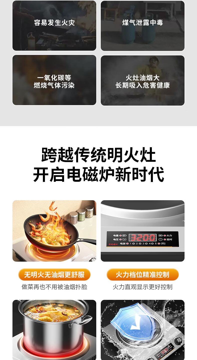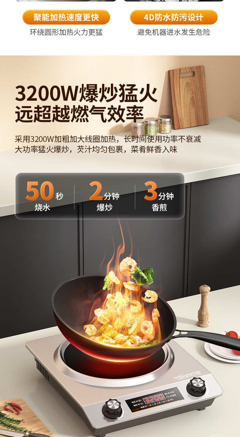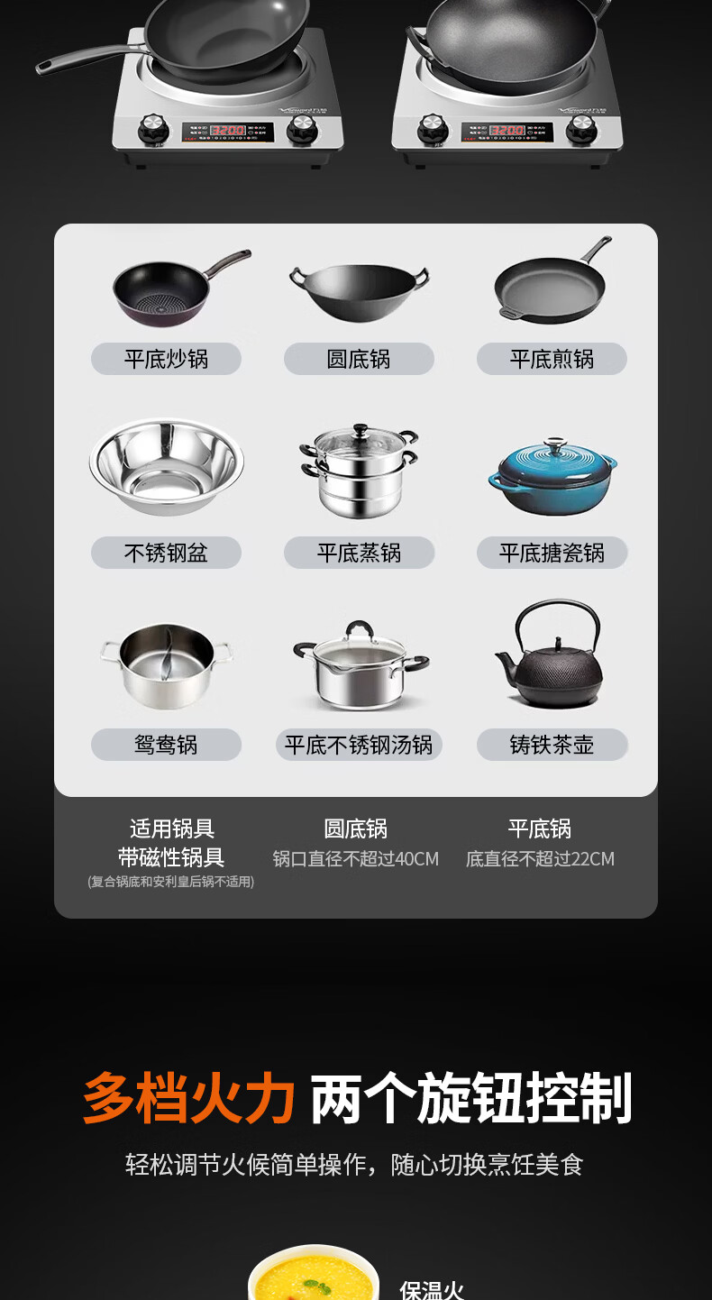 万和(Vanward)万和凹面电磁炉家用大功率电磁灶电炒炉电炉灶商用火锅灶炒菜猛火爆炒定时京东自营 WZ-DC320-X1-J