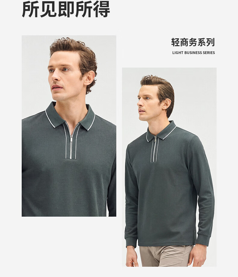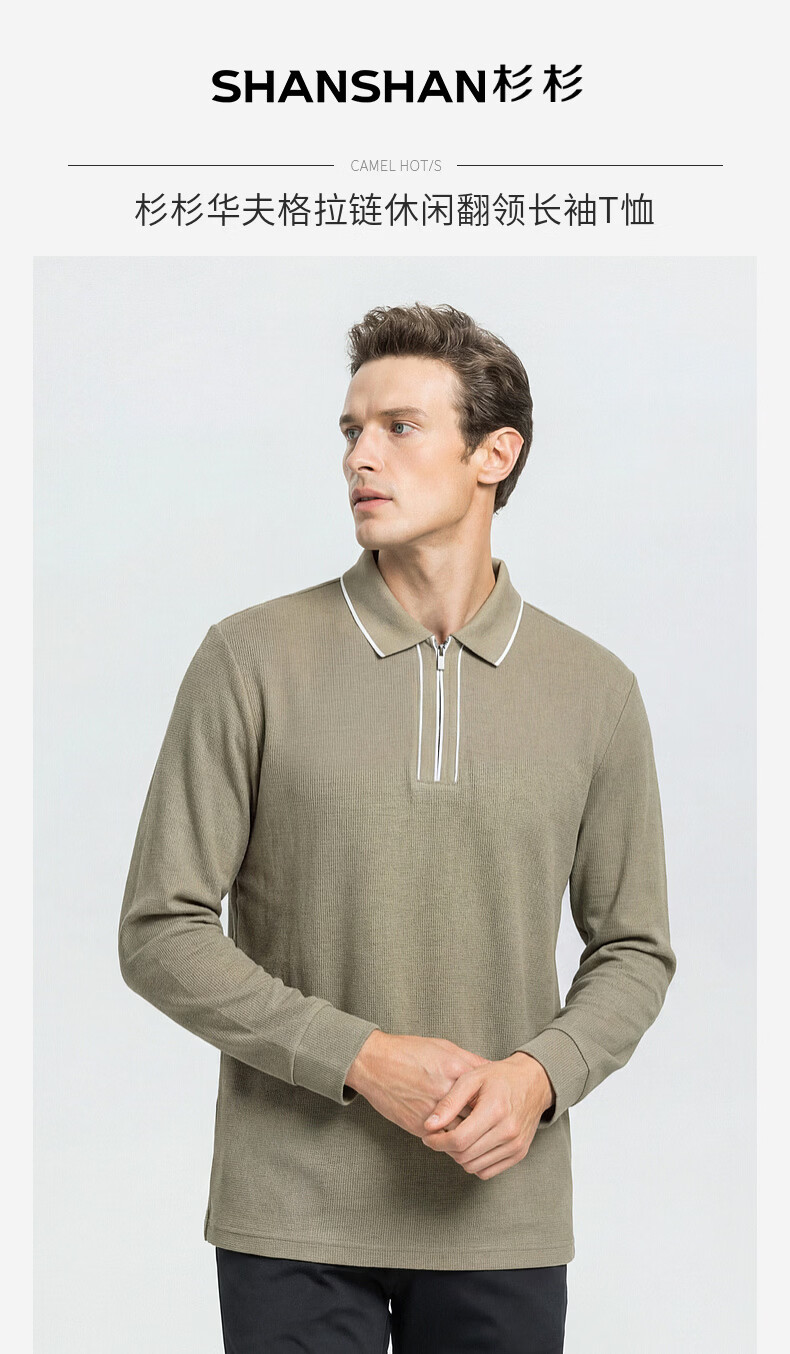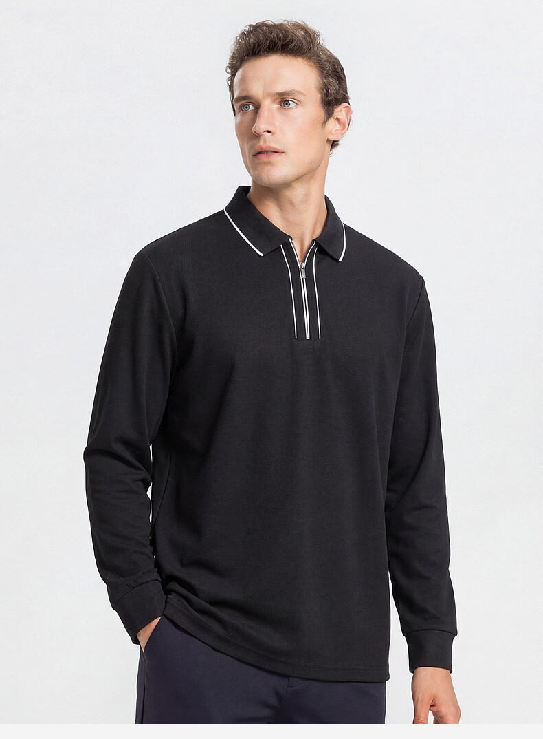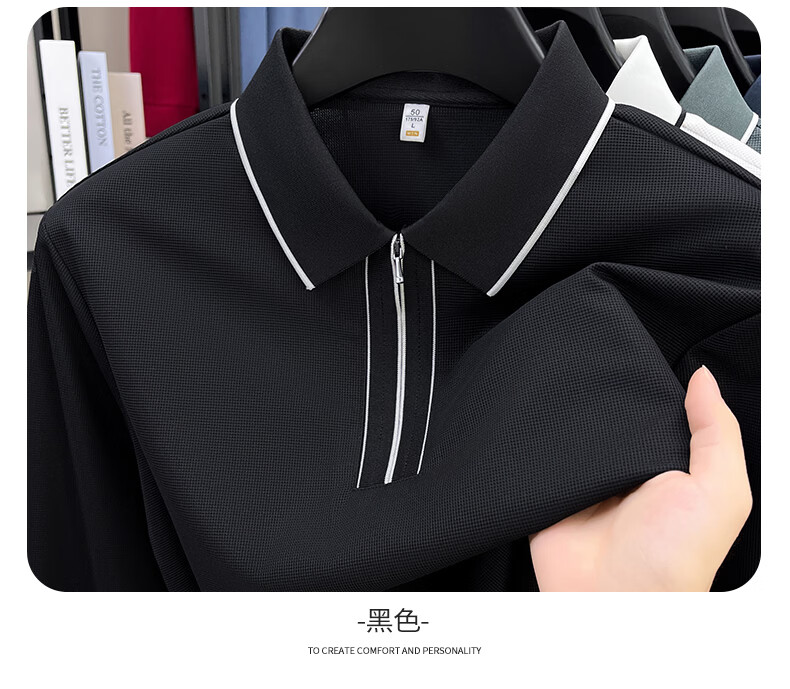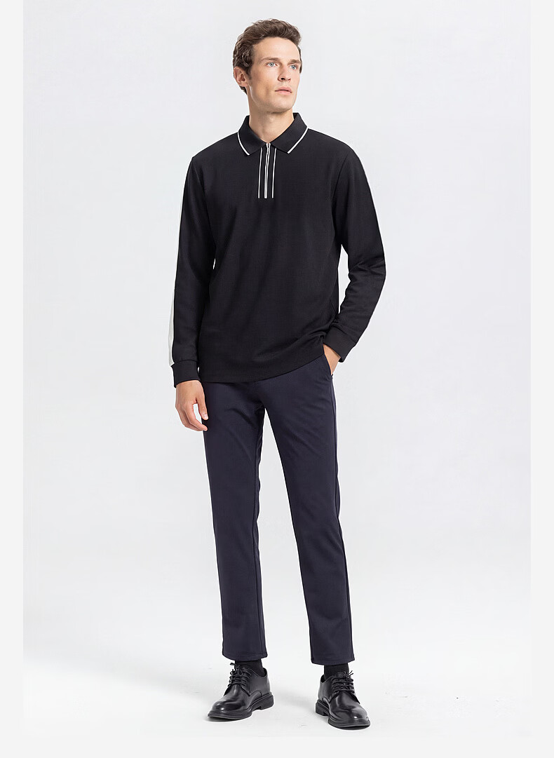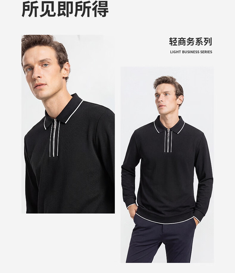 SHANSHAN杉杉【锦氨弹力撞色】长袖t恤男翻领POLO衫商务休闲打底通勤春秋 黑色 M /170