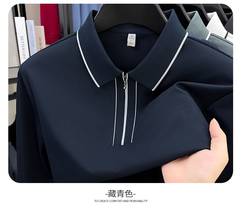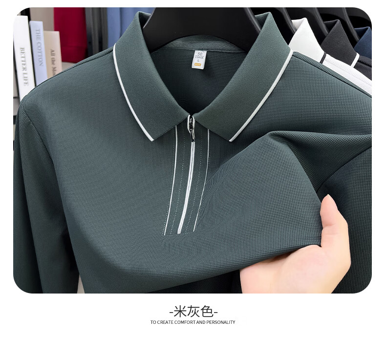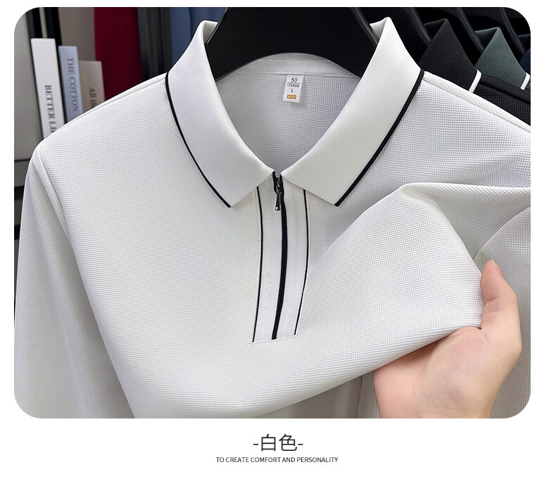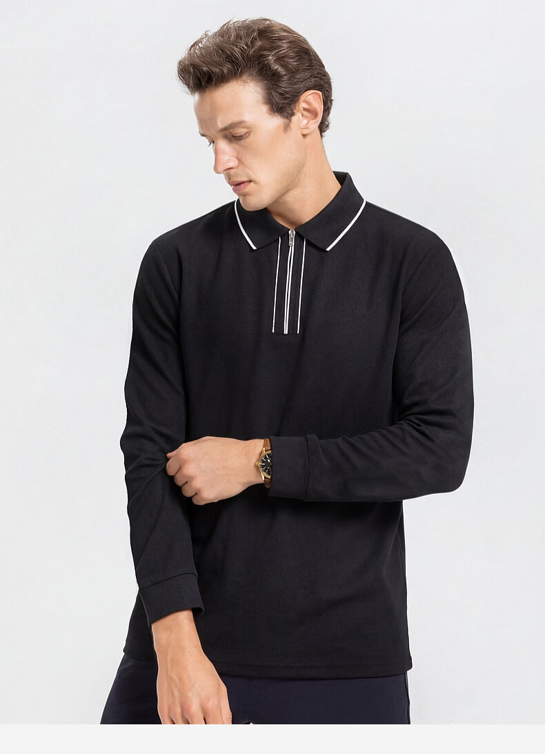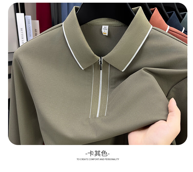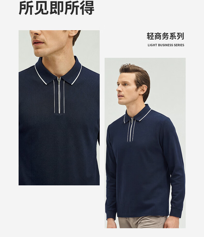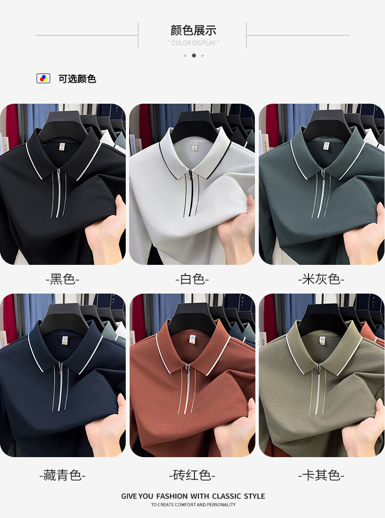 SHANSHAN杉杉【锦氨弹力撞色】长袖t恤男翻领POLO衫商务休闲打底通勤春秋 黑色 M /170