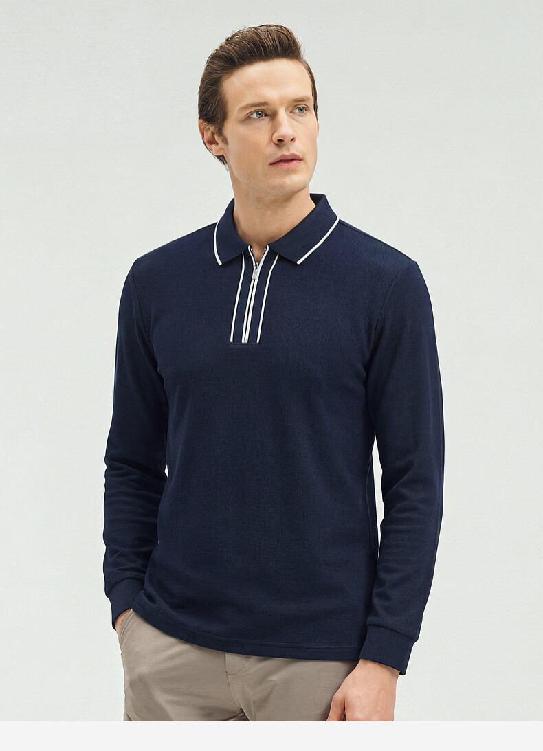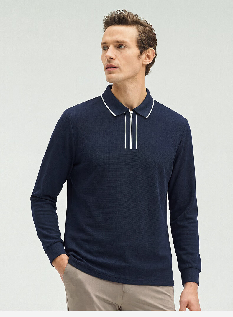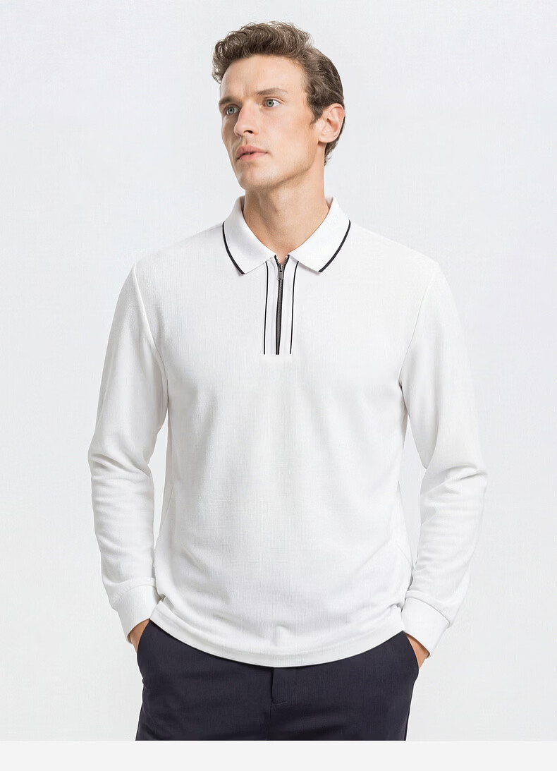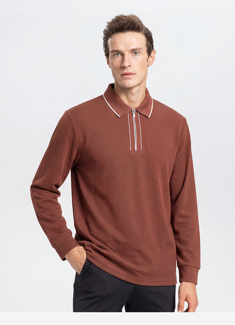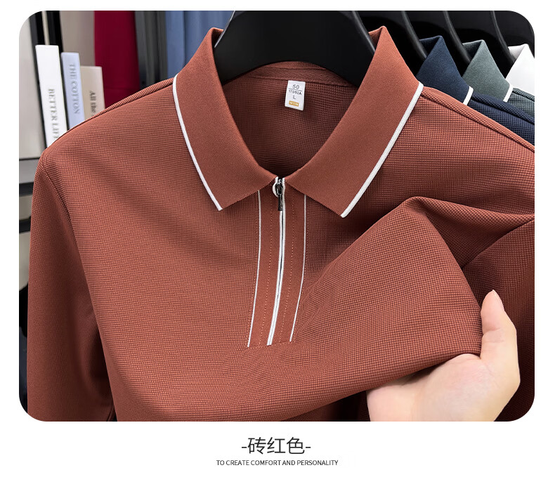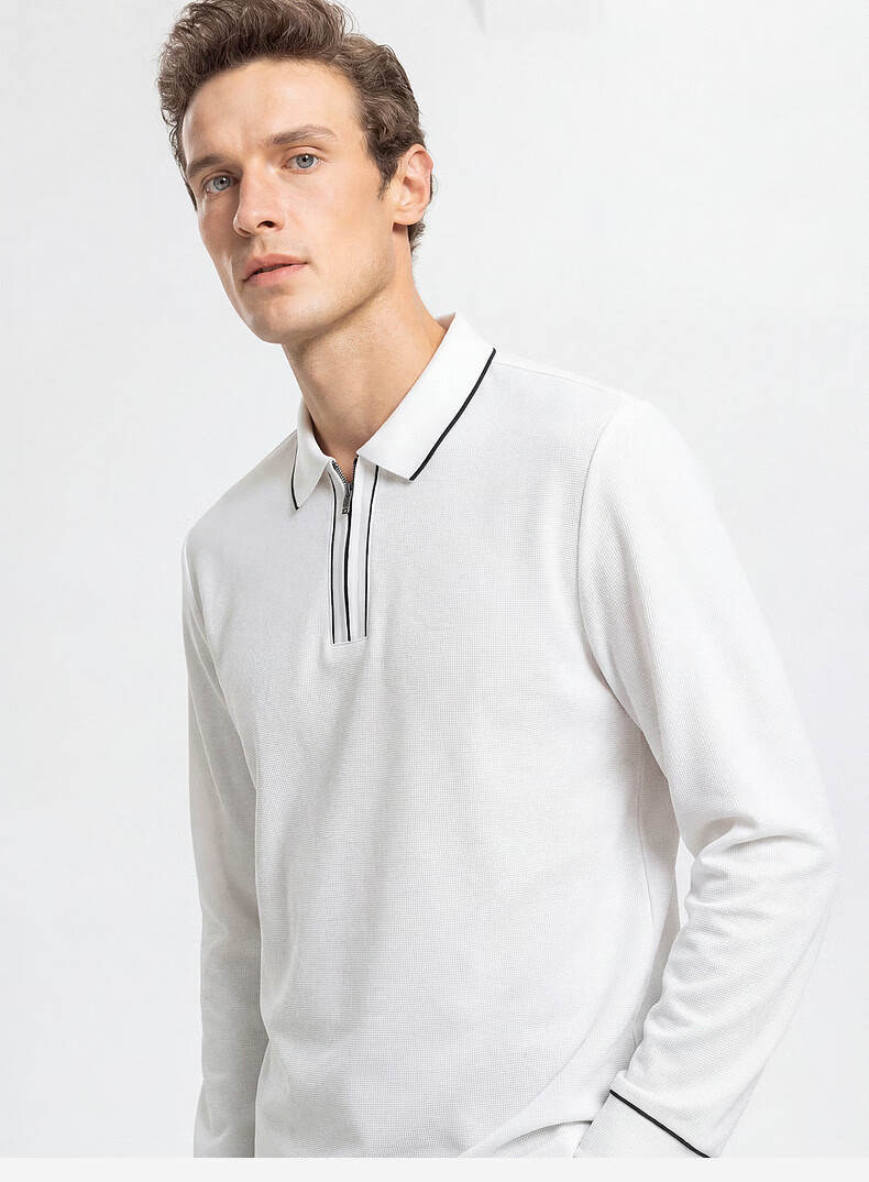 SHANSHAN杉杉【锦氨弹力撞色】长袖t恤男翻领POLO衫商务休闲打底通勤春秋 黑色 M /170