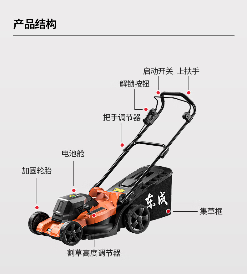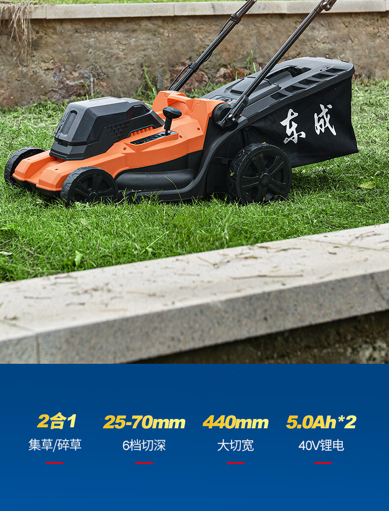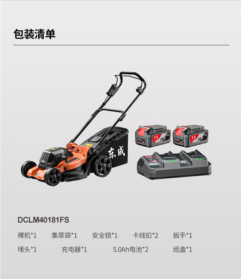 东成 橙色电动割草机草坪修剪机自走推草机除草机神器打草坪手推剪草 DCLM40181FS 40V5.0Ah双电双充