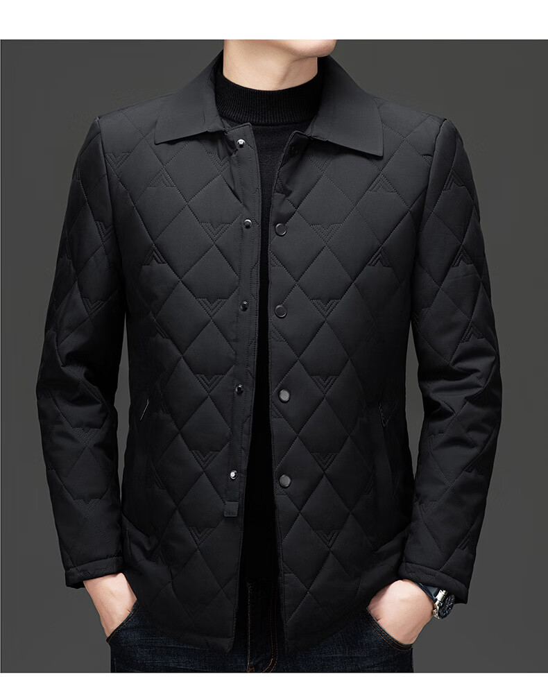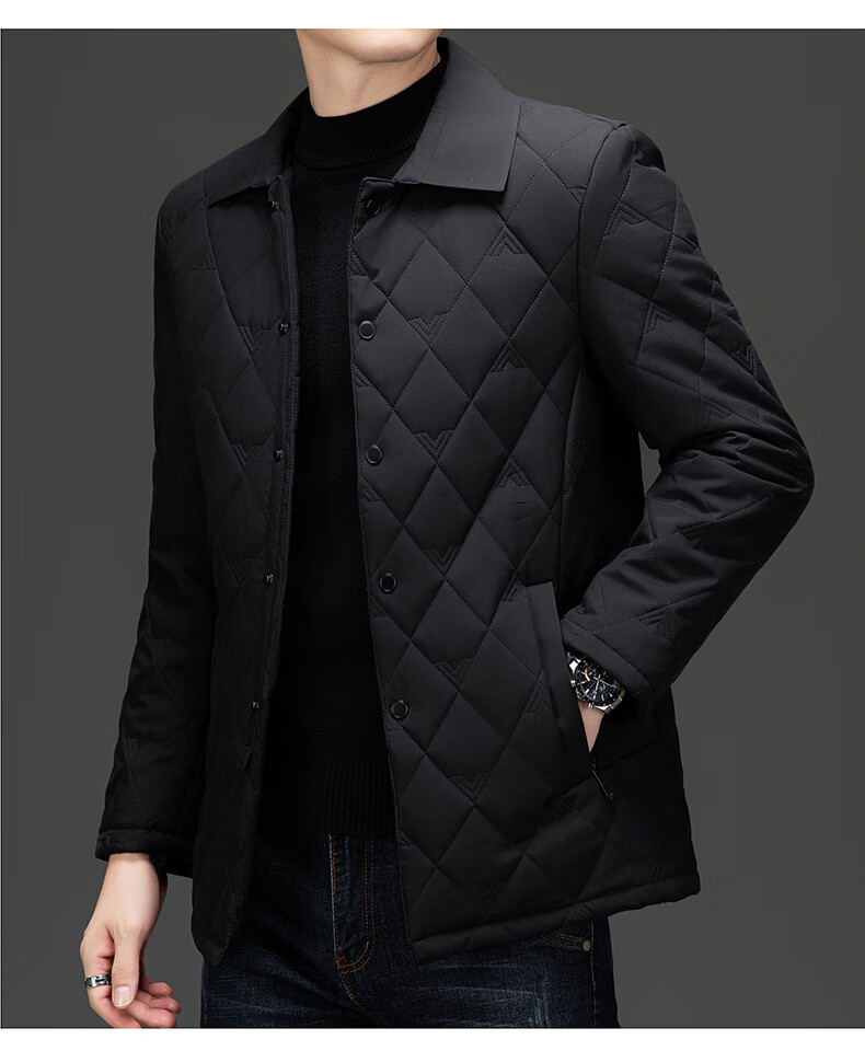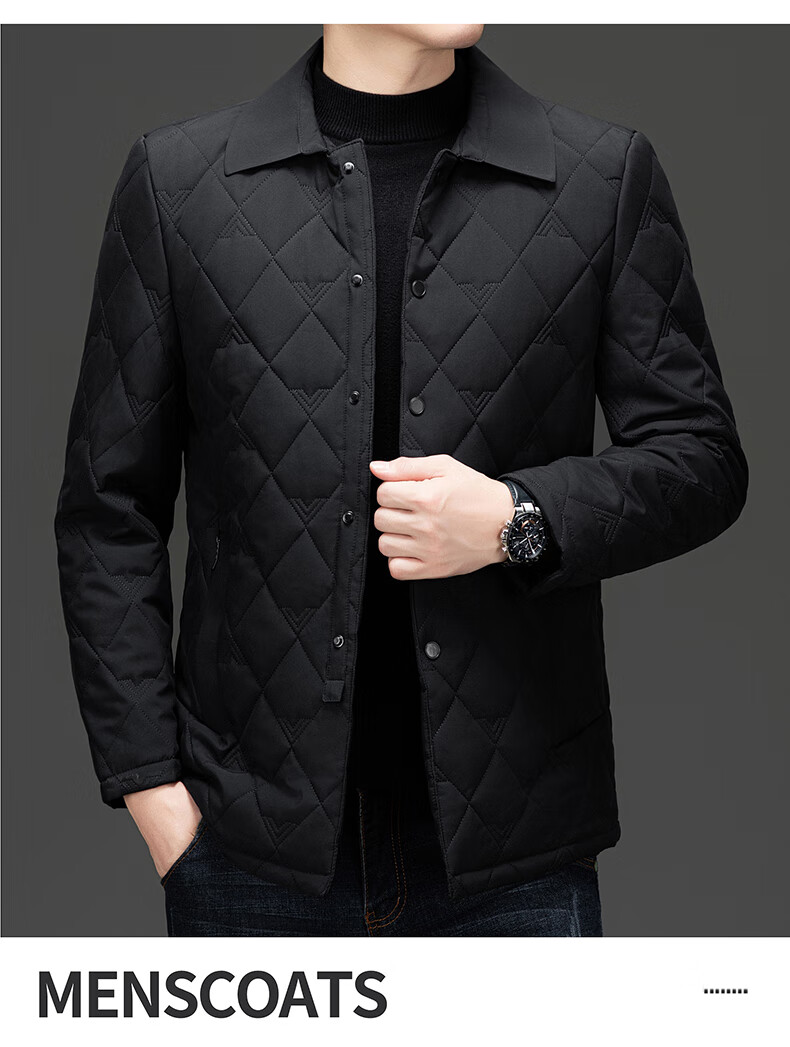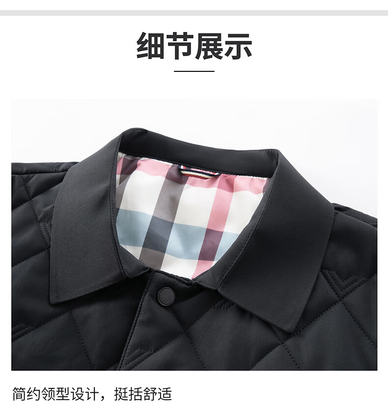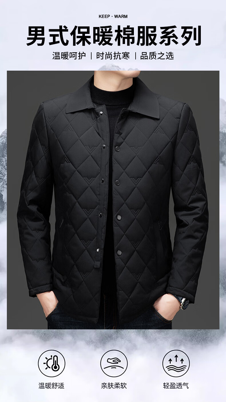 花花公子轻薄款棉衣男士2025冬季翻领夹克外套商务休闲保暖棉服上衣服男装 黑色 XL 【120-140斤】