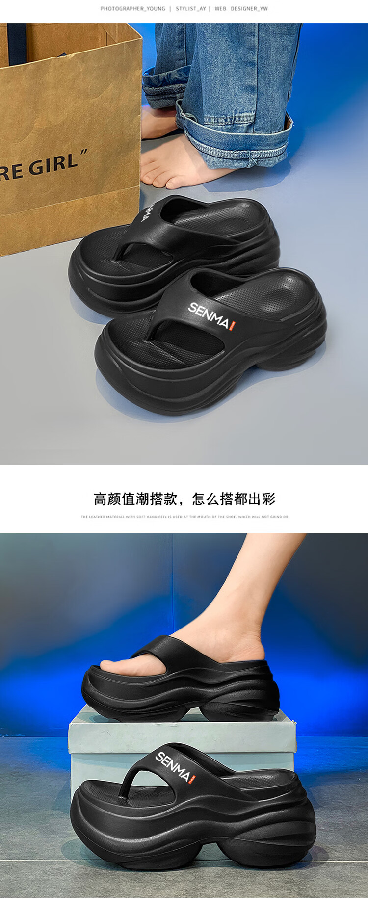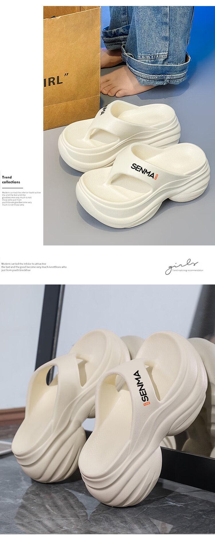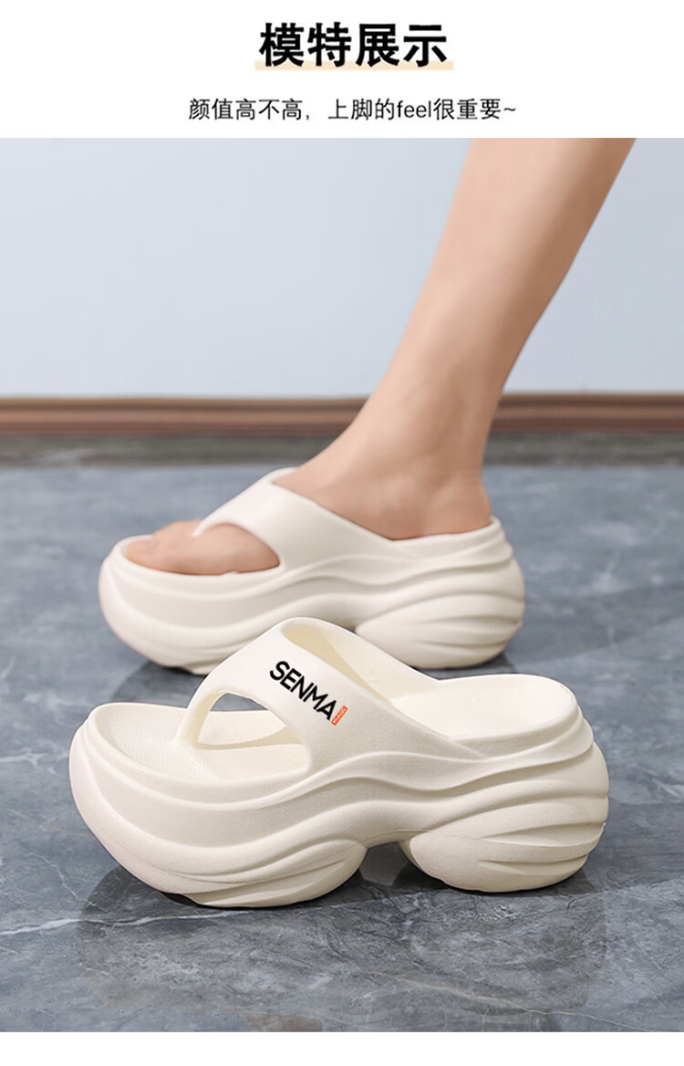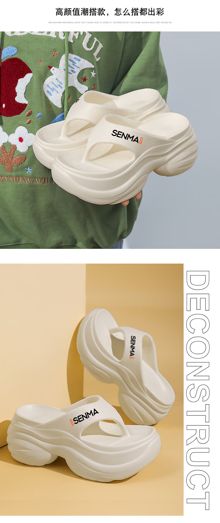 森馬厚底增高拖鞋女款夏季外穿踩屎感户外沙滩凉拖防滑防臭时尚人字拖 白色【基础款】 36-37 【现货秒发】
