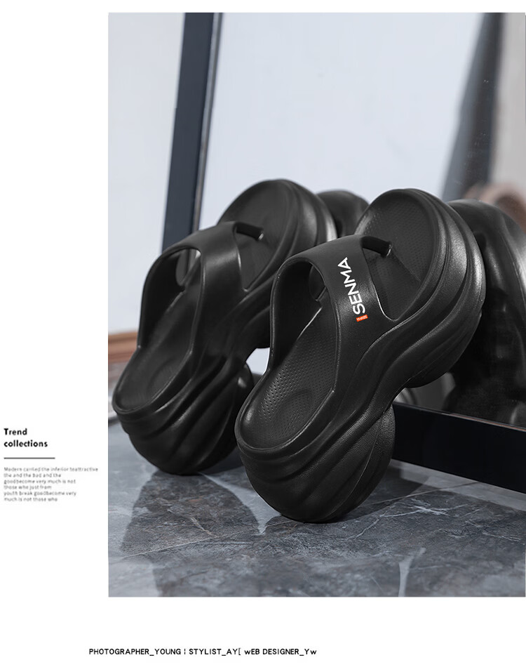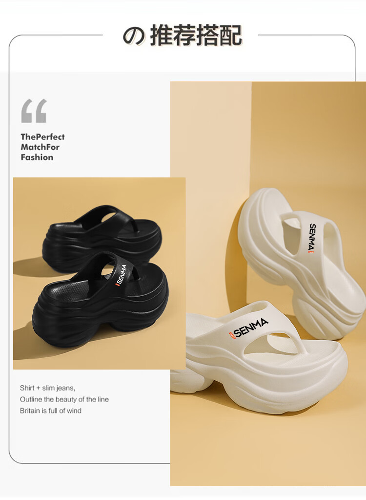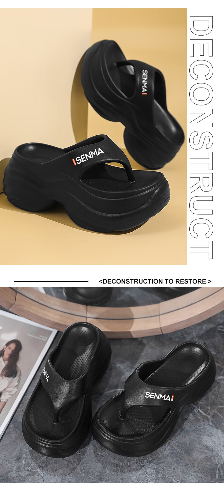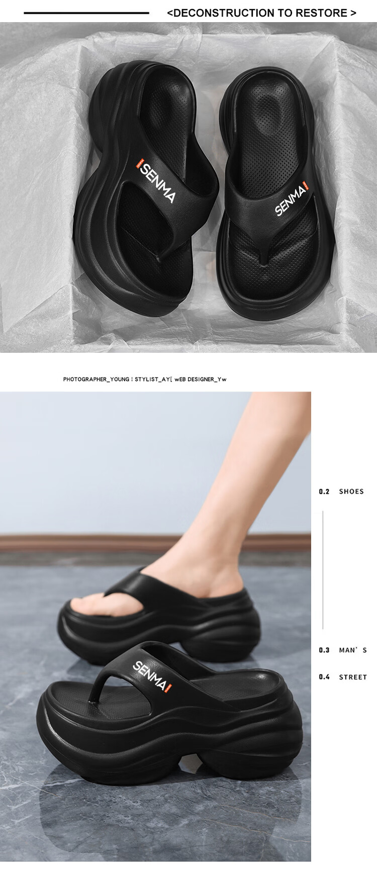 森馬厚底增高拖鞋女款夏季外穿踩屎感户外沙滩凉拖防滑防臭时尚人字拖 白色【基础款】 36-37 【现货秒发】