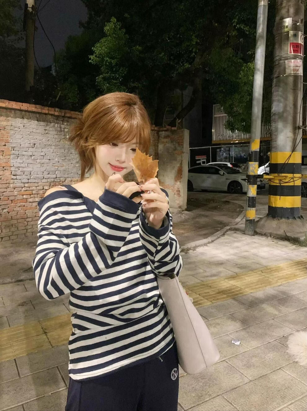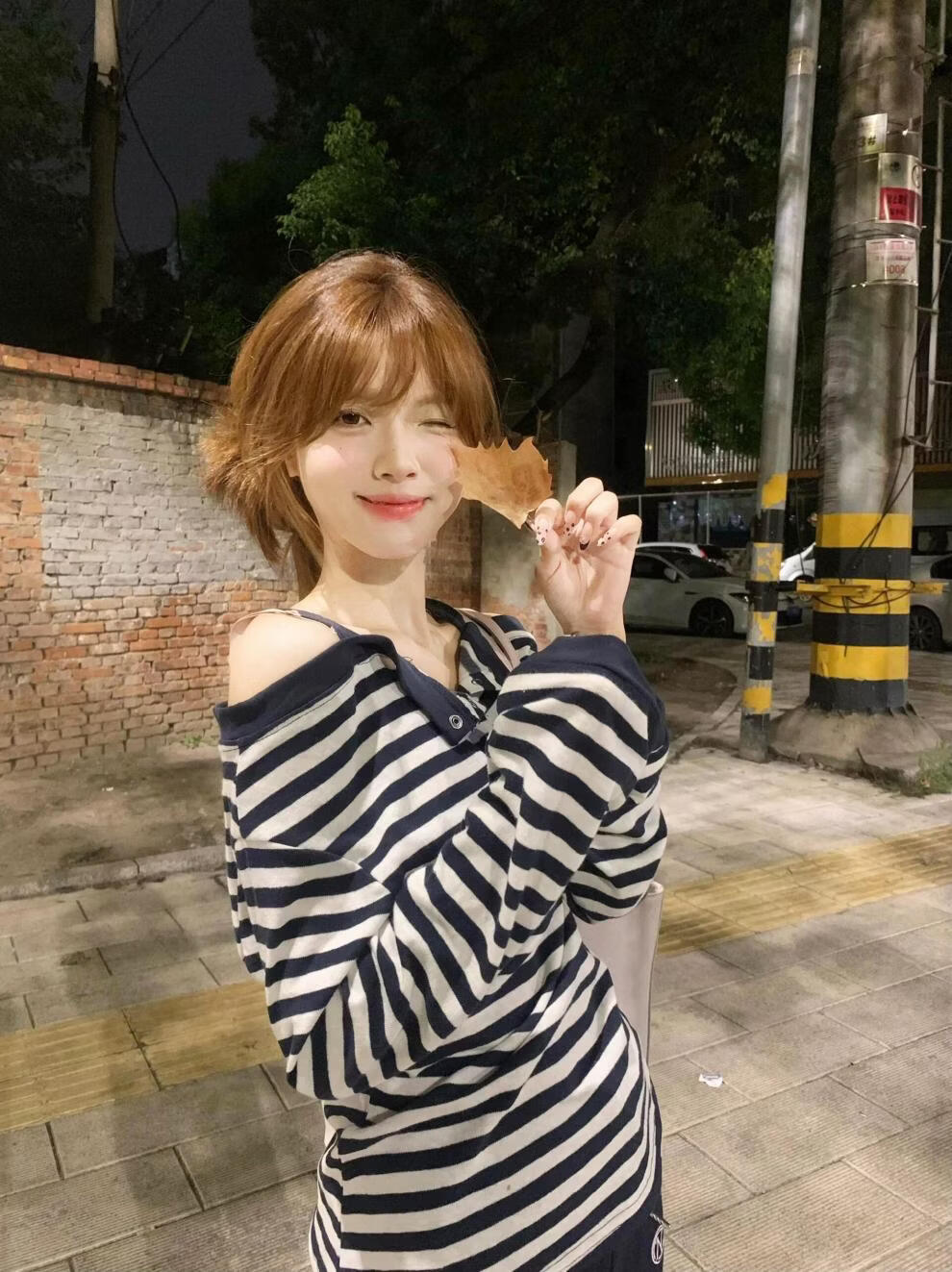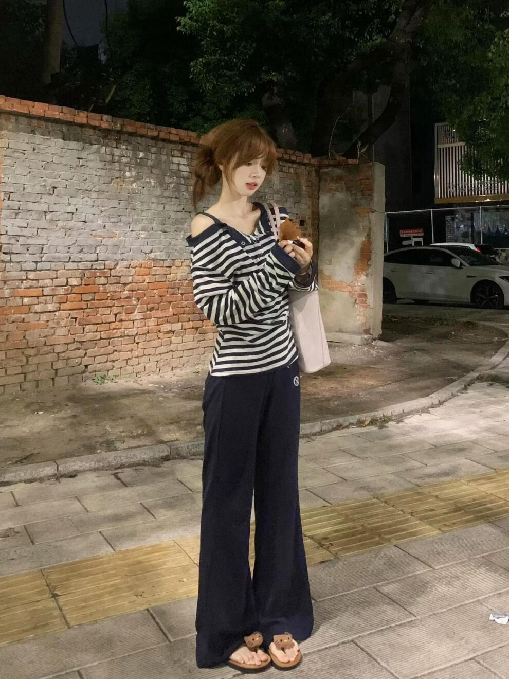 MODX美式甜辣风条纹一字肩长袖恤女2025秋季新款假两件休闲吊带上衣 藏青色条纹假两件 XL 建议120-135斤