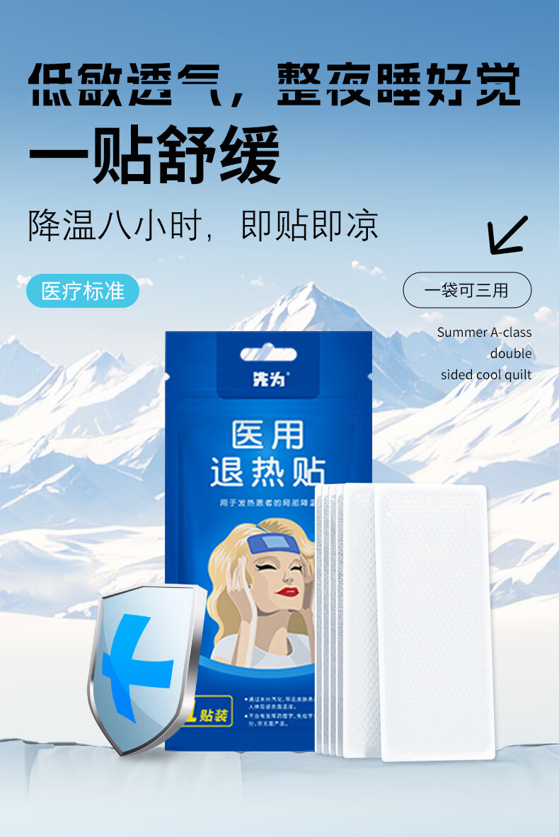 先为医用退热贴儿童婴儿宝宝发烧散热冰凉贴物理降温退烧贴成人 医用退热贴*10贴【独立包装】