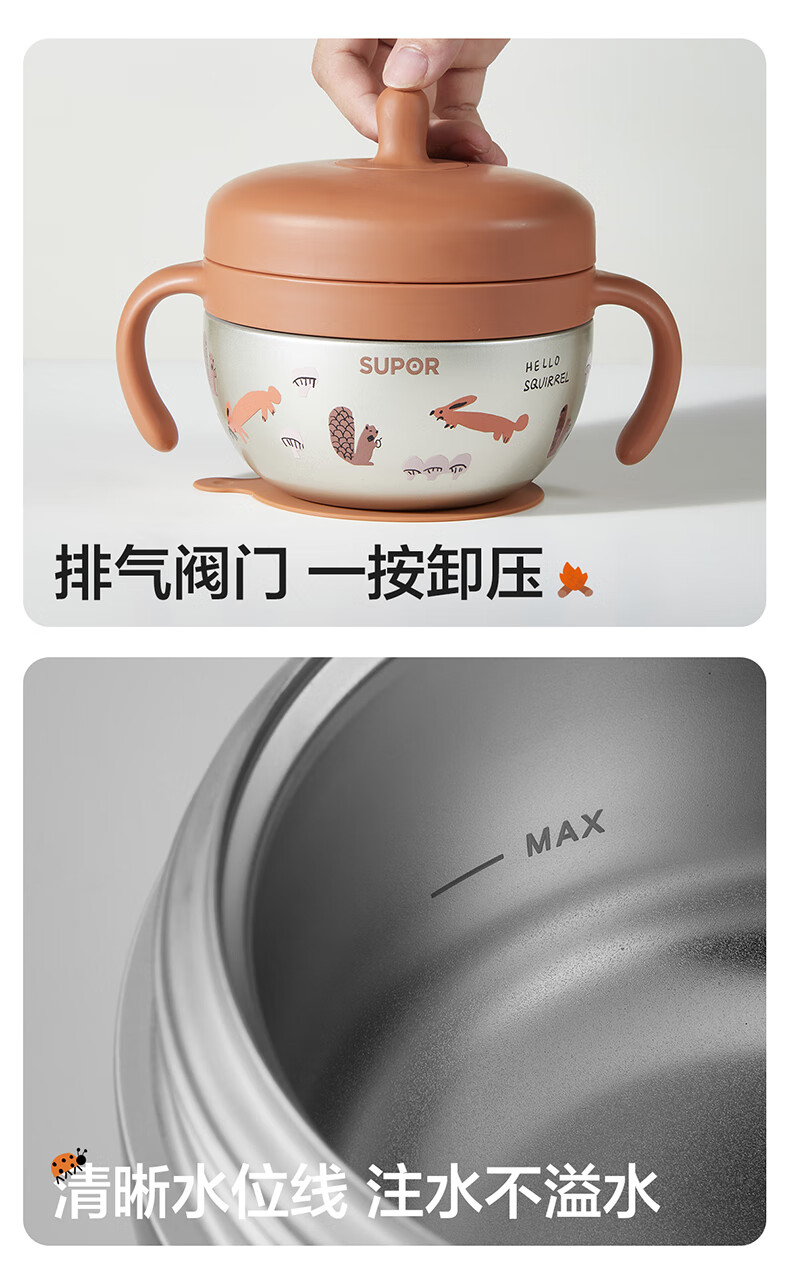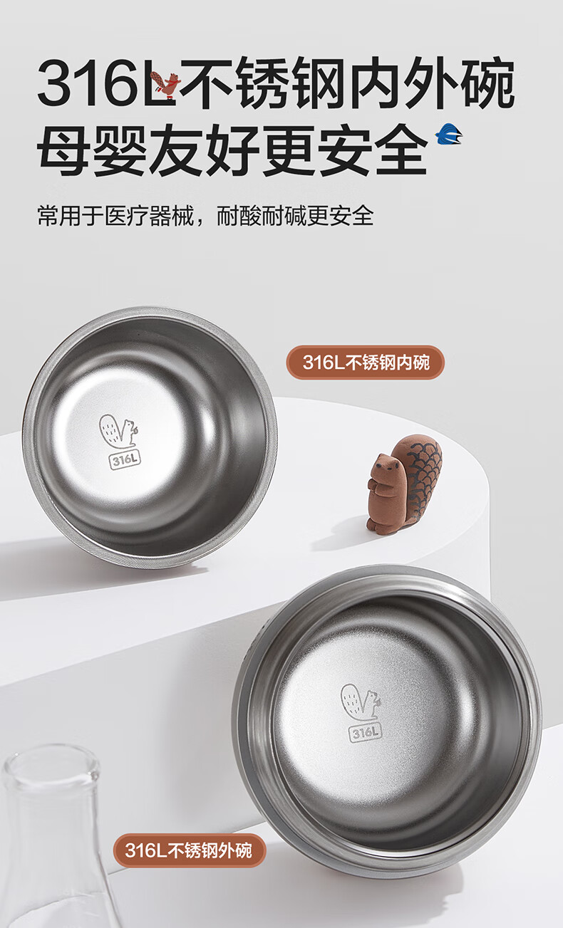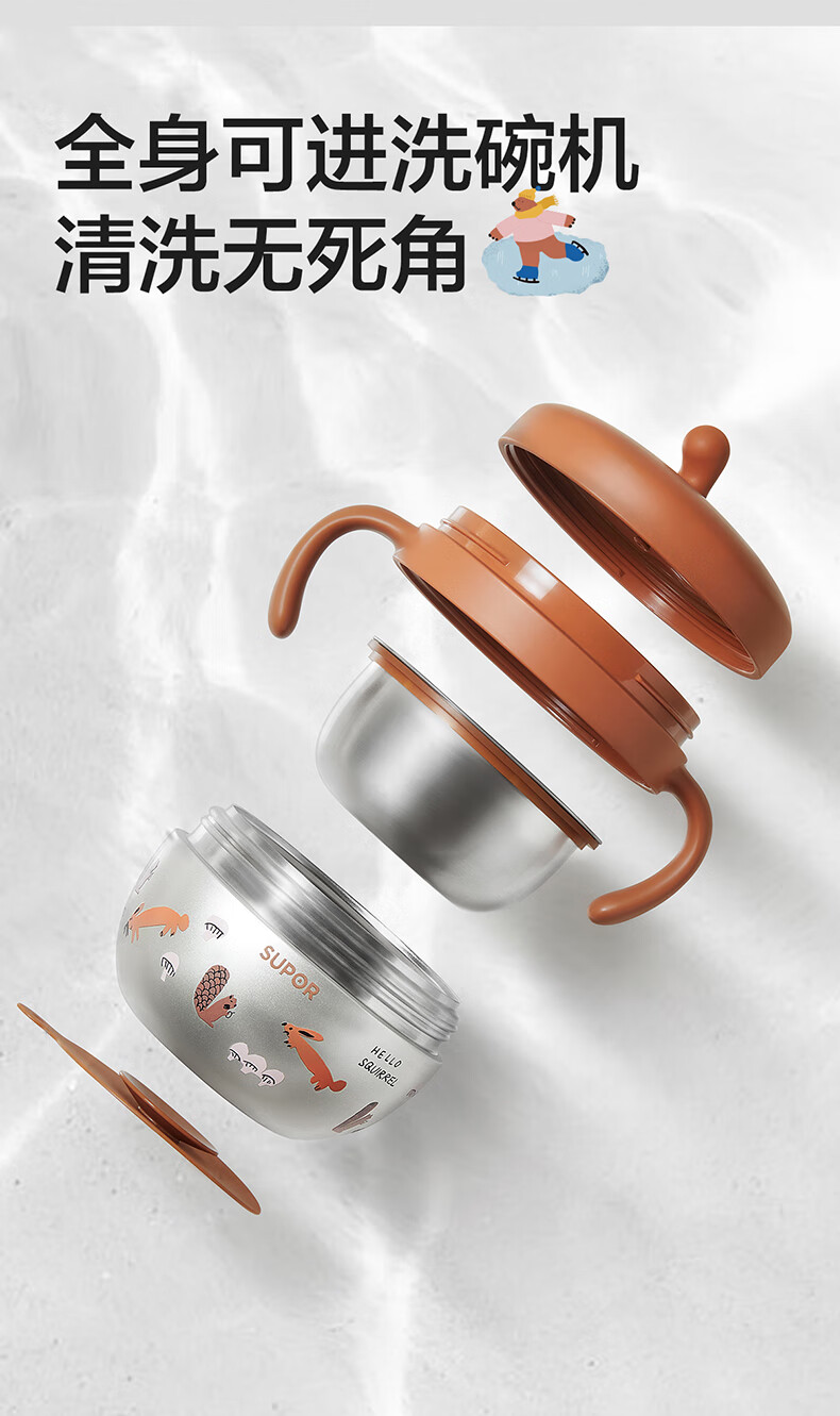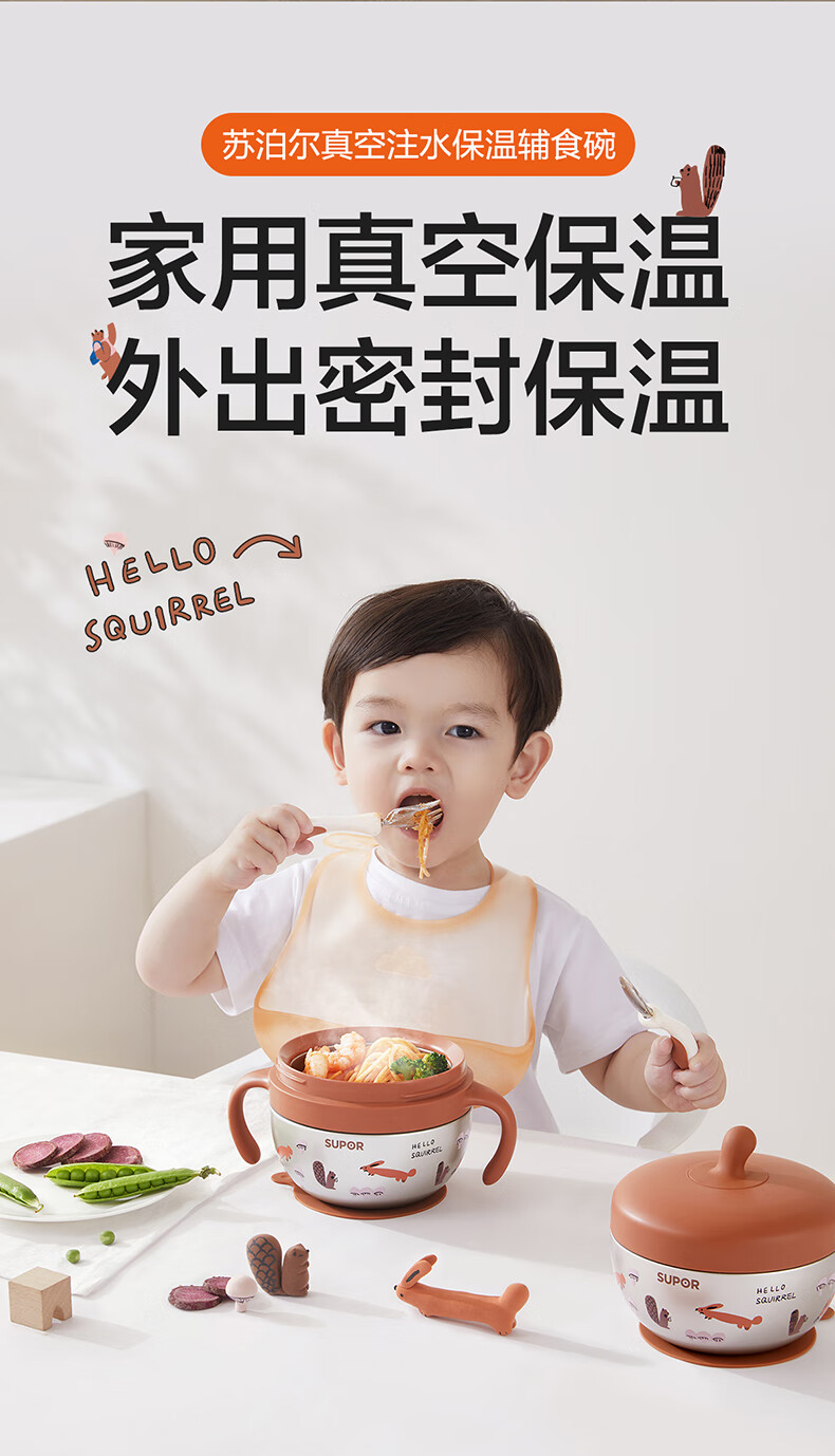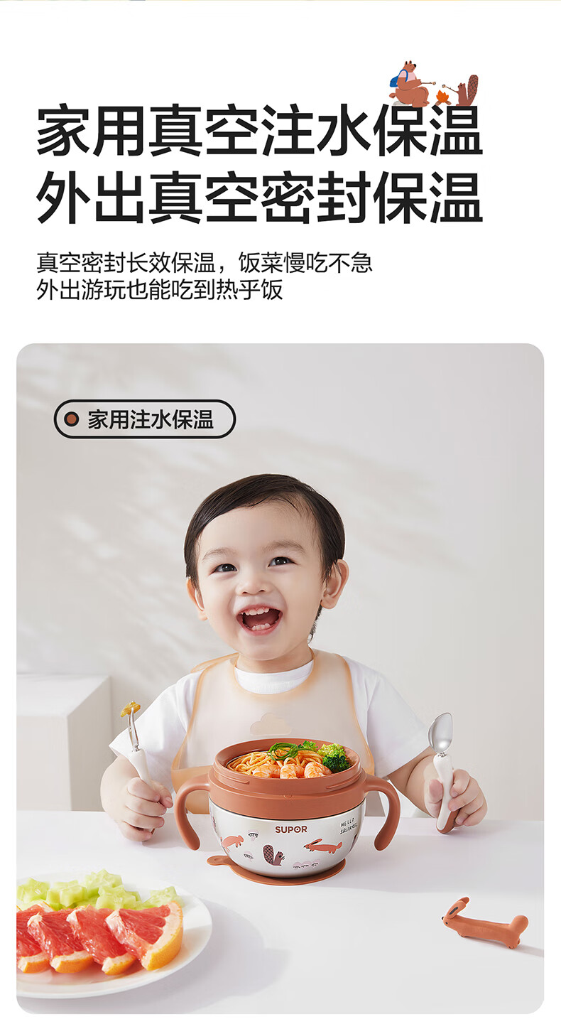 苏泊尔(SUPOR)辅食碗婴儿注水保温碗 真空保温碗316L不锈钢碗宝宝餐具吸盘碗