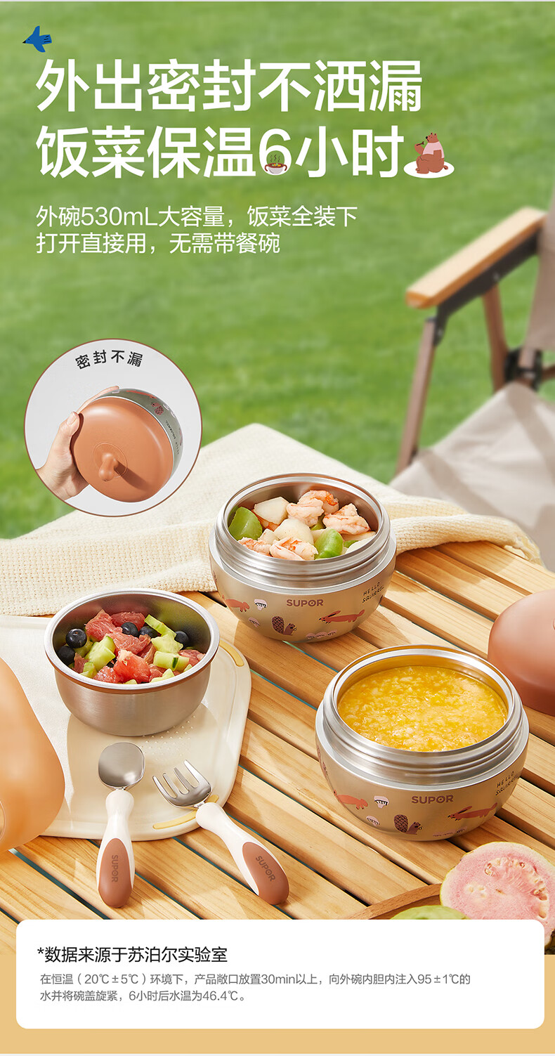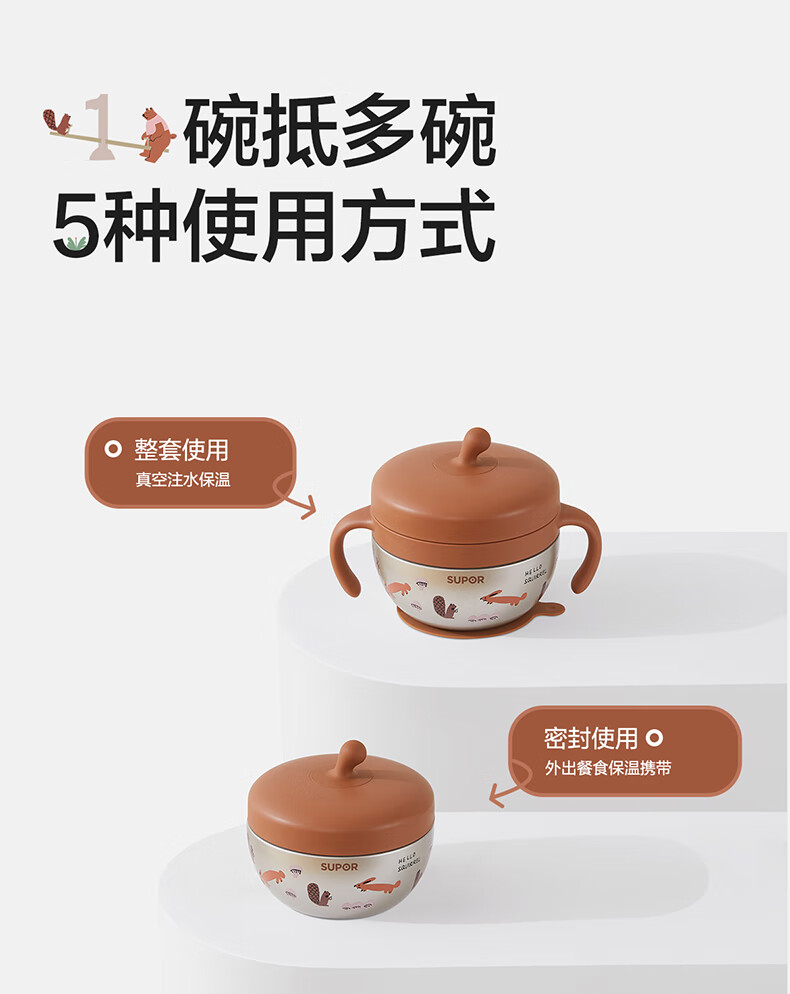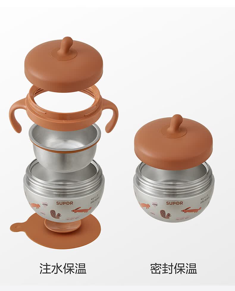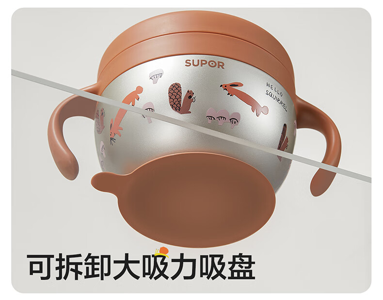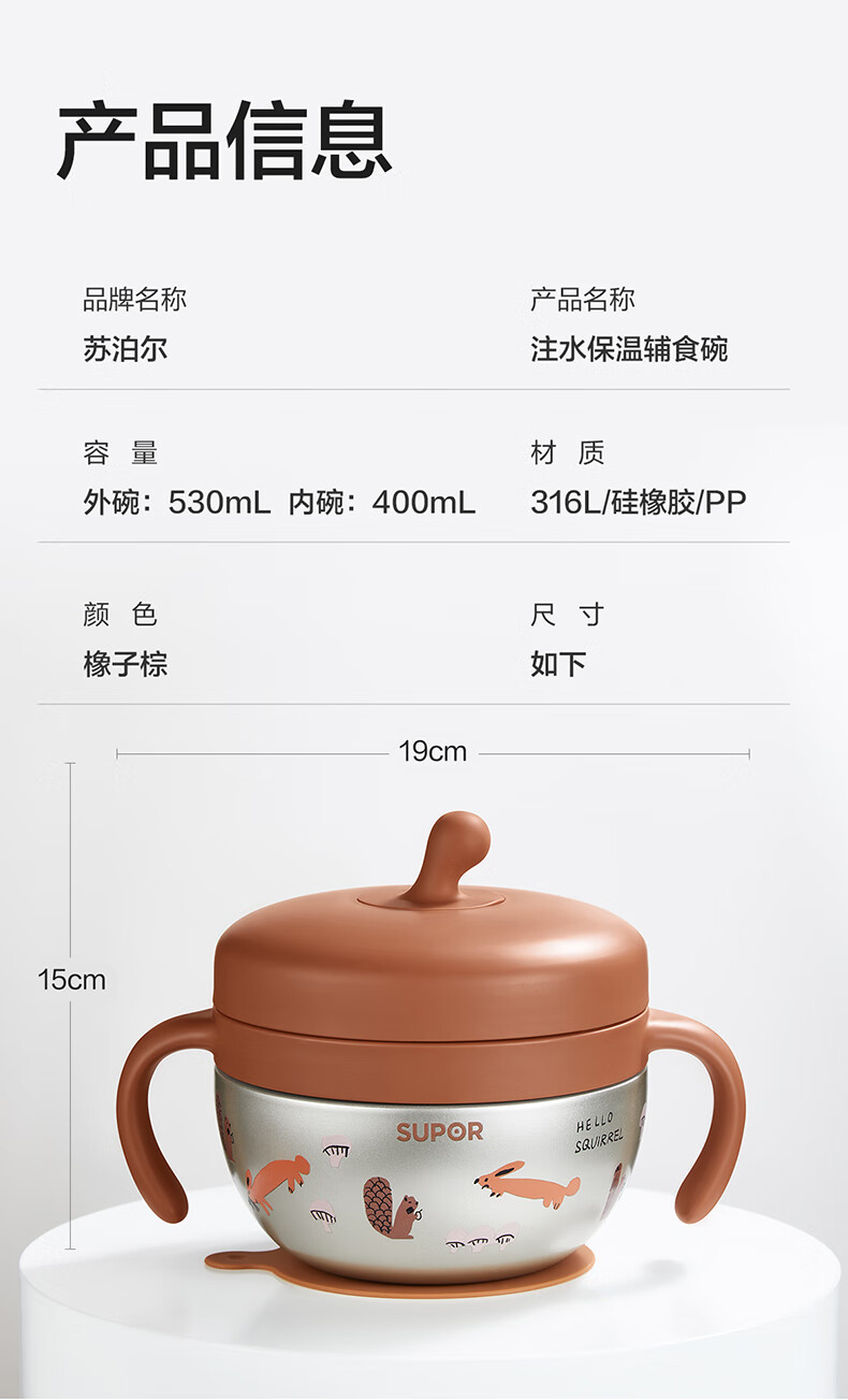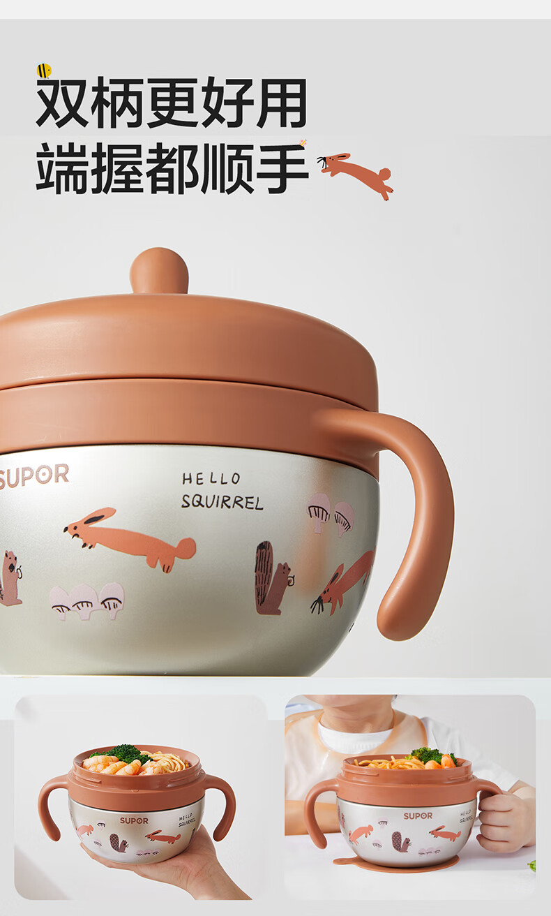 苏泊尔(SUPOR)辅食碗婴儿注水保温碗 真空保温碗316L不锈钢碗宝宝餐具吸盘碗