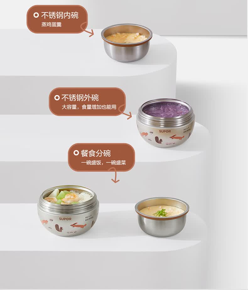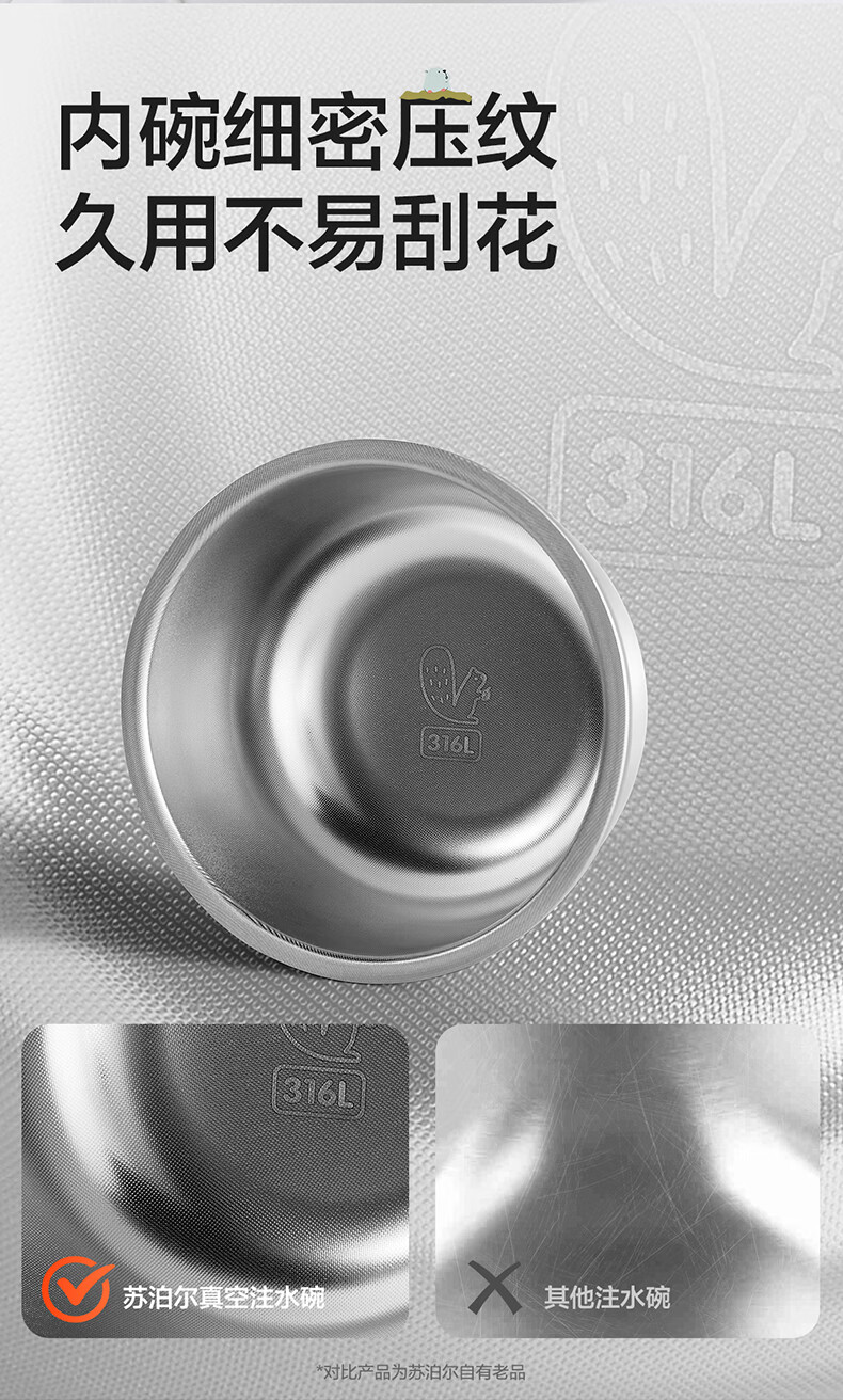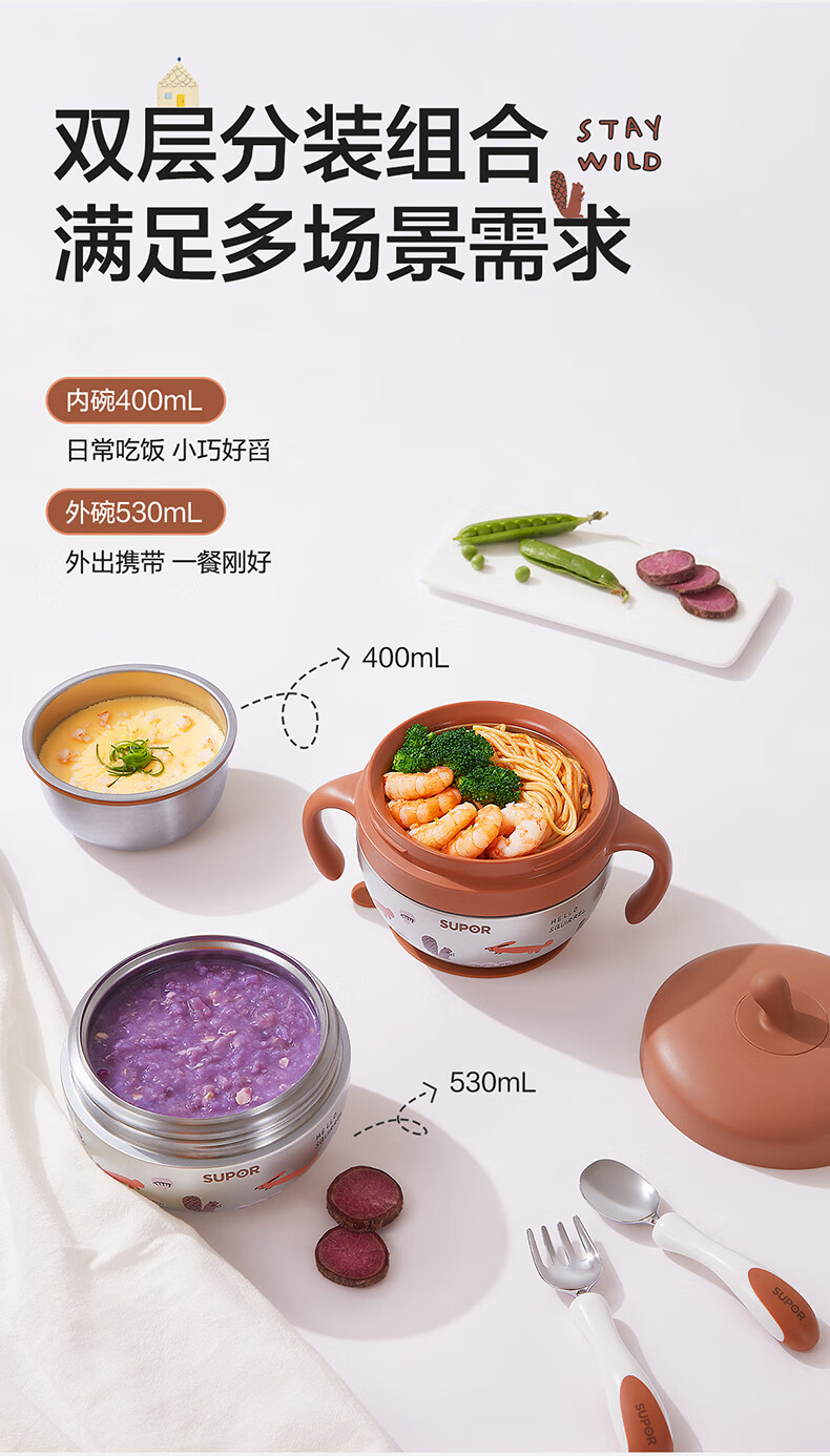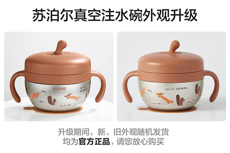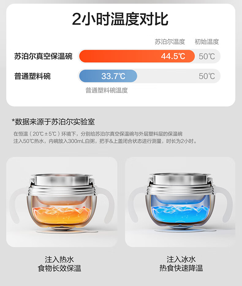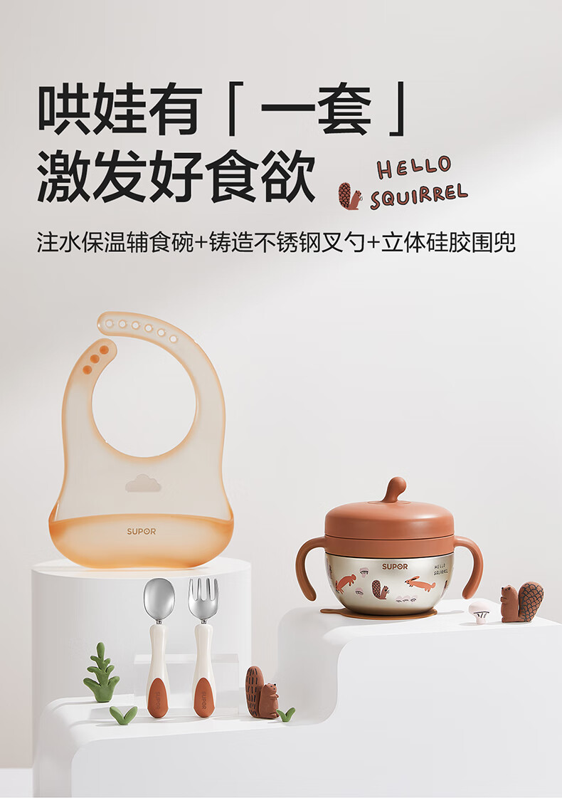 苏泊尔(SUPOR)辅食碗婴儿注水保温碗 真空保温碗316L不锈钢碗宝宝餐具吸盘碗