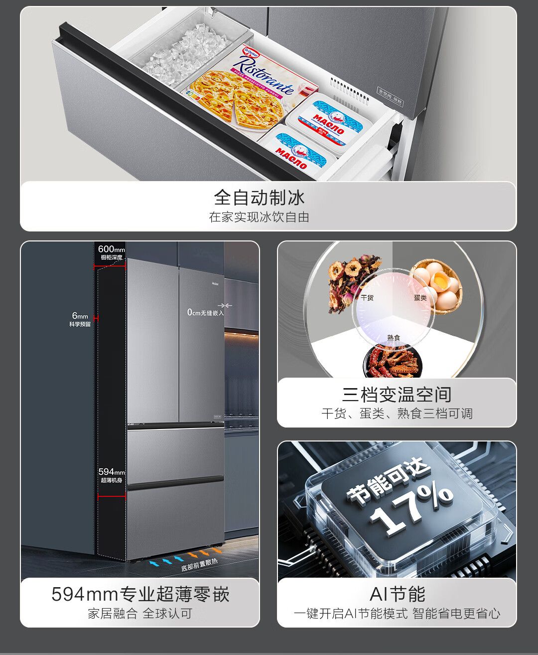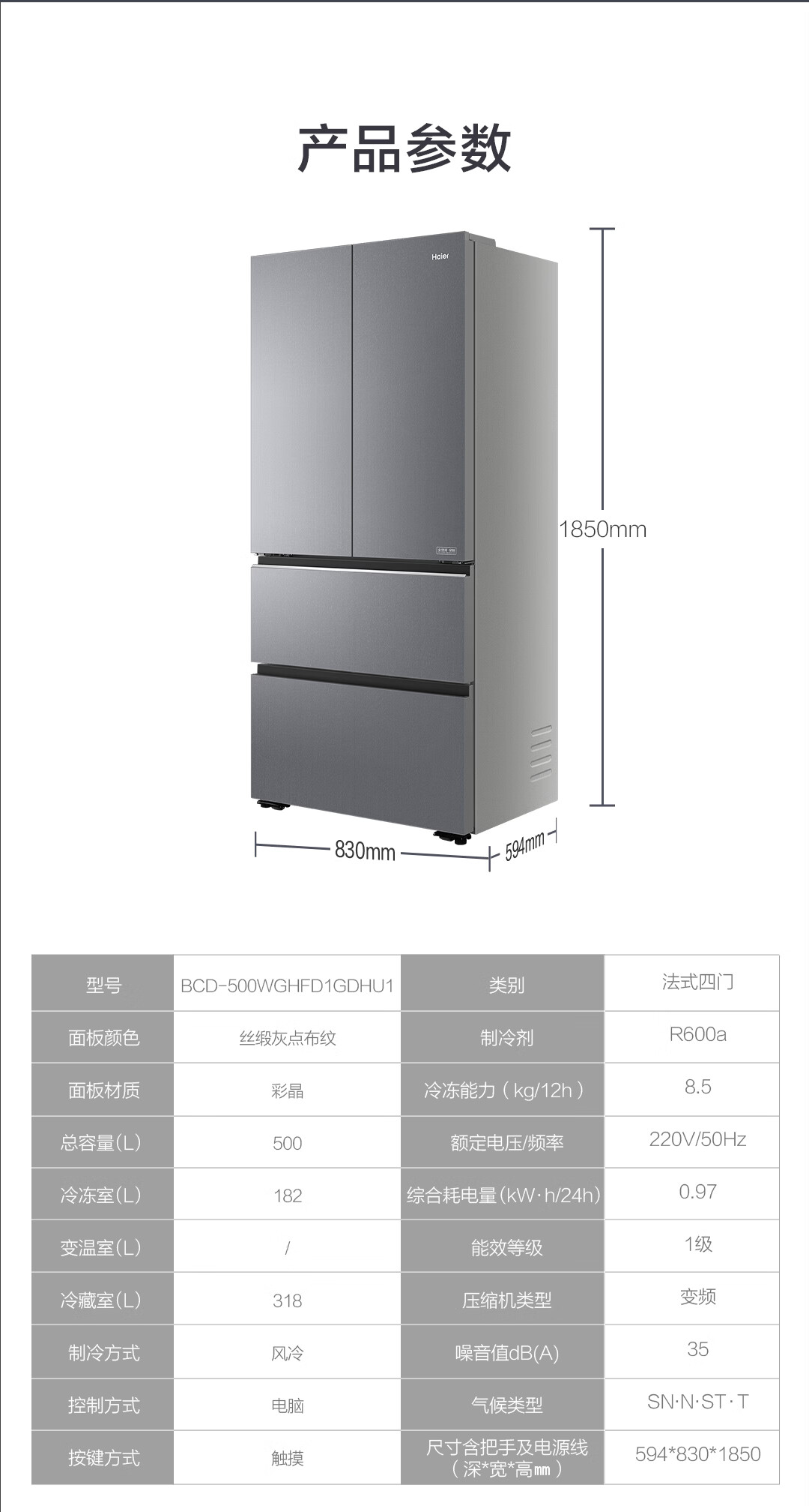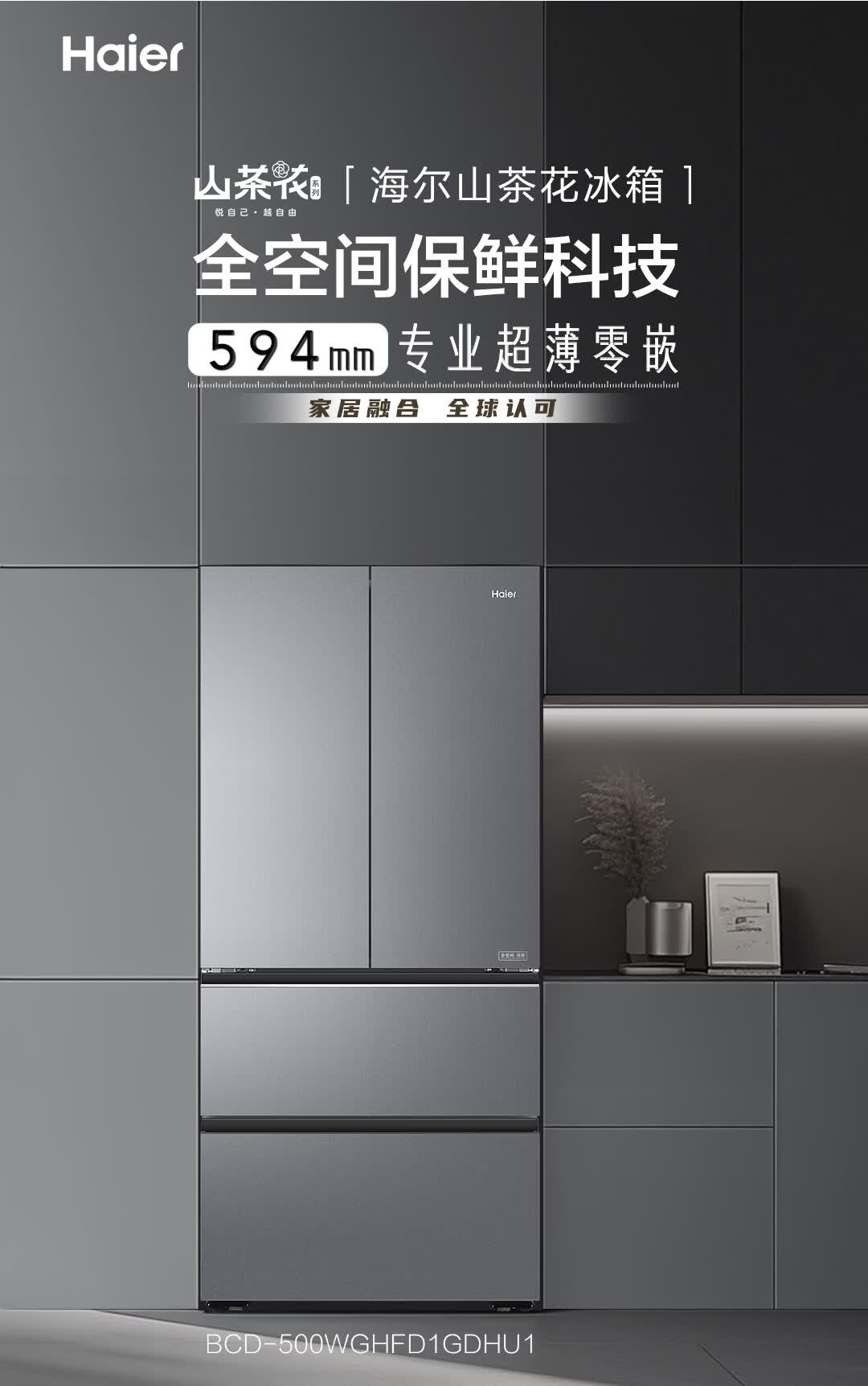 海尔(Haier)【真专供】海尔冰箱500L全自动制冰全空间保鲜594超薄零嵌BCD-500WGHFD1GDHU1