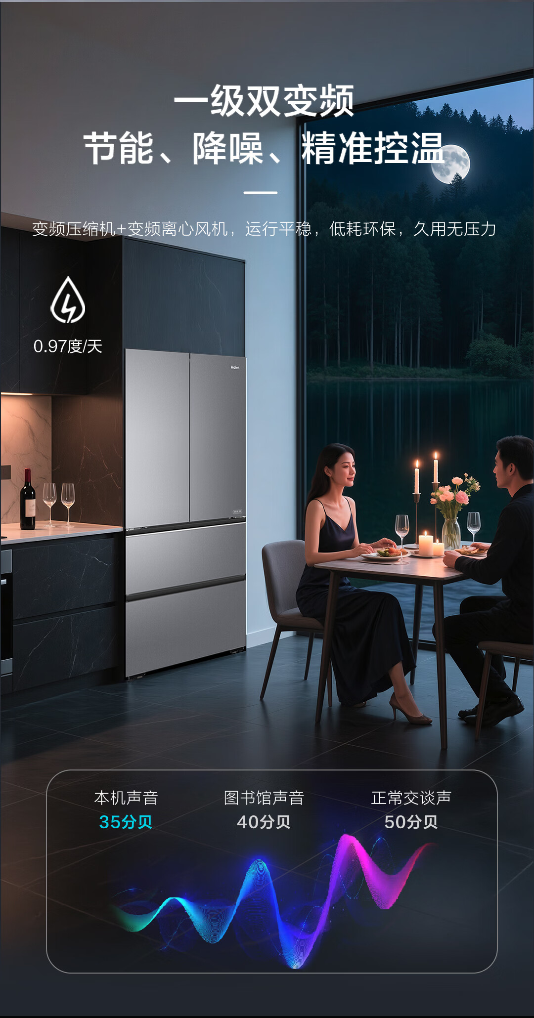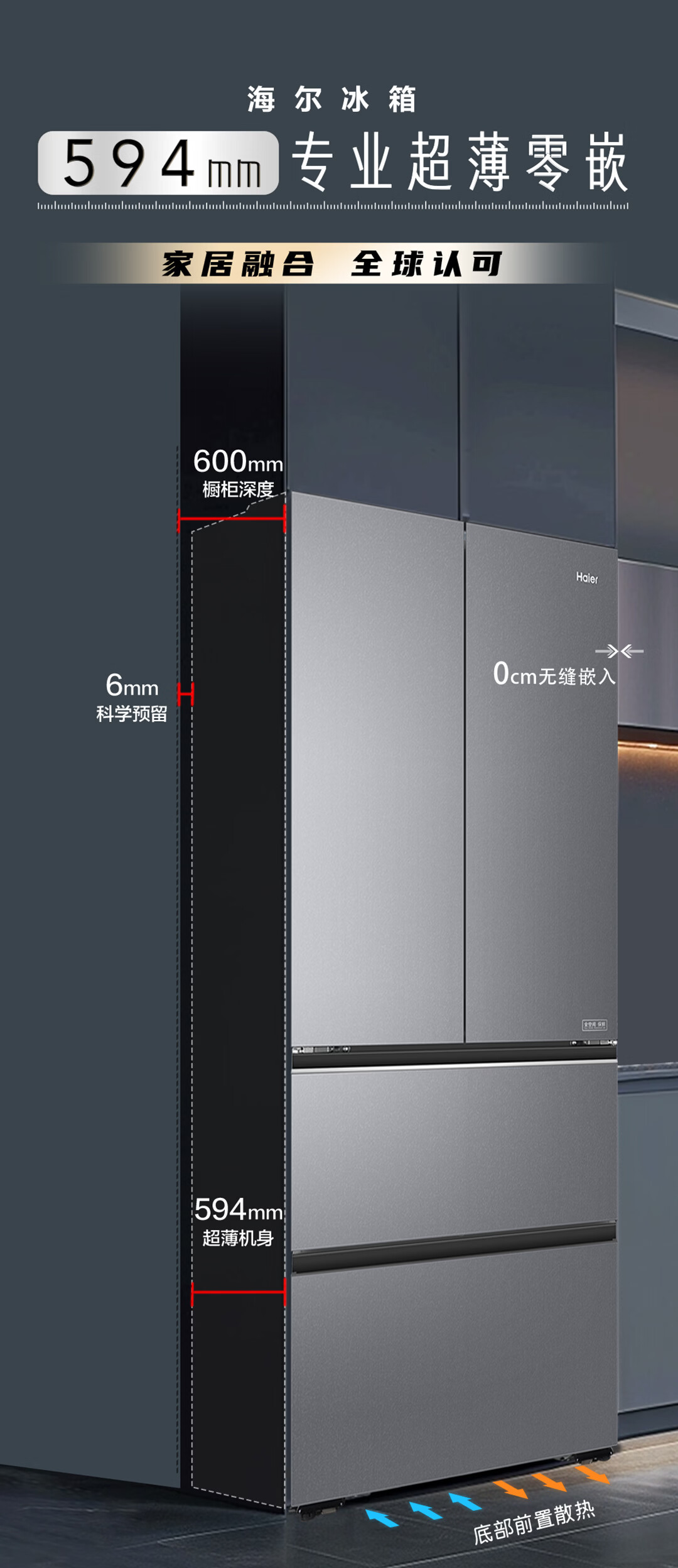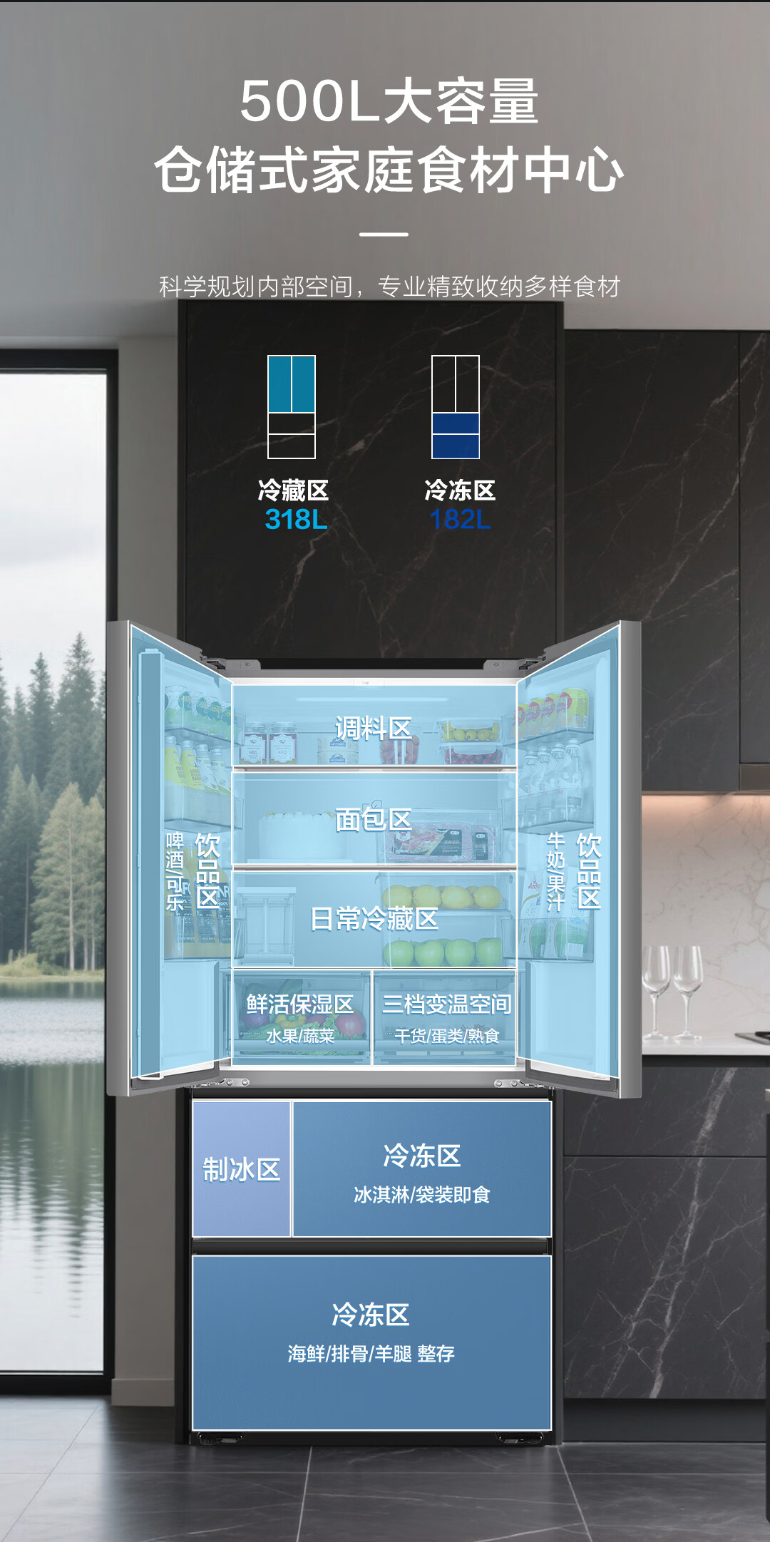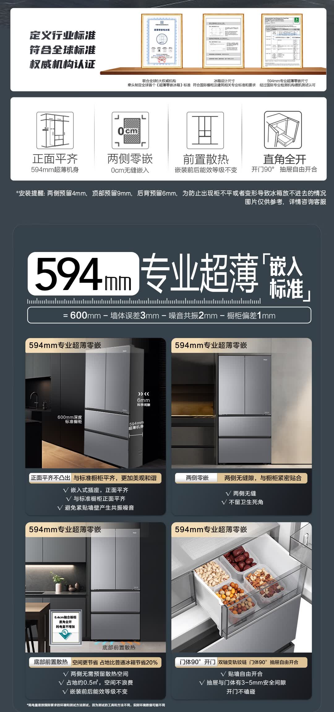 海尔(Haier)【真专供】海尔冰箱500L全自动制冰全空间保鲜594超薄零嵌BCD-500WGHFD1GDHU1