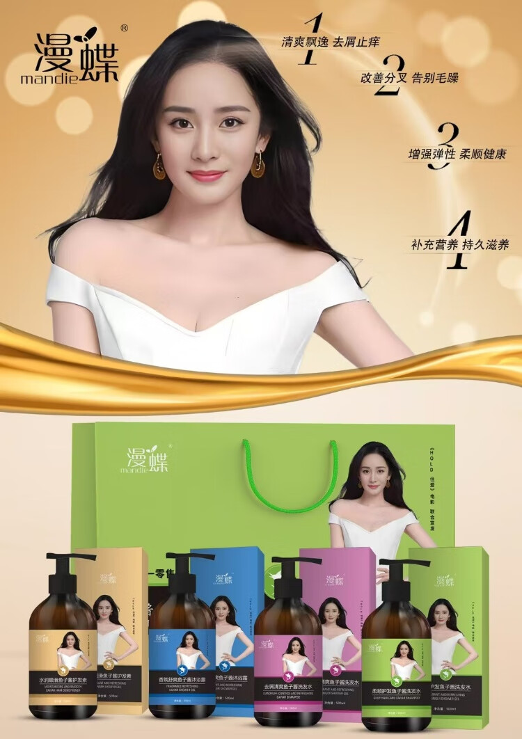 漫碟花香花香鱼子酱去屑柔顺四件套去屑洗发水柔顺洗发水护发素 去屑洗+柔顺洗+护发素+沐浴露 去屑清爽蓬松改善干枯毛燥