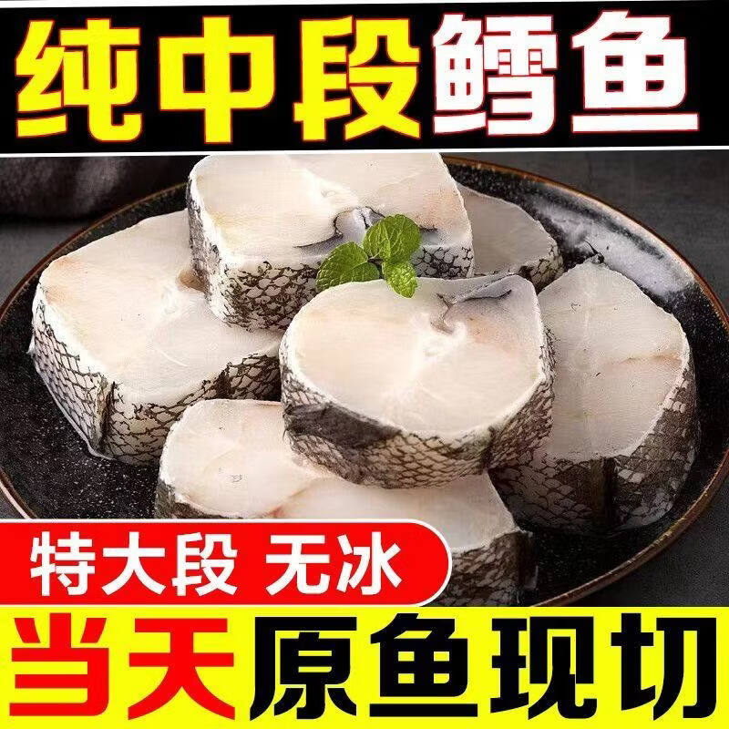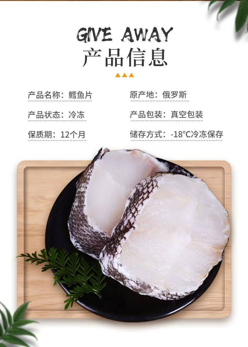 胖东来超市代购同款俄罗斯深海鳕鱼块中段片排原切尾段新鲜冷冻商 无冰整条2斤切片(去头去尾)*2条