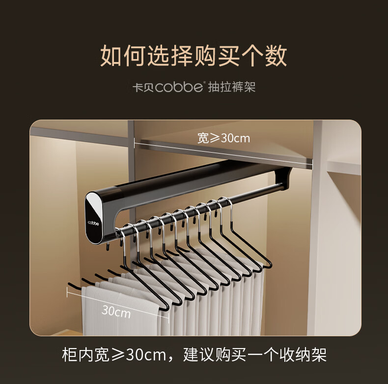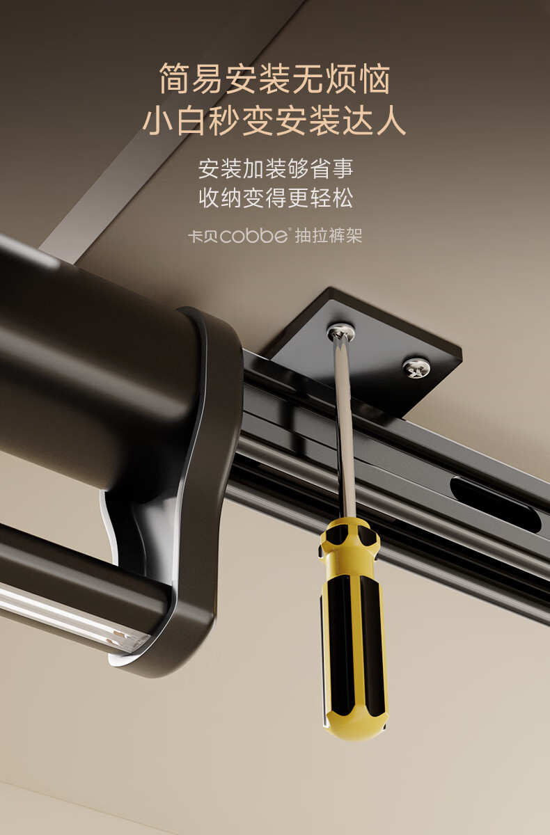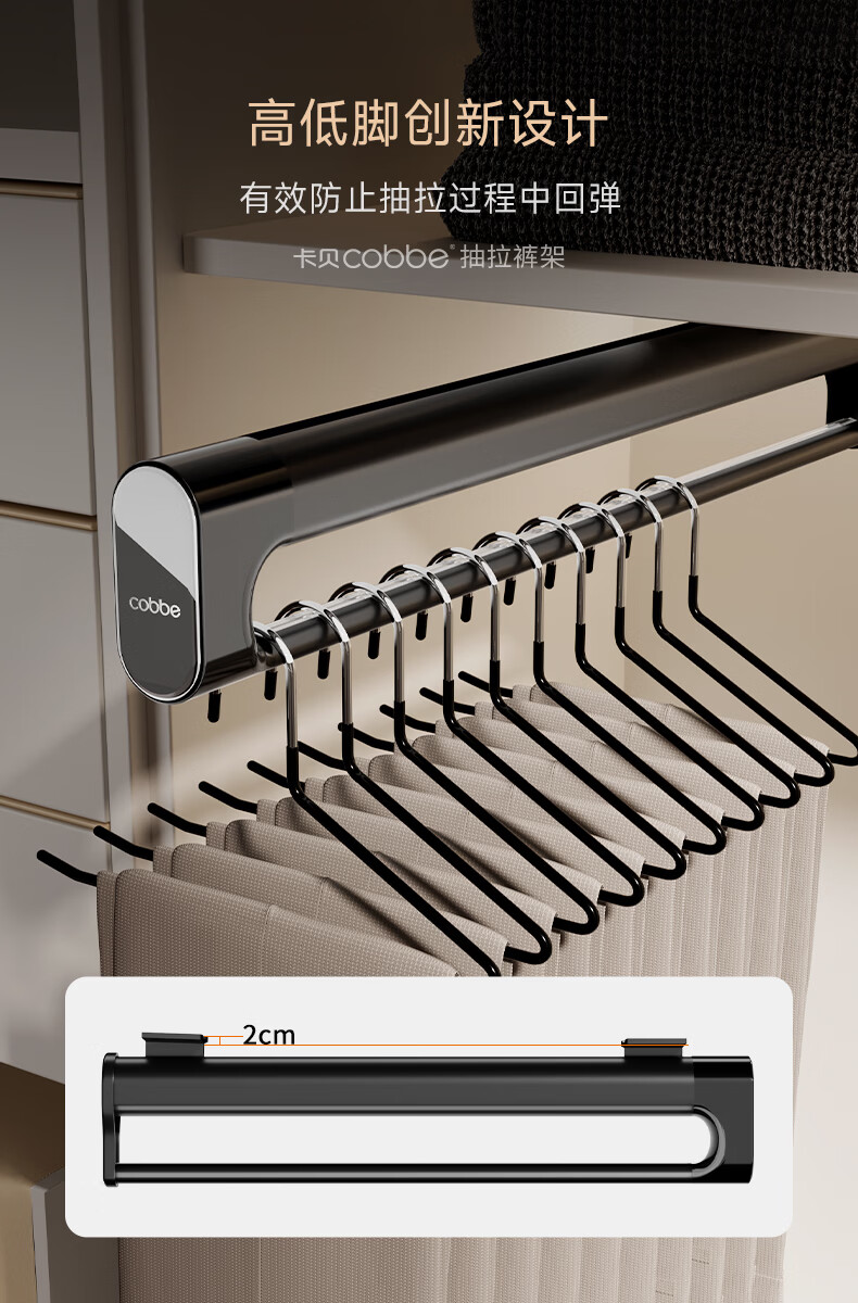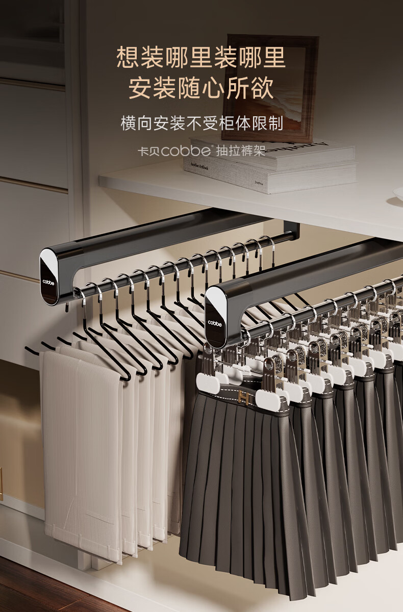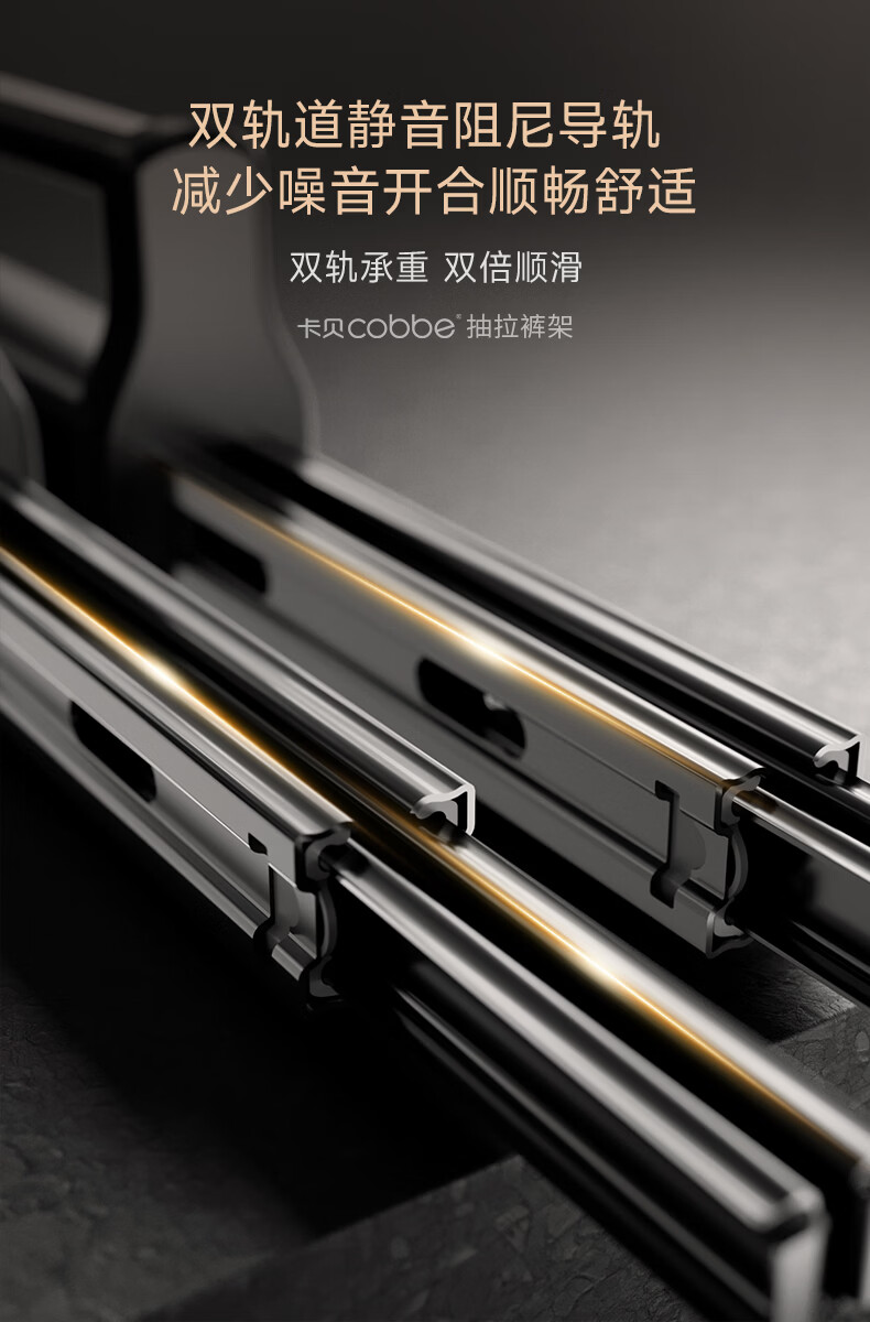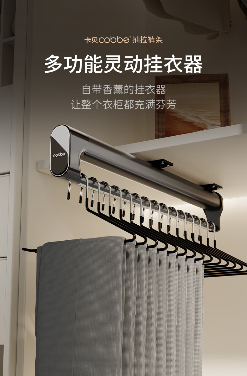 卡贝(cobbe)裤架伸缩滑轨顶装裤抽拉式挂衣杆衣柜内置轨道挂裤子收纳衣架五金 雅白色-香薰款【柜深>35】 升级双阻尼滑轨