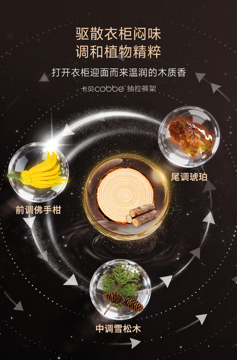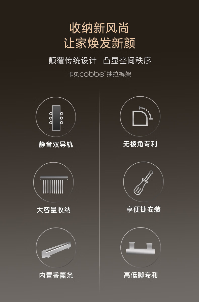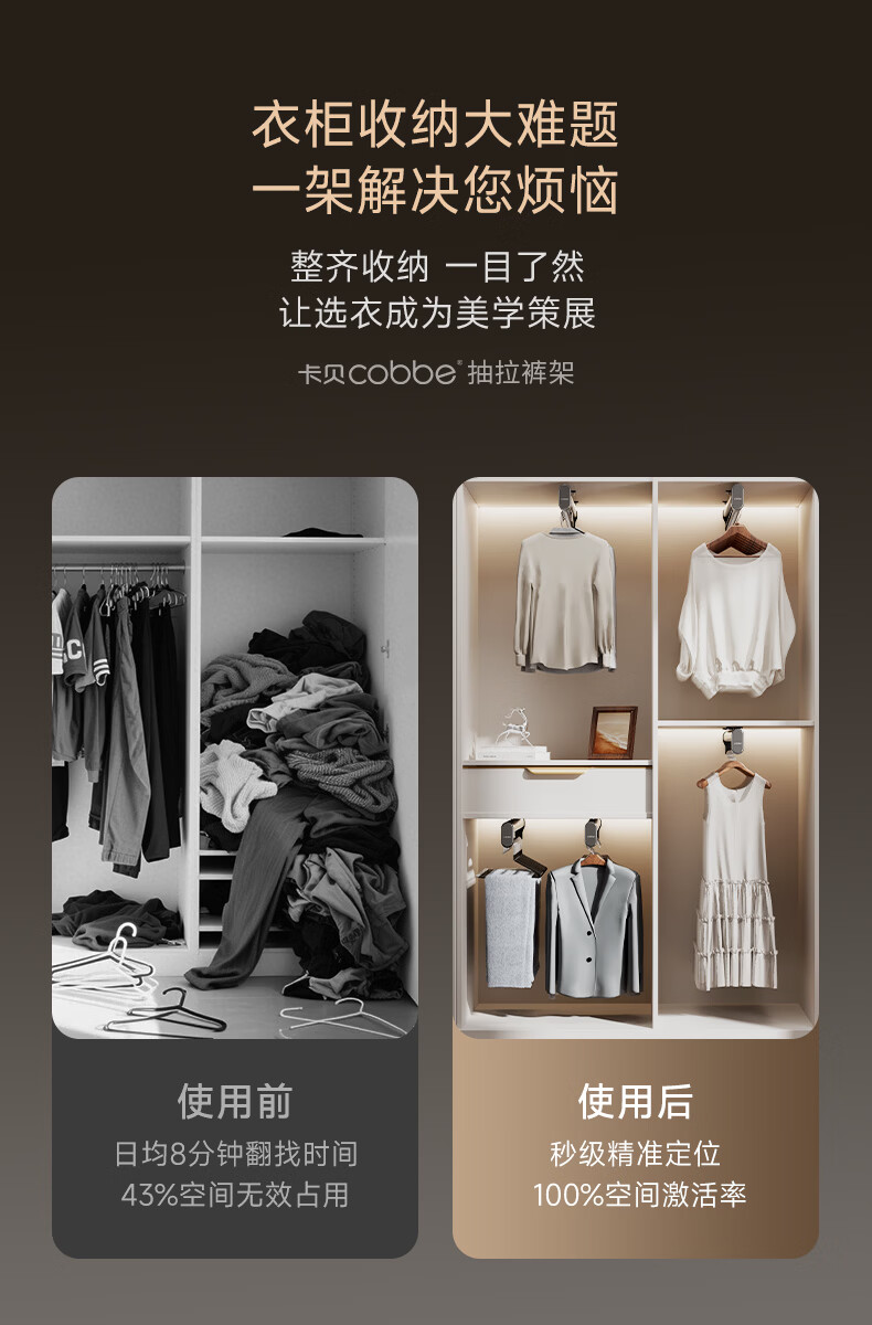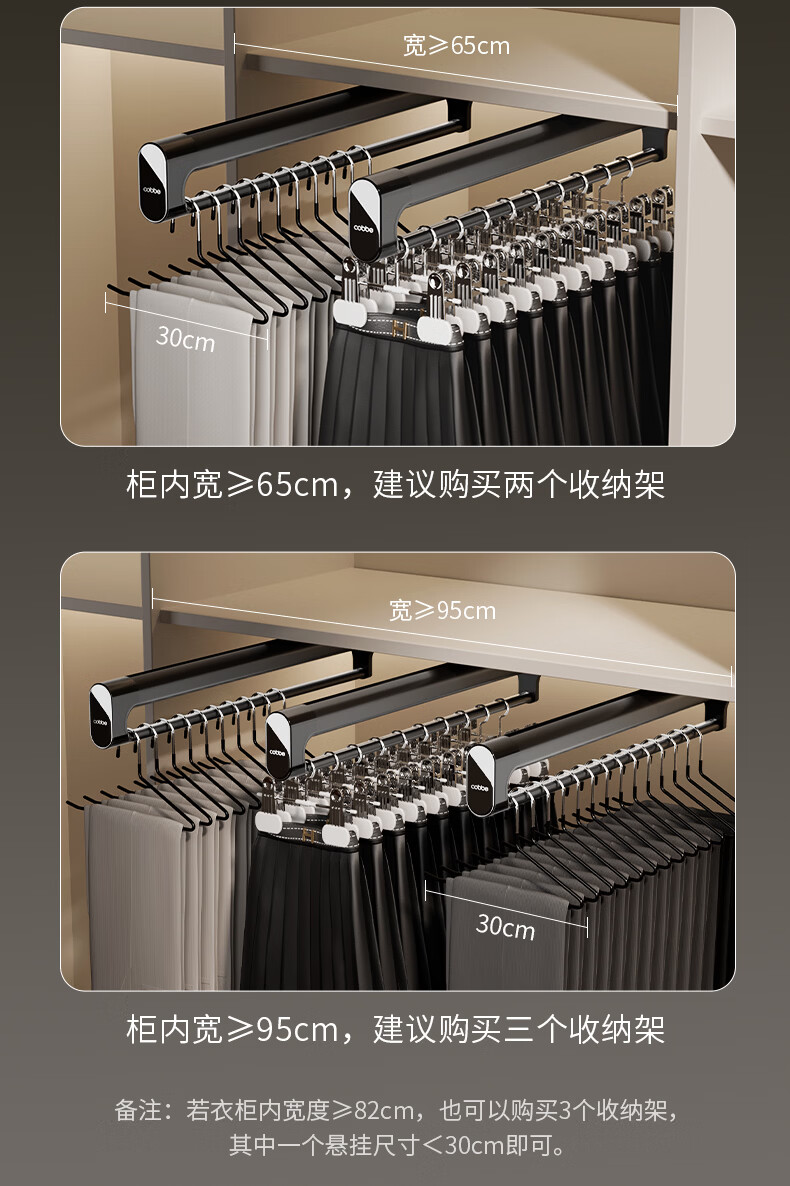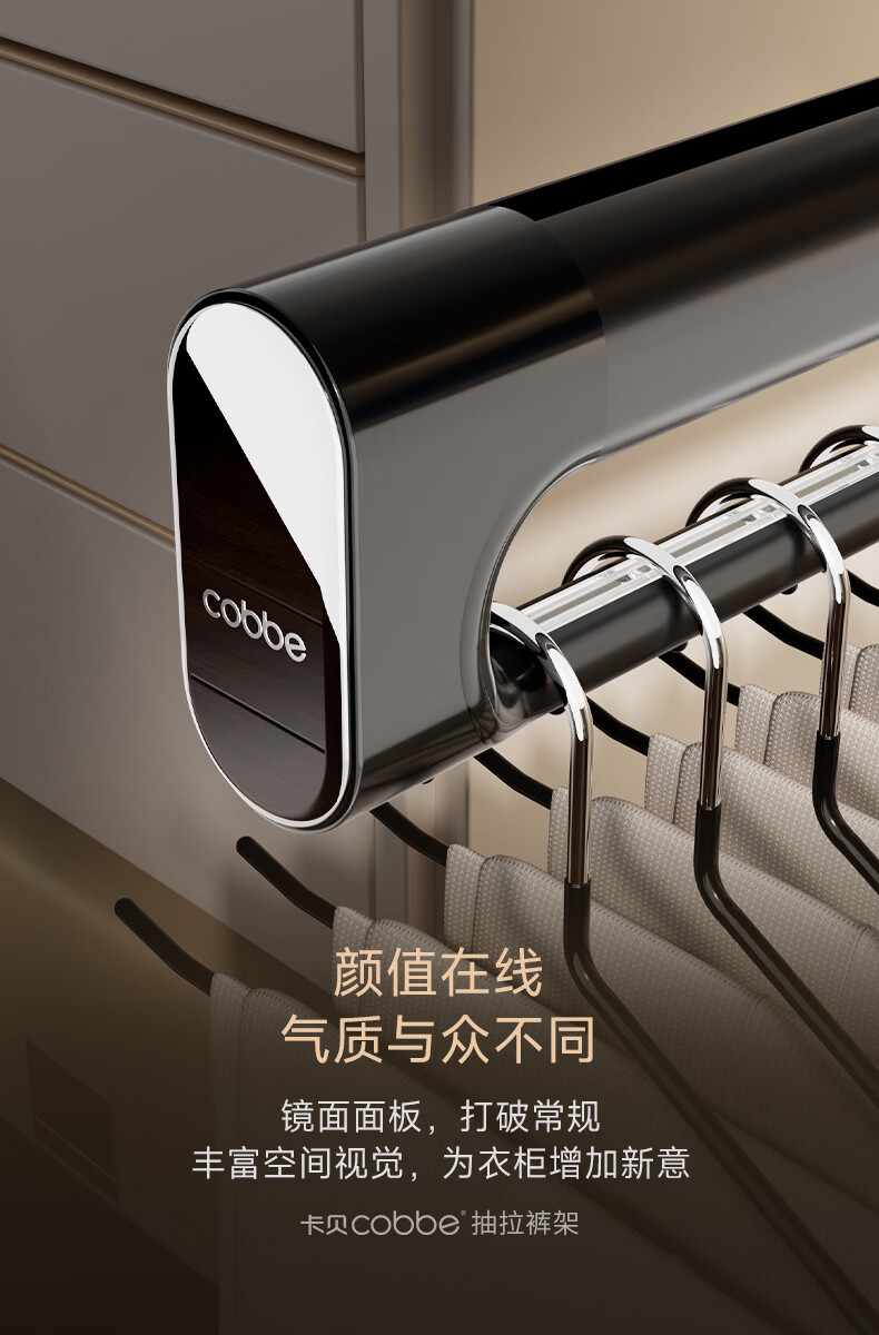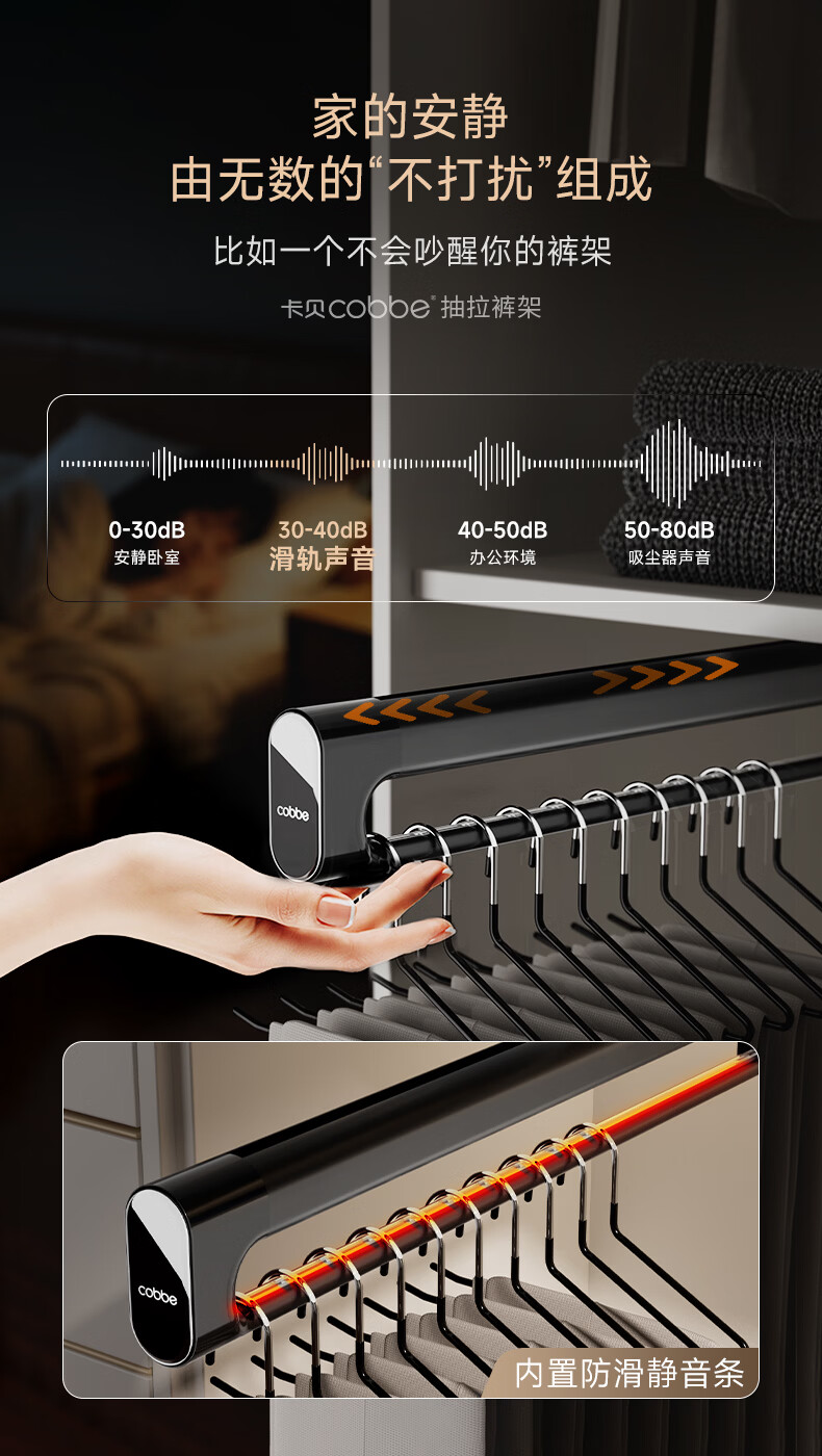卡贝(cobbe)裤架伸缩滑轨顶装裤抽拉式挂衣杆衣柜内置轨道挂裤子收纳衣架五金 雅白色-香薰款【柜深>35】 升级双阻尼滑轨