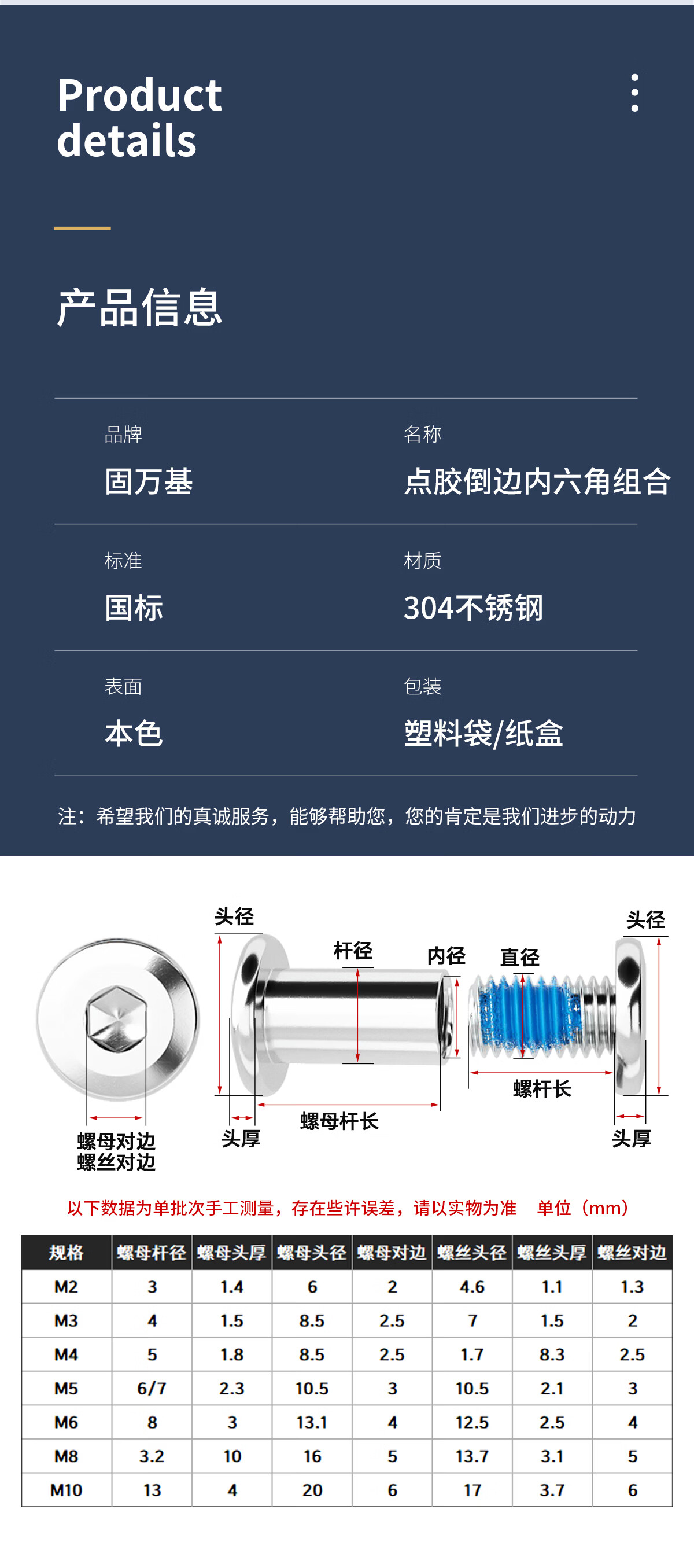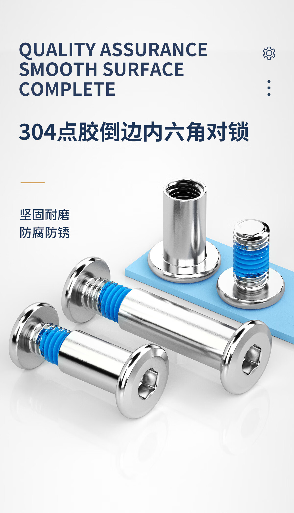 固万基(GUWANJI)304不锈钢防松点胶对锁子母夹板螺丝螺母内六角耐脱M2-M10 M2x4杆径3[40套]