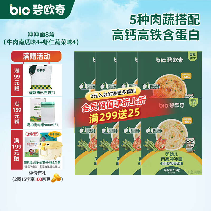 碧欧奇冲冲面婴幼儿面条营养早餐便携宝宝外出即食辅食袋装冲泡面 【8盒】牛肉南瓜番茄味4+南美对虾芦笋味4