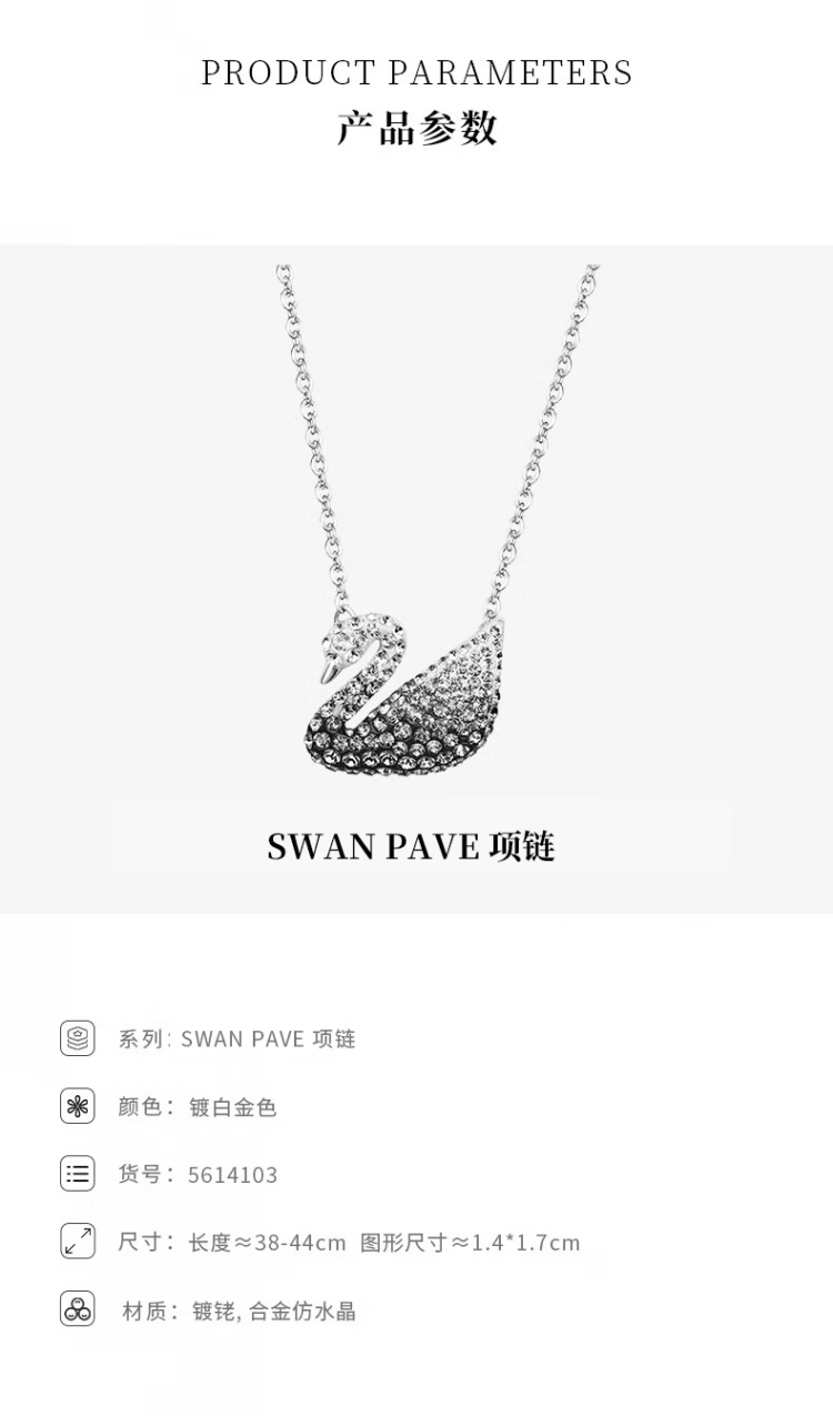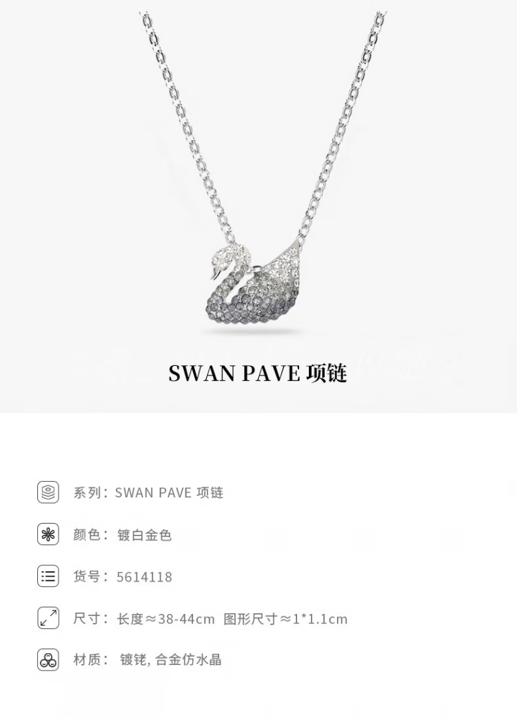 施华洛世奇(SWAROVSKI)新年礼物Swan优雅天鹅项链女吊坠轻奢小众送女友女 黑白渐变色(大)5614103