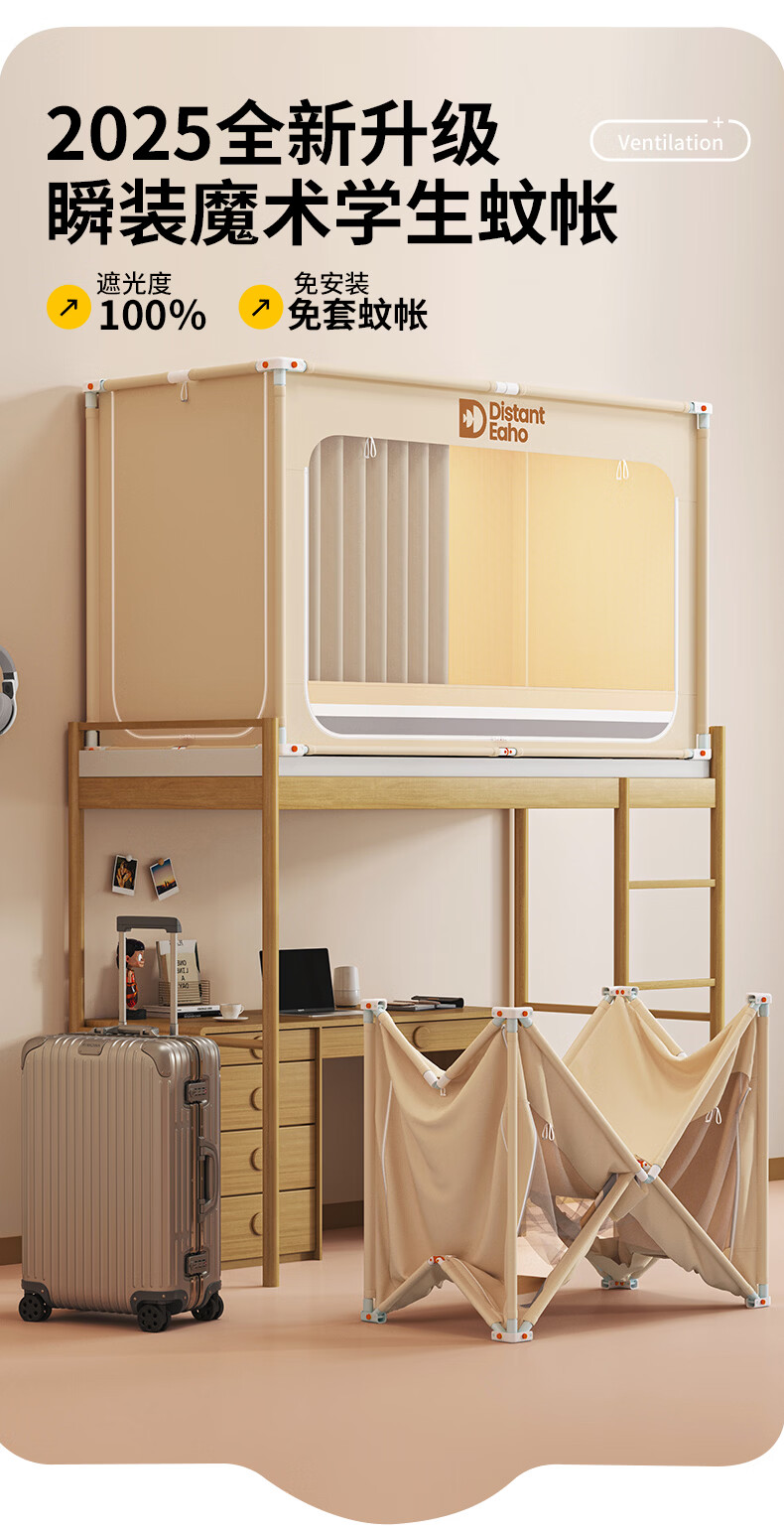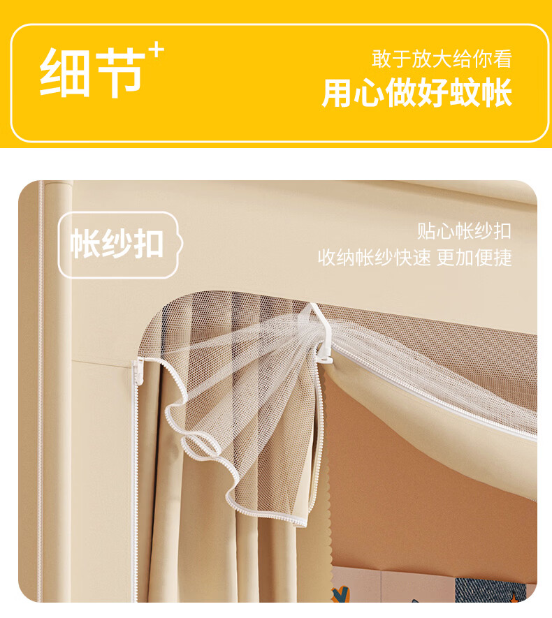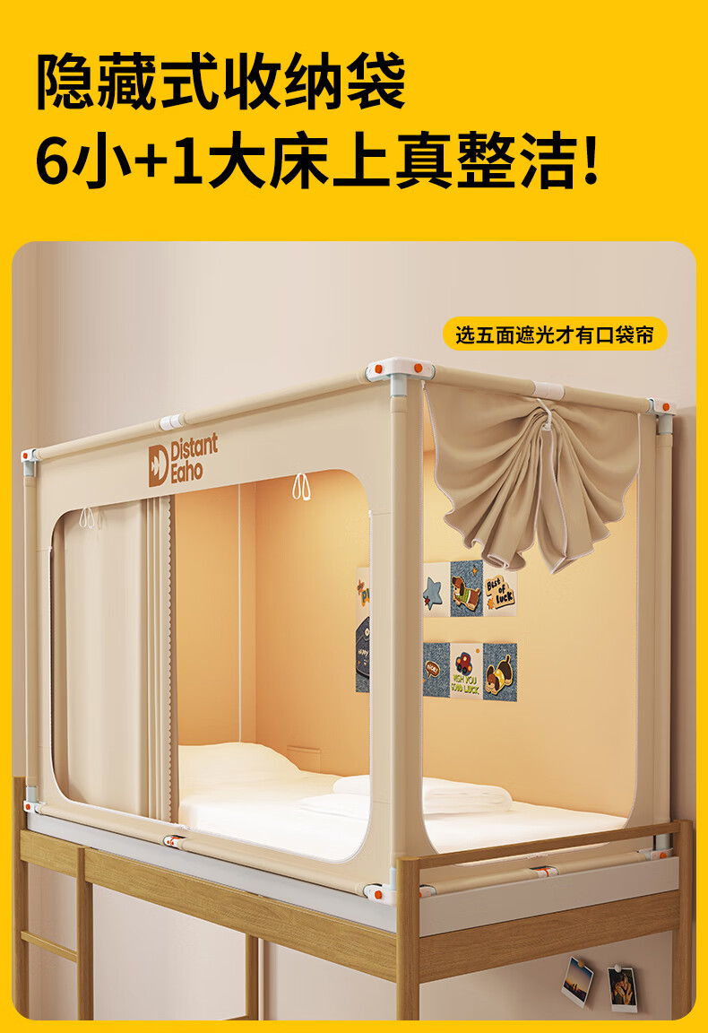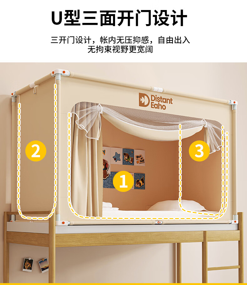猫人(MiiOW)大学生宿舍床帘上铺下铺全封闭一体免安装强遮光寝室全包围窗帘子 米白【四面超强遮光】 90上铺三开门【宽90x长190x高110cm】