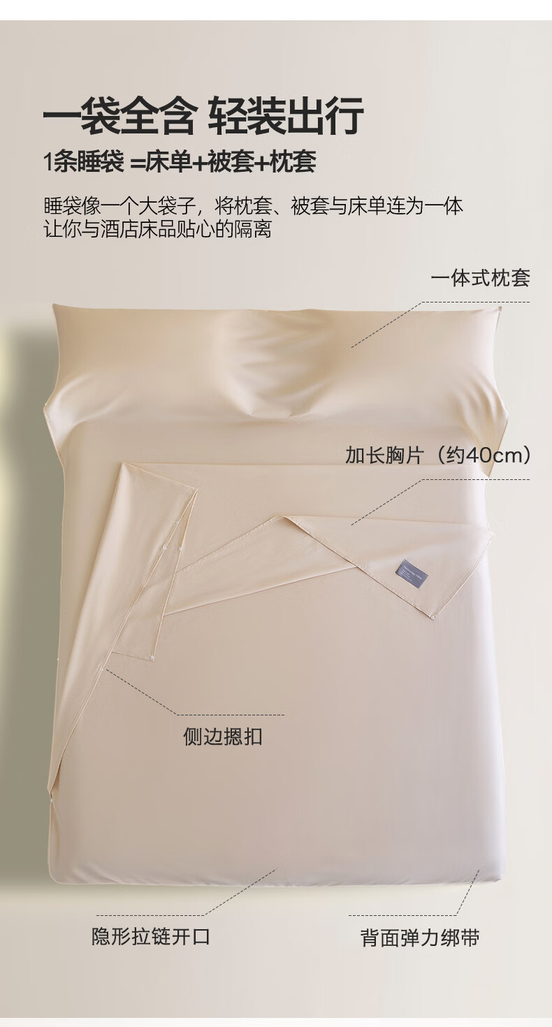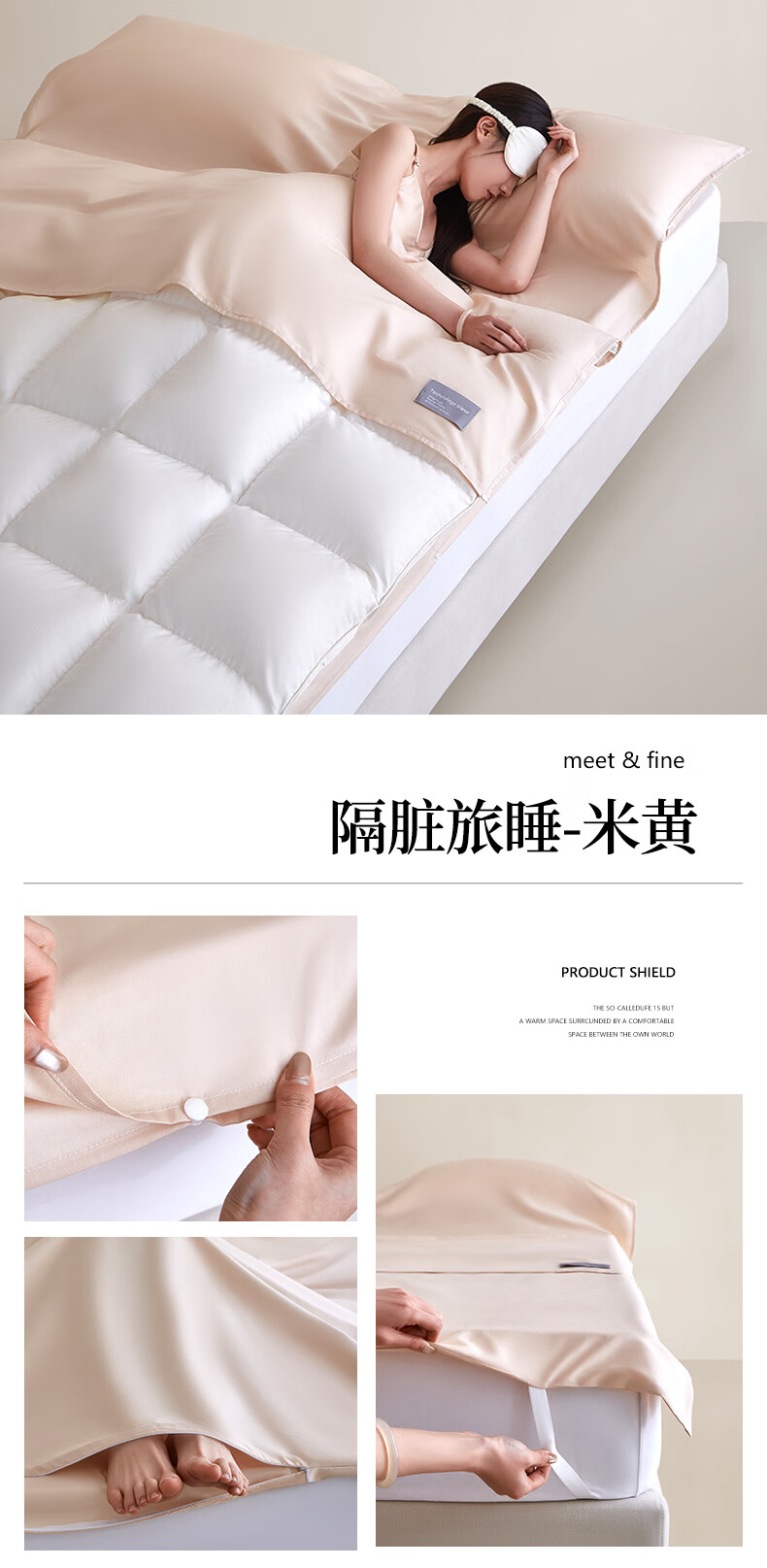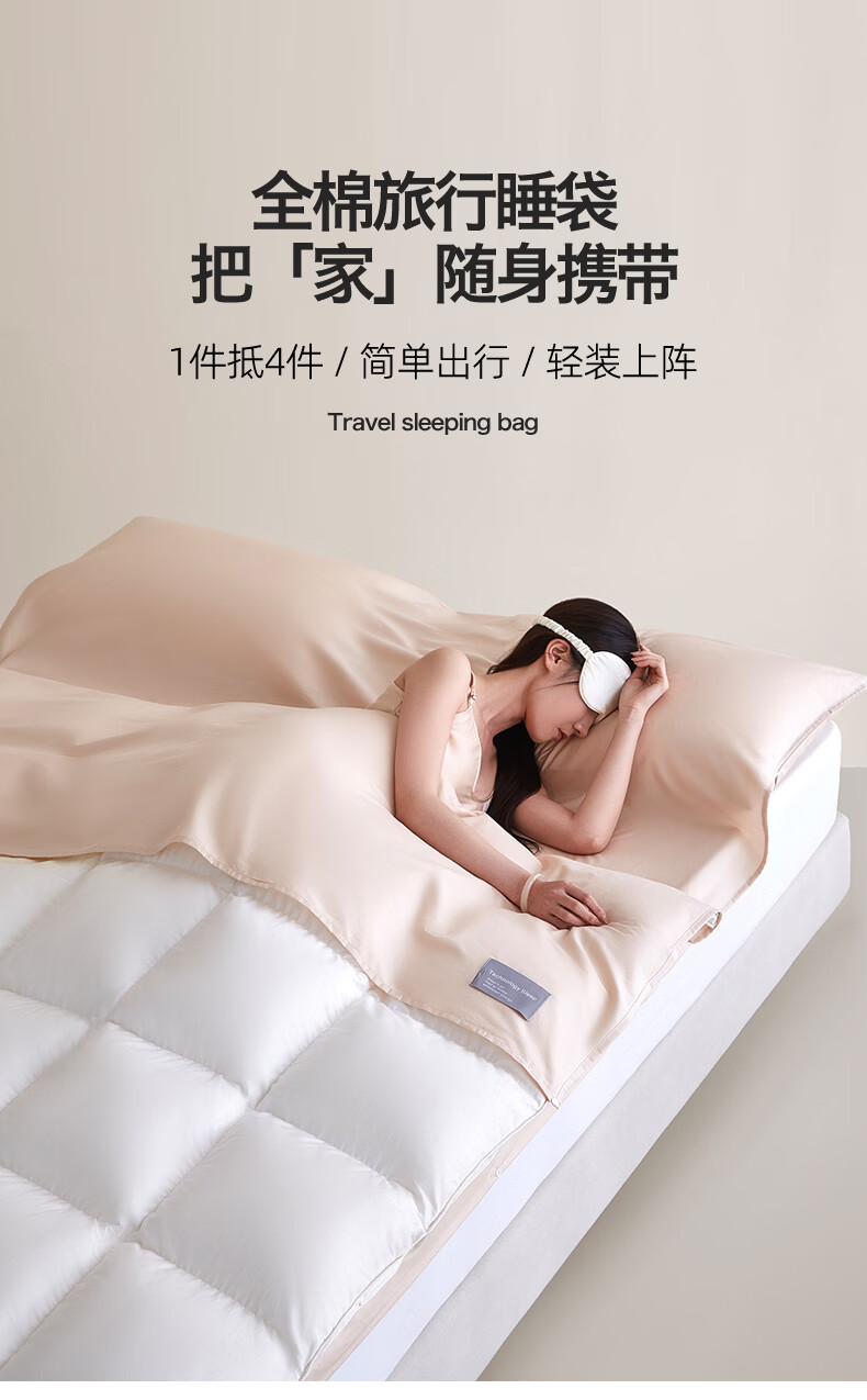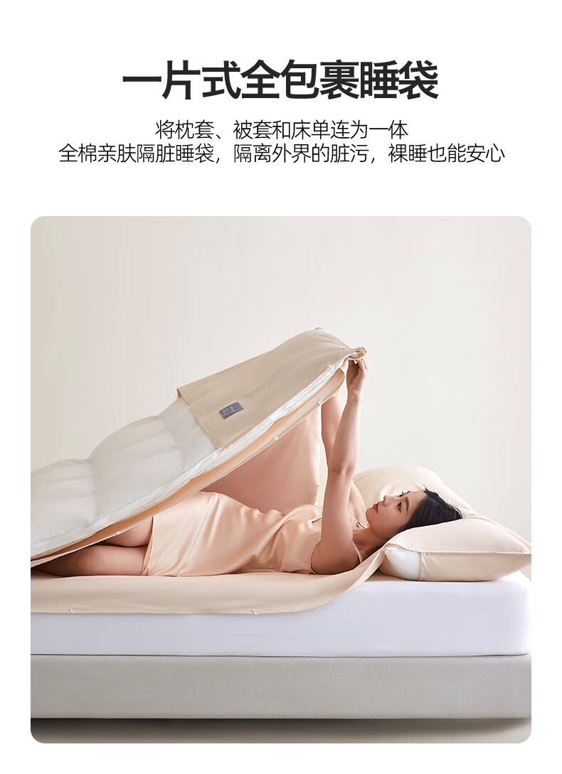无印良品酒店隔脏全棉睡袋纯棉床单被套罩一体式床品出差旅行便携可机水洗 隔脏旅睡-浅茶杏【全棉隔脏旅睡】 130cm*210cm 【赠独立收纳袋】