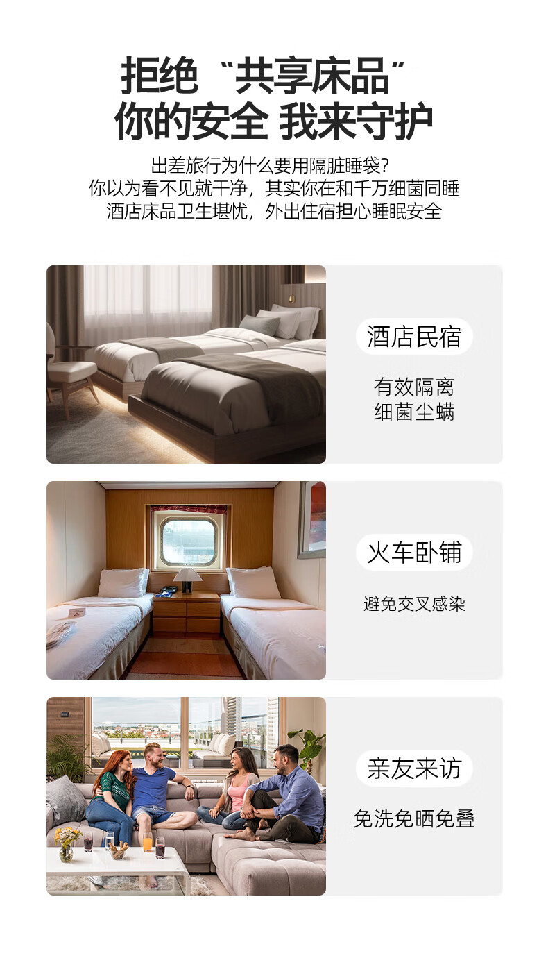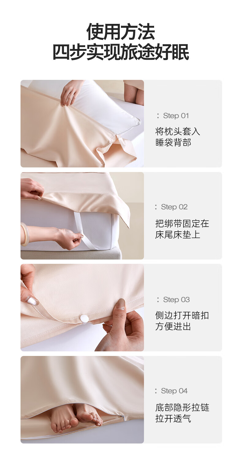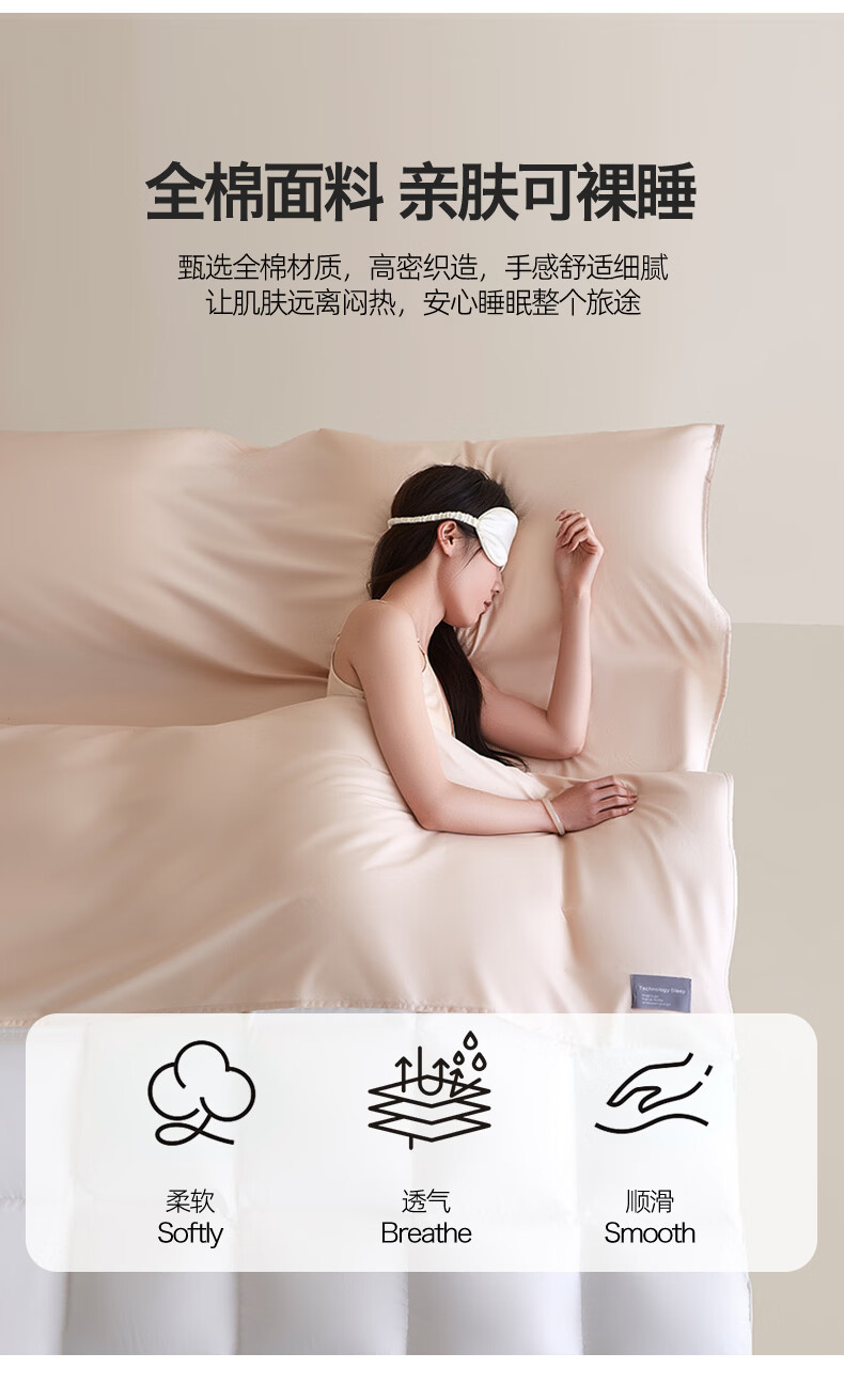 无印良品酒店隔脏全棉睡袋纯棉床单被套罩一体式床品出差旅行便携可机水洗 隔脏旅睡-浅茶杏【全棉隔脏旅睡】 130cm*210cm 【赠独立收纳袋】