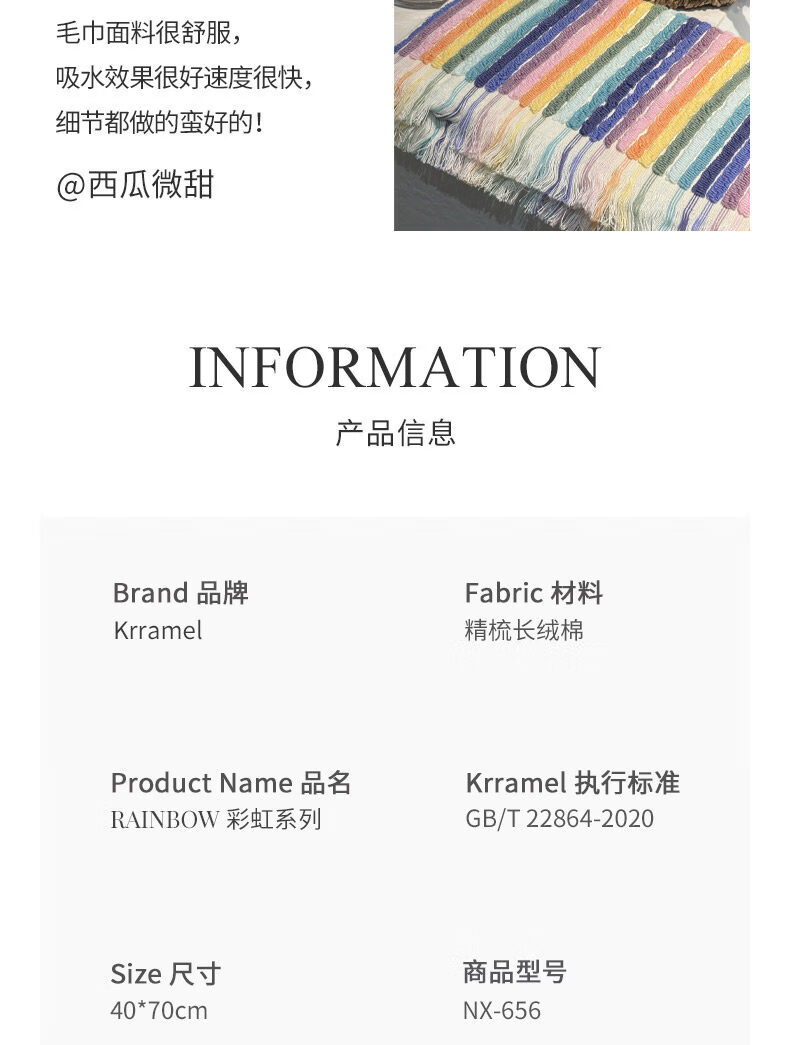 KRRAMEL毛巾2026新款全棉吸水不掉毛洗脸洗澡纯棉毛巾家用柔软 RAIN BOW彩虹系列毛巾-彩虹