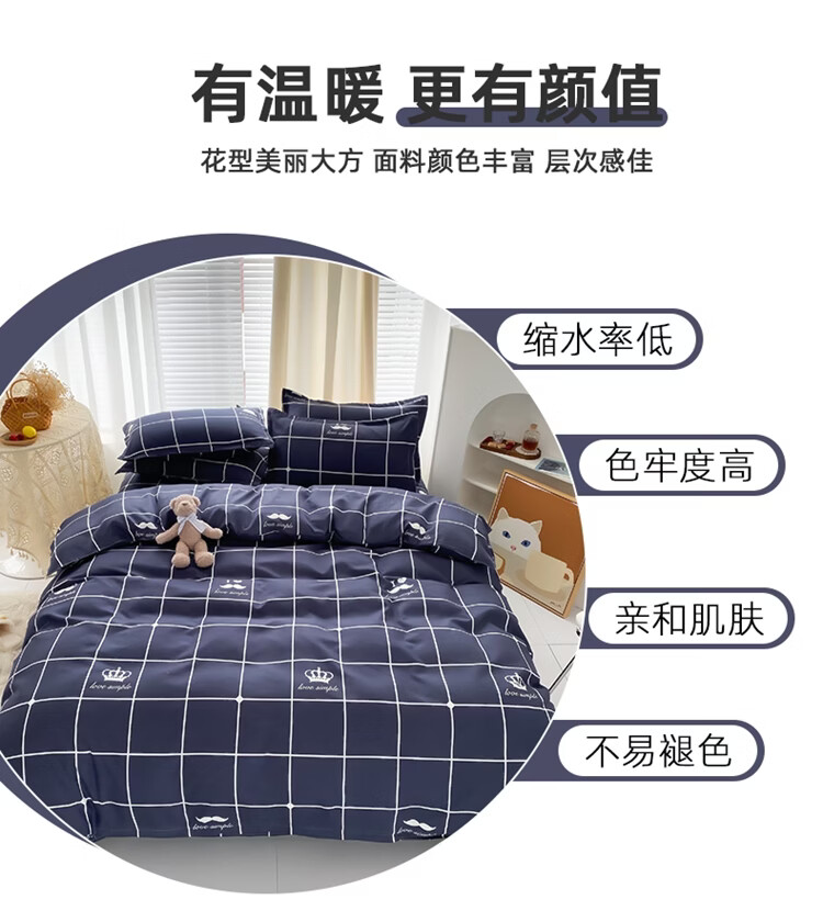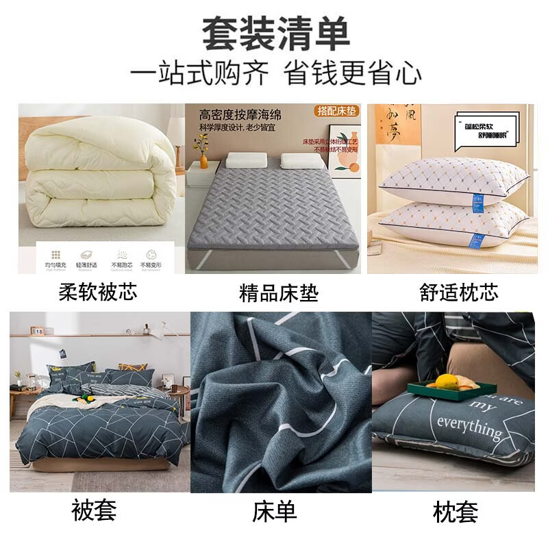 南极人(Nanjiren)床上四件套加被芯和枕芯被褥全套八件套宿舍被子褥子枕头三件套 M皇佳风韵 【一站式购齐 拎包即住】 宿舍 床单款 三件套+1.5m/5斤被+枕芯1